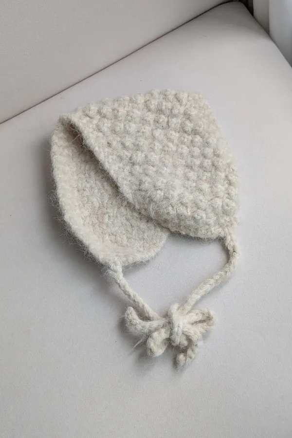 DNKY108 10%羊毛貼布爆米花遮耳毛帽 現貨駝