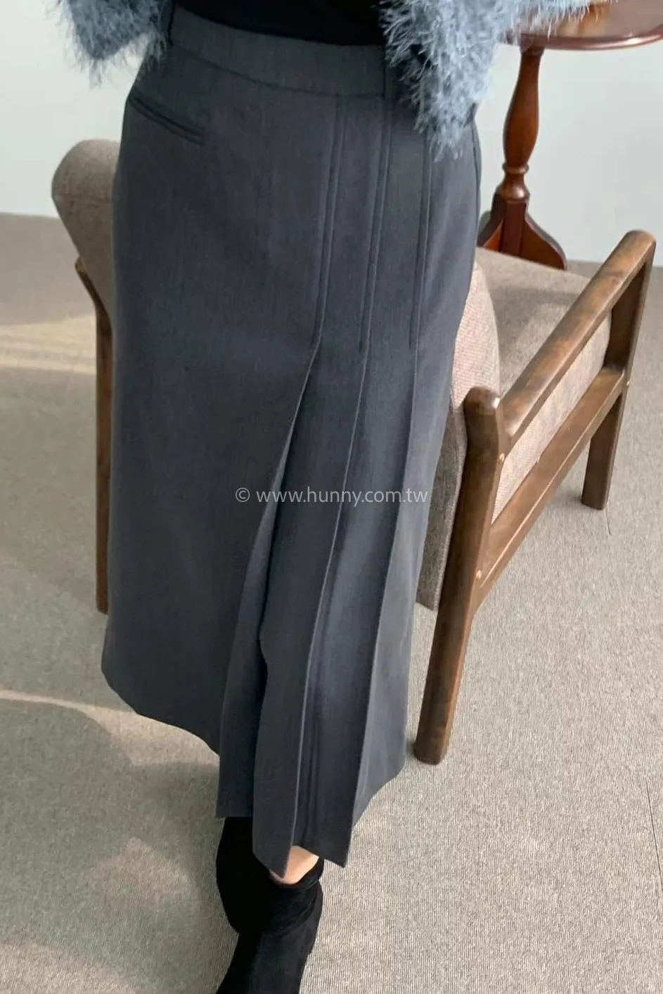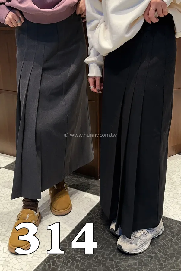 DKNY314 女人味側百褶厚磨毛長裙 現貨灰M