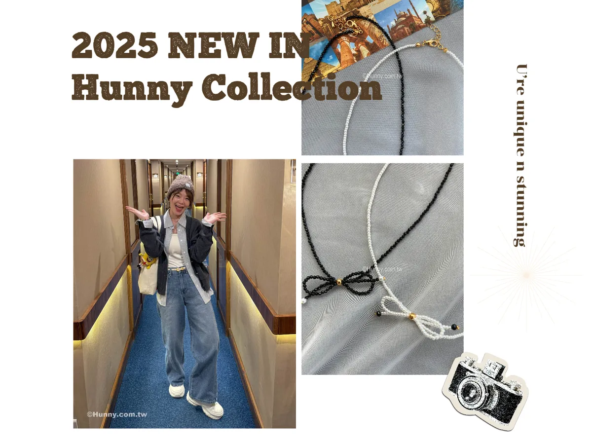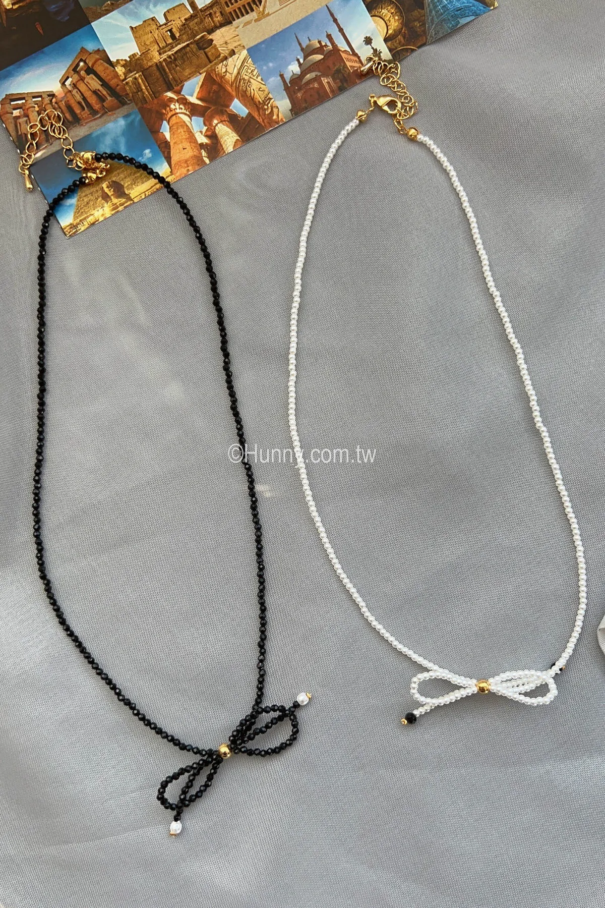 A021402 蝴蝶結小珠珠項鍊 黑/白 現(T)