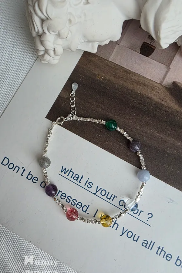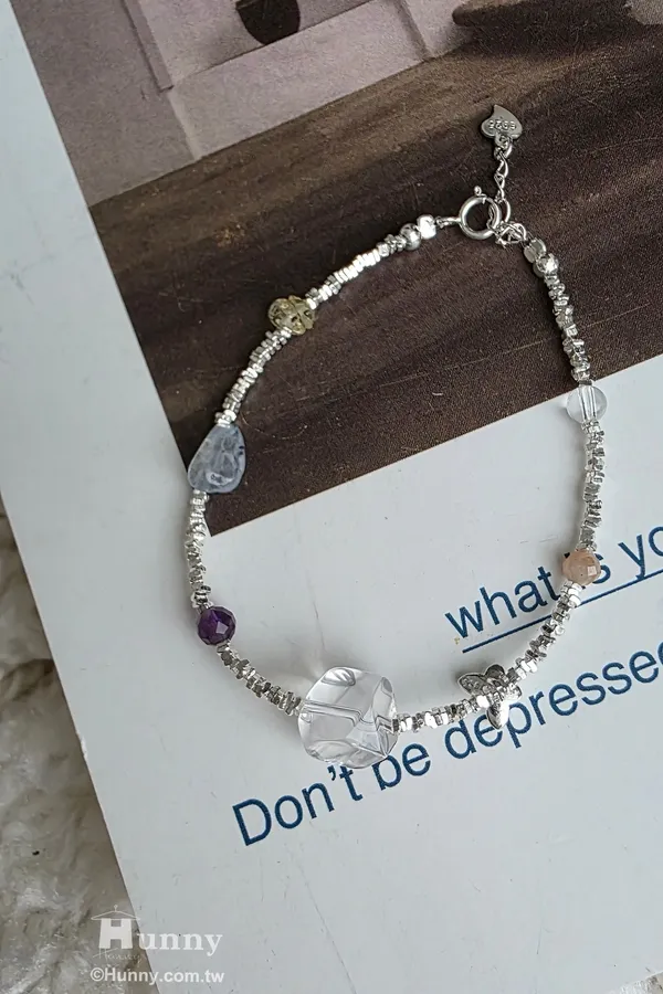 A101566 925純銀 五行水晶原石手鍊/小櫻桃