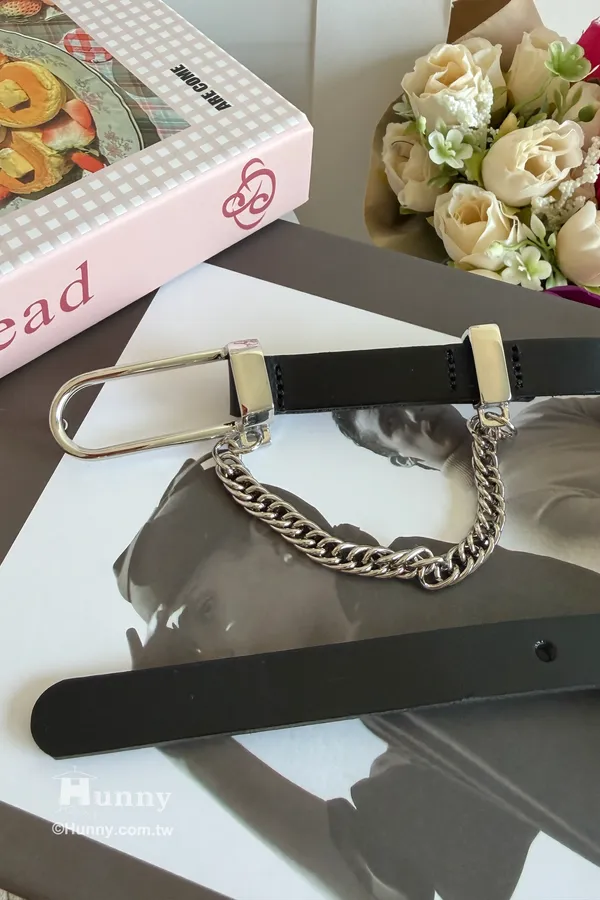 這款皮帶超特別 扣環是銀色橢圓狀的