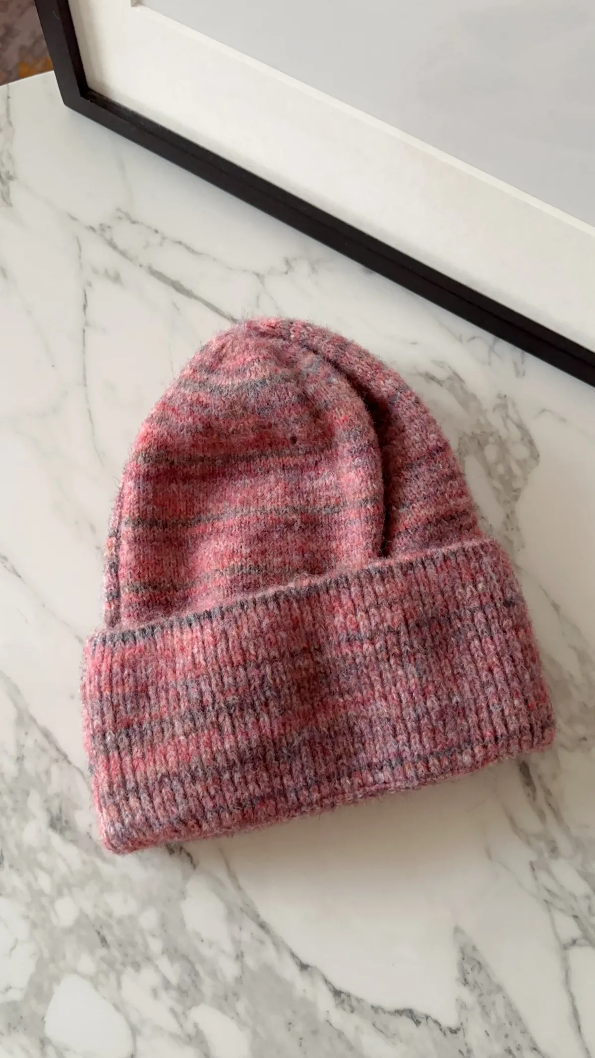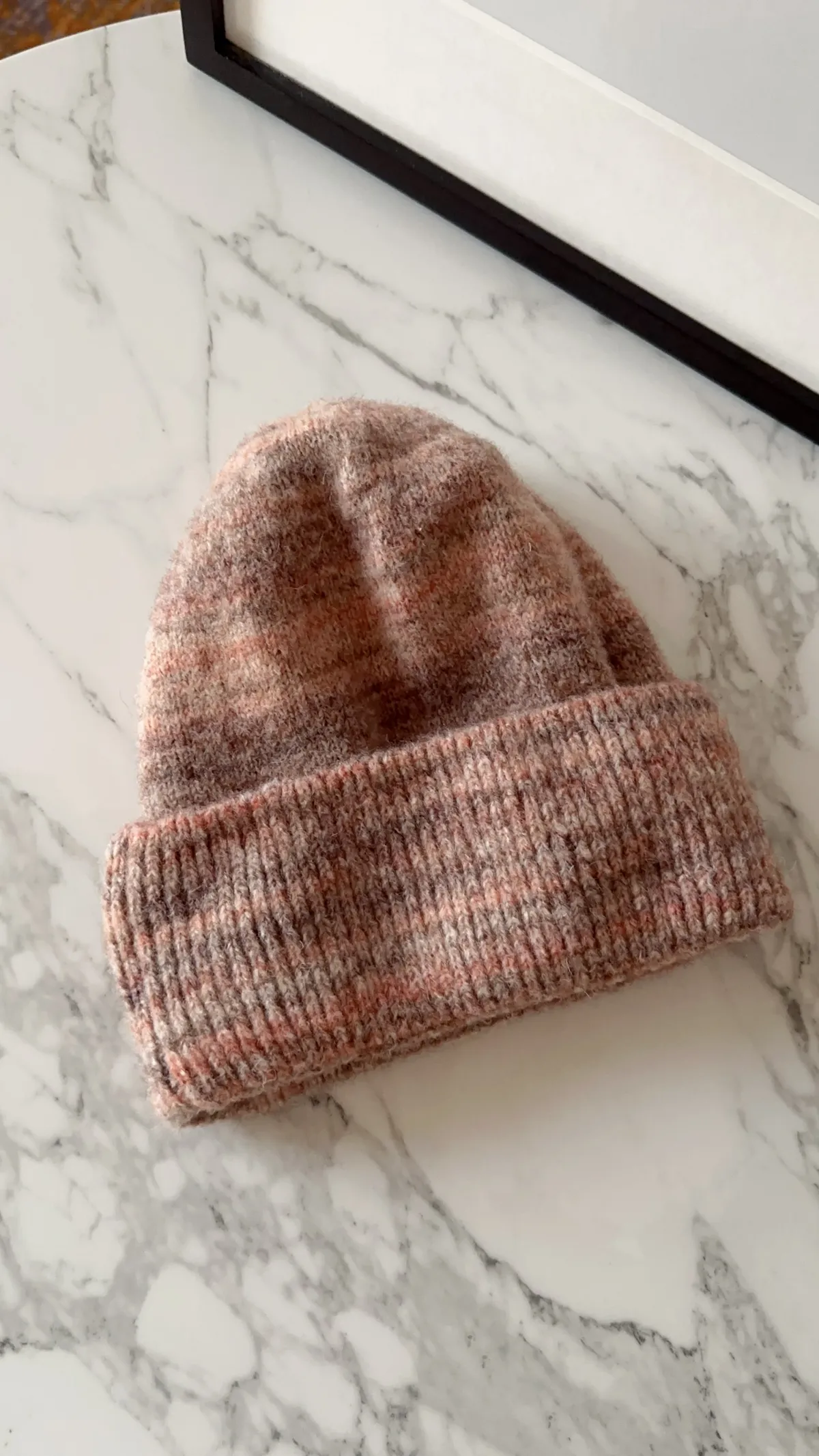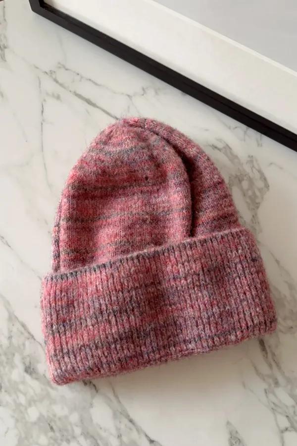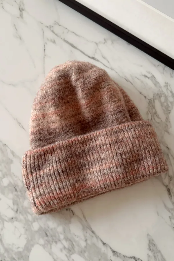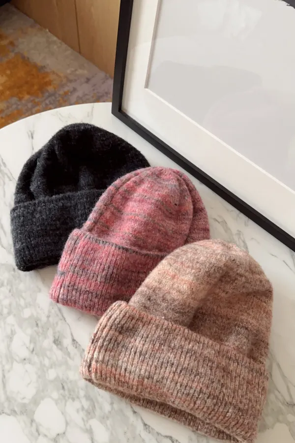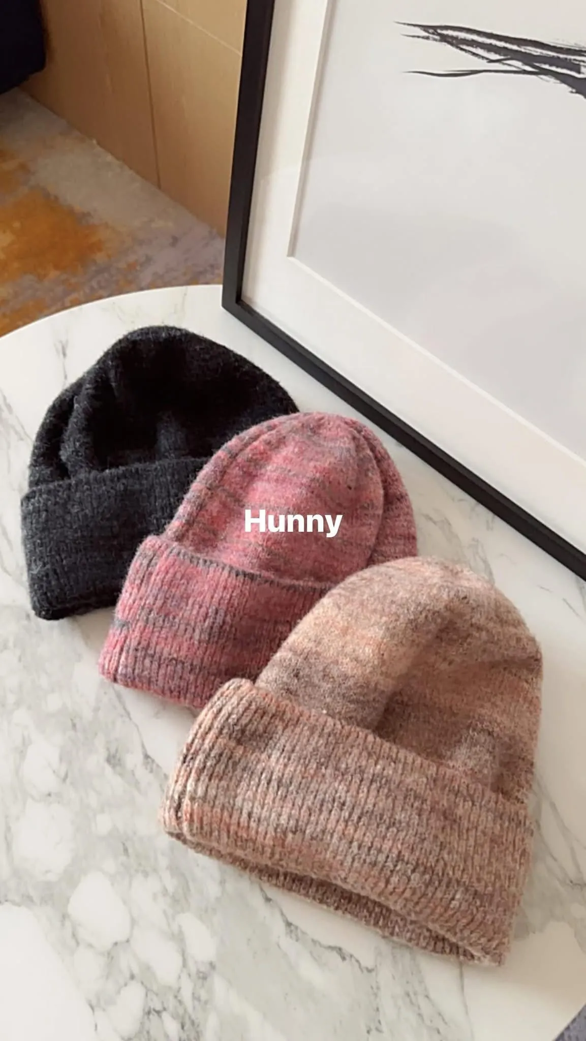 A102995 有點甜混色彩織垂毛帽 黑/粉/橘