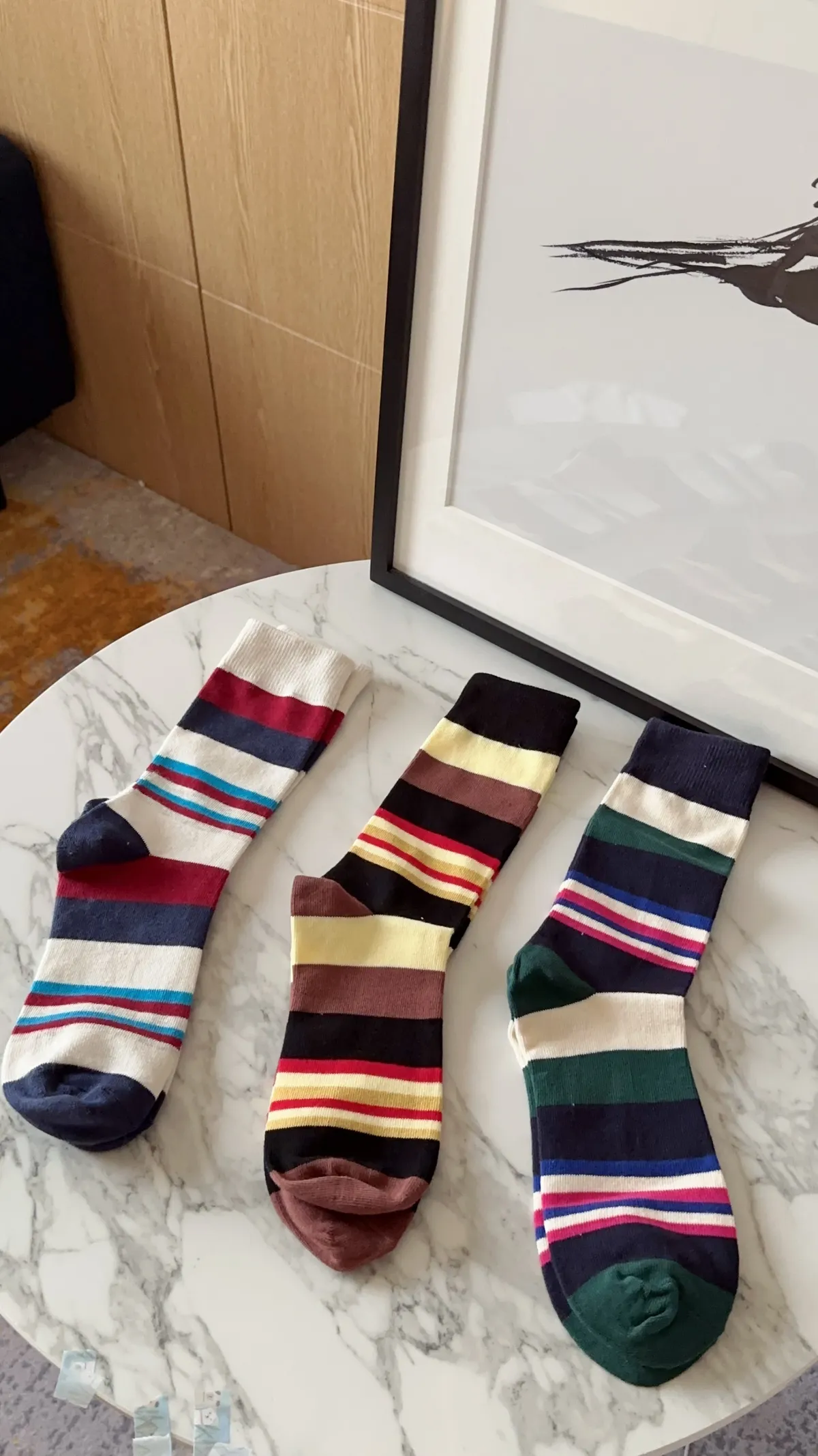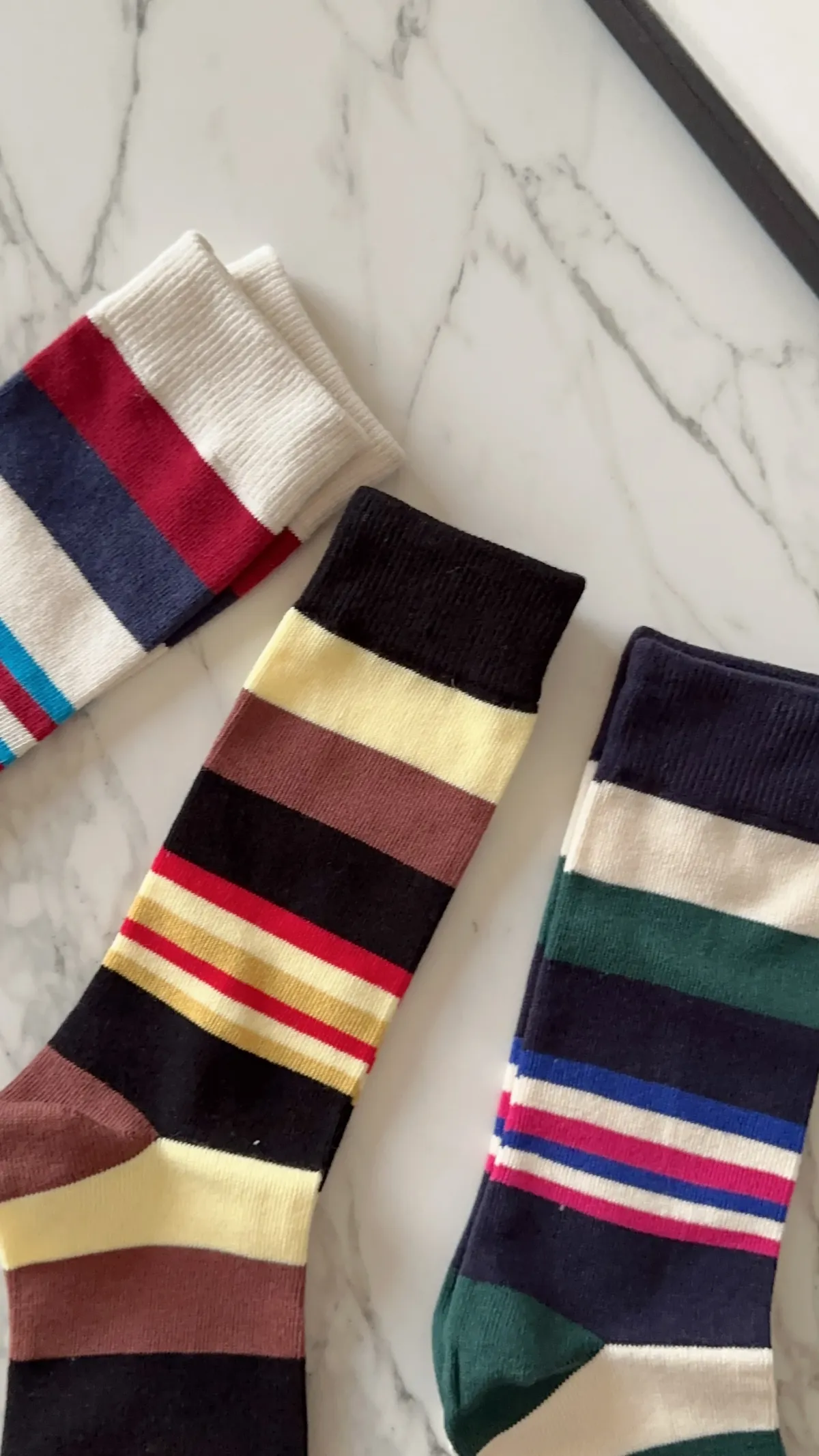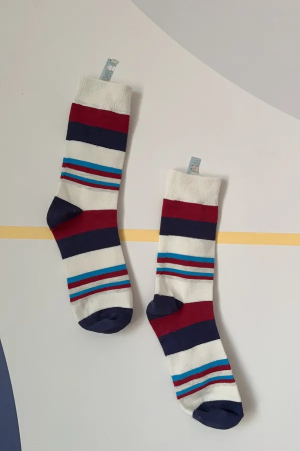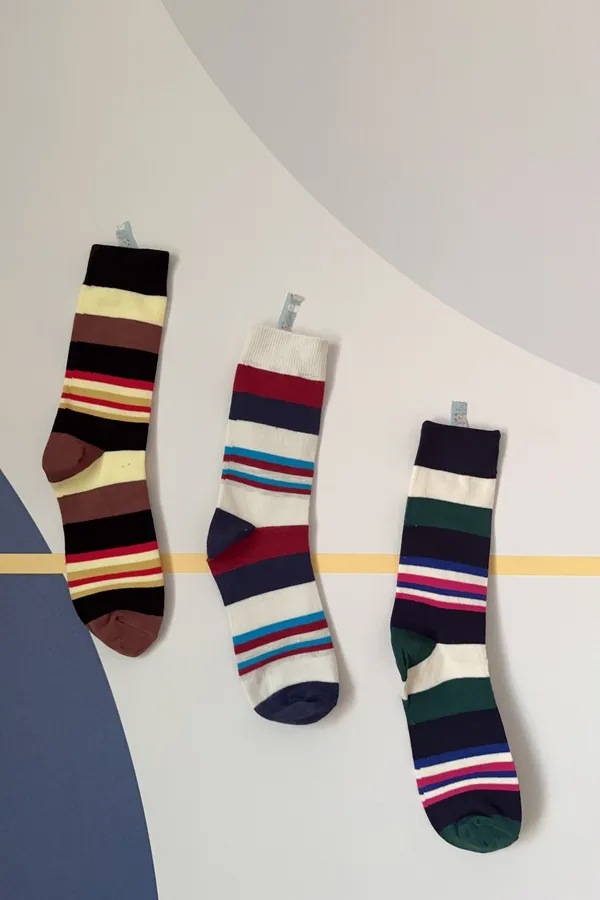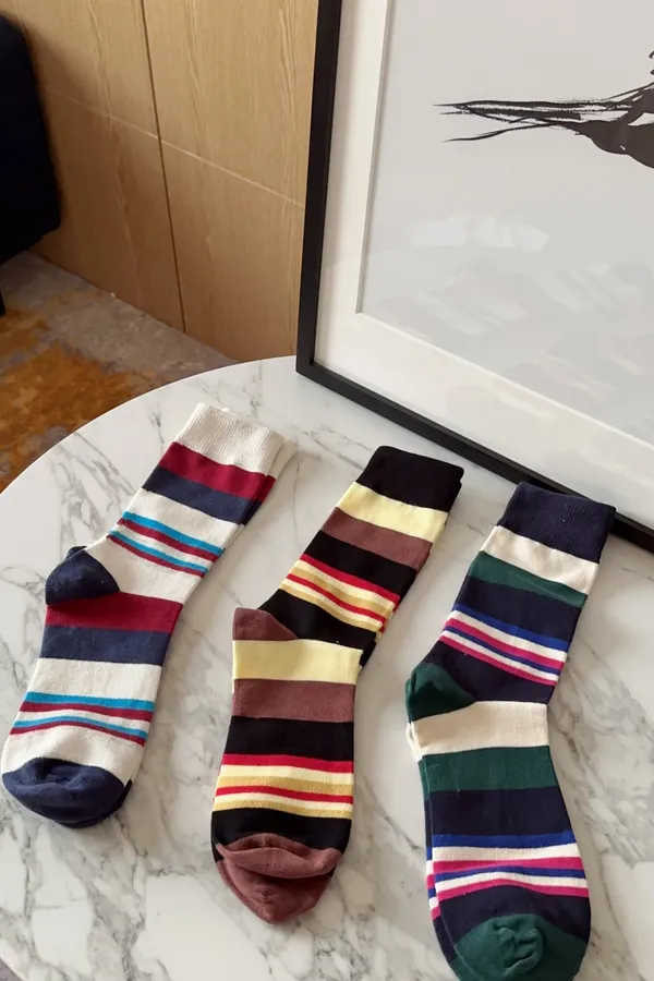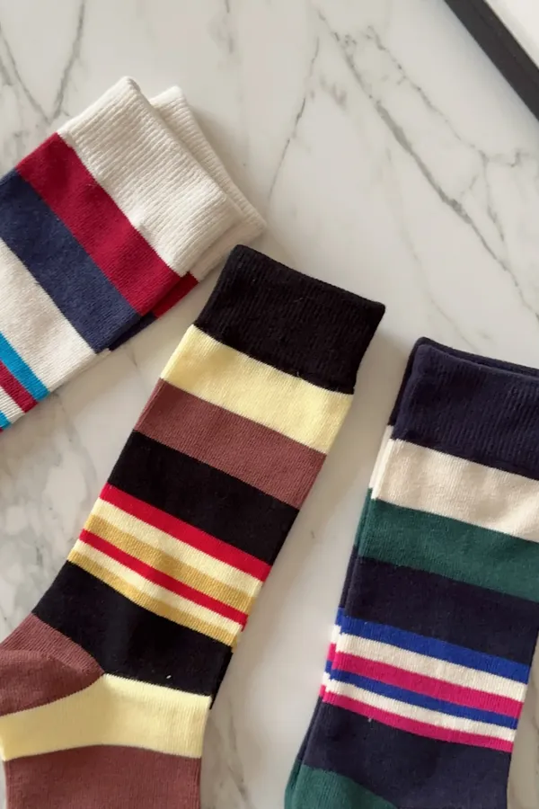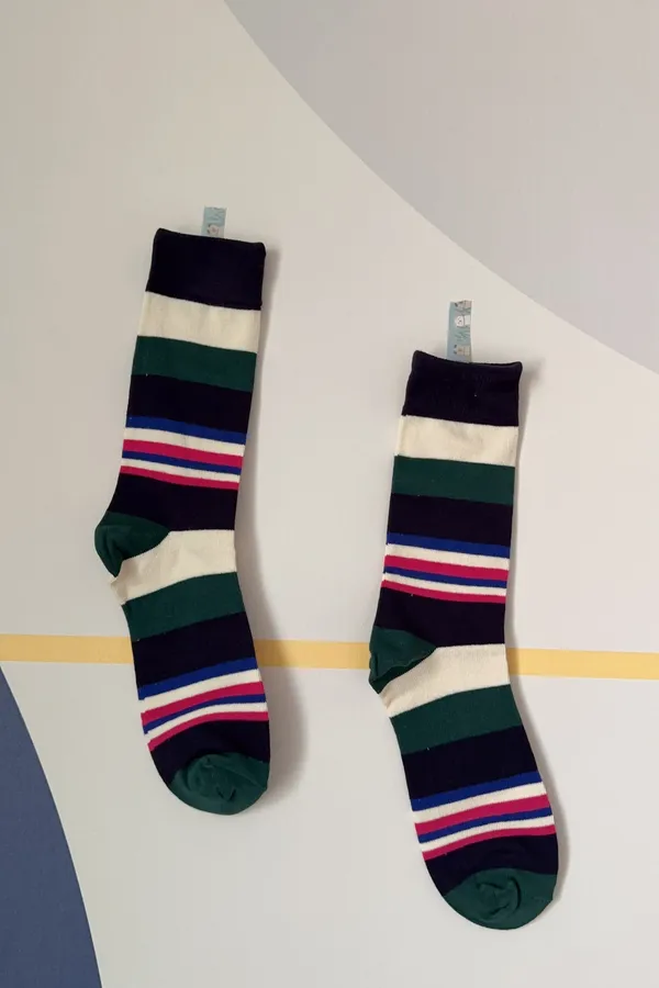 A102997 能量滿滿繽紛中統條紋襪 兩雙一組