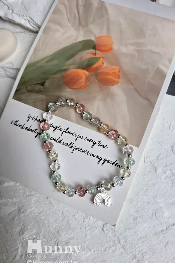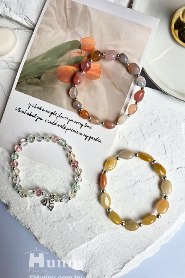 A112803 純銀加強大顆水晶手鍊 五行粉晶草莓晶白水晶