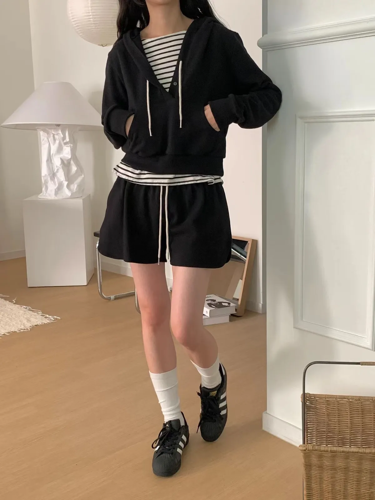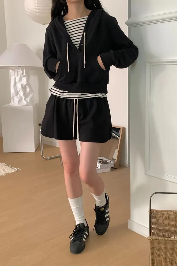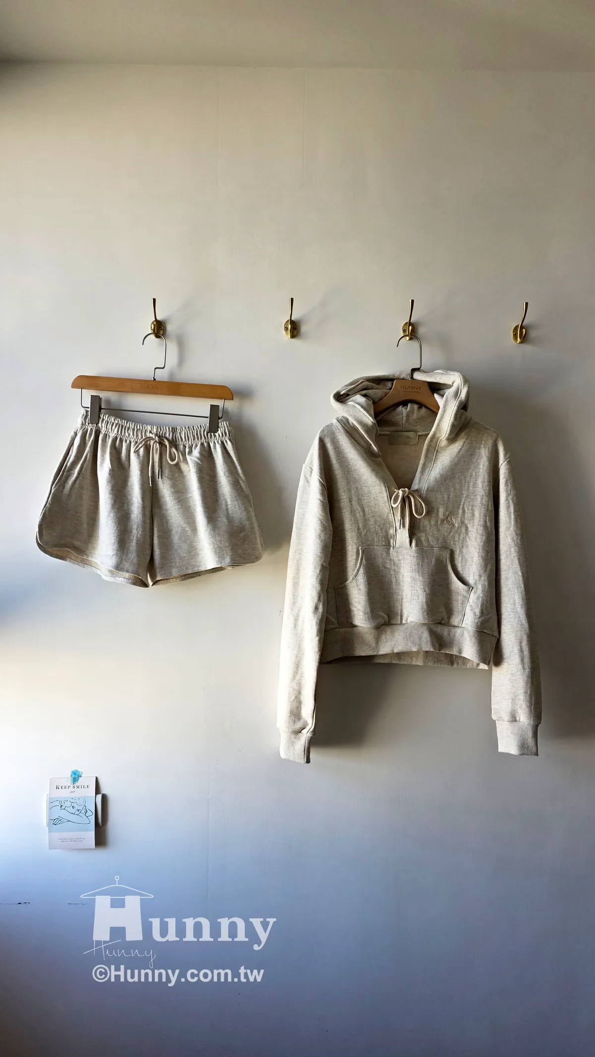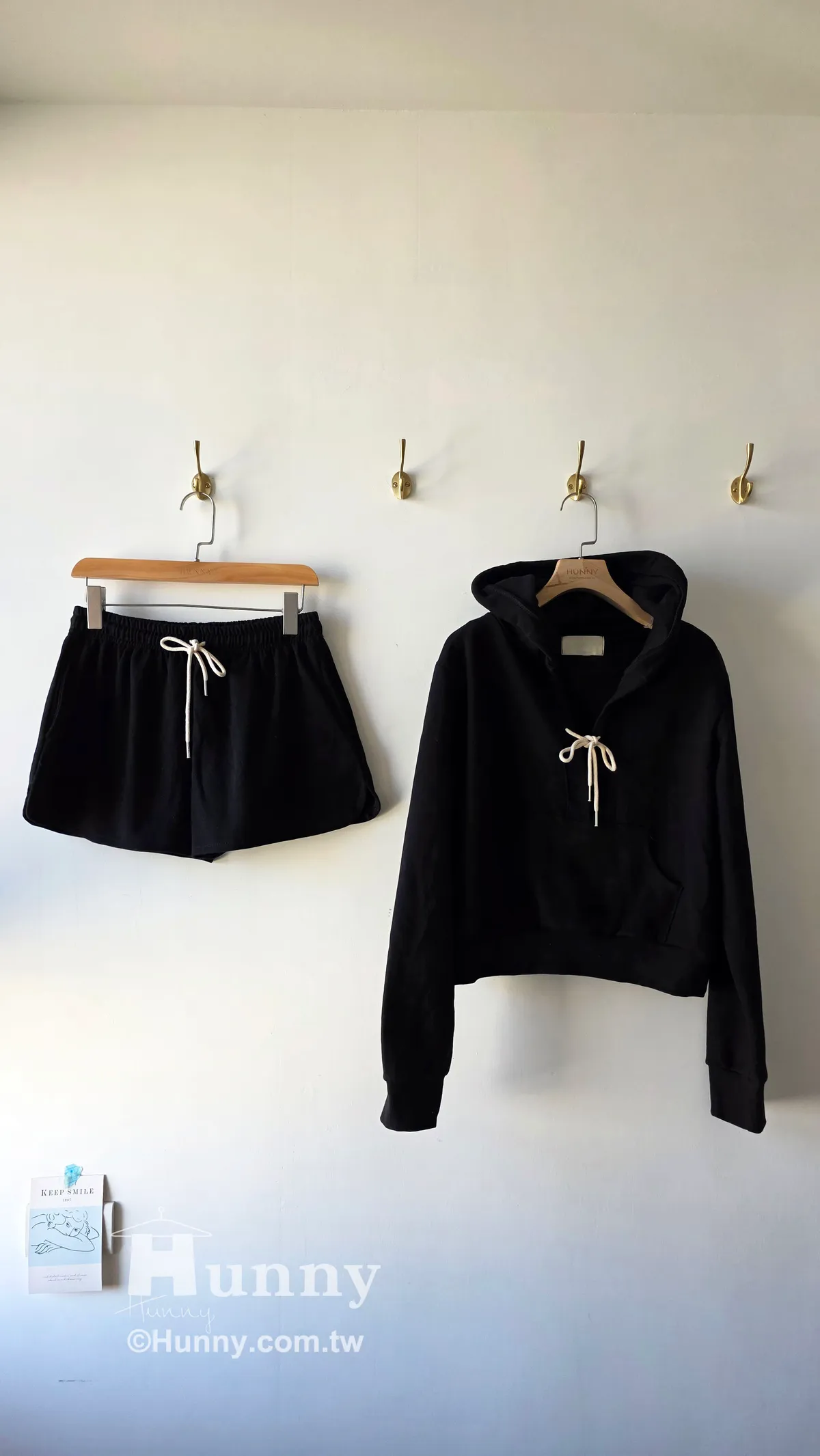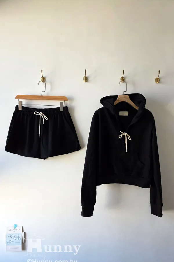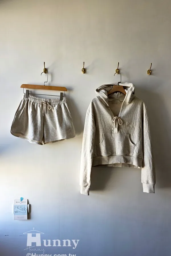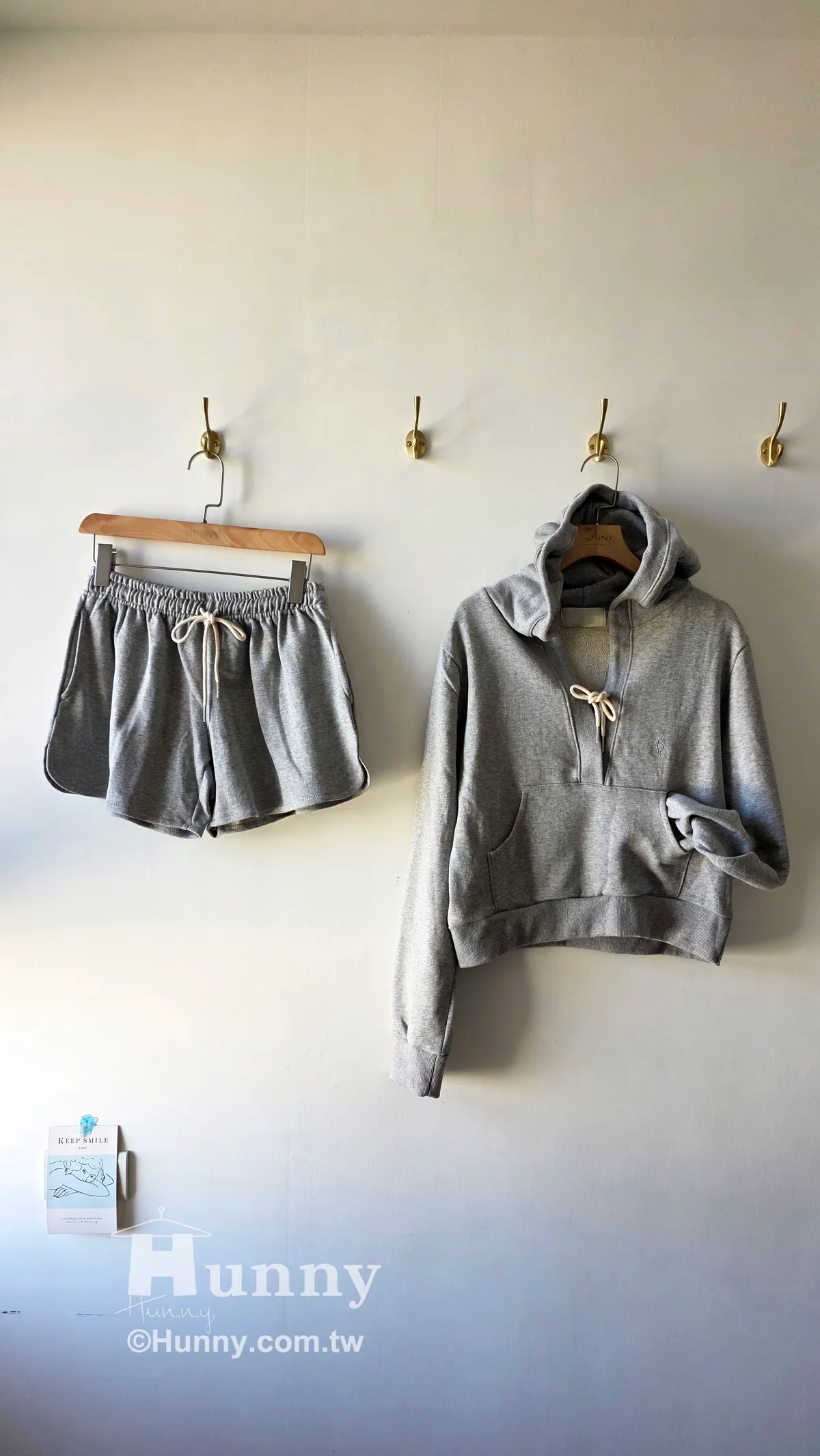 A112817 可搭一套一秒變歐美 大開V亨利帽T/小U側邊短褲 黑/灰/雪花米