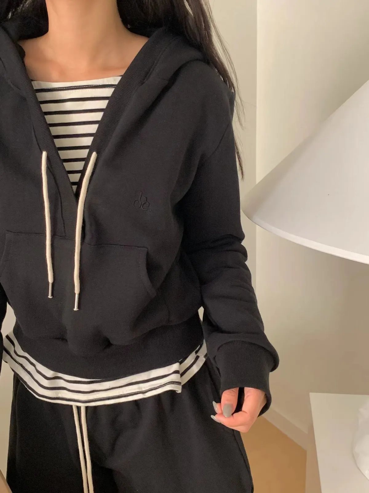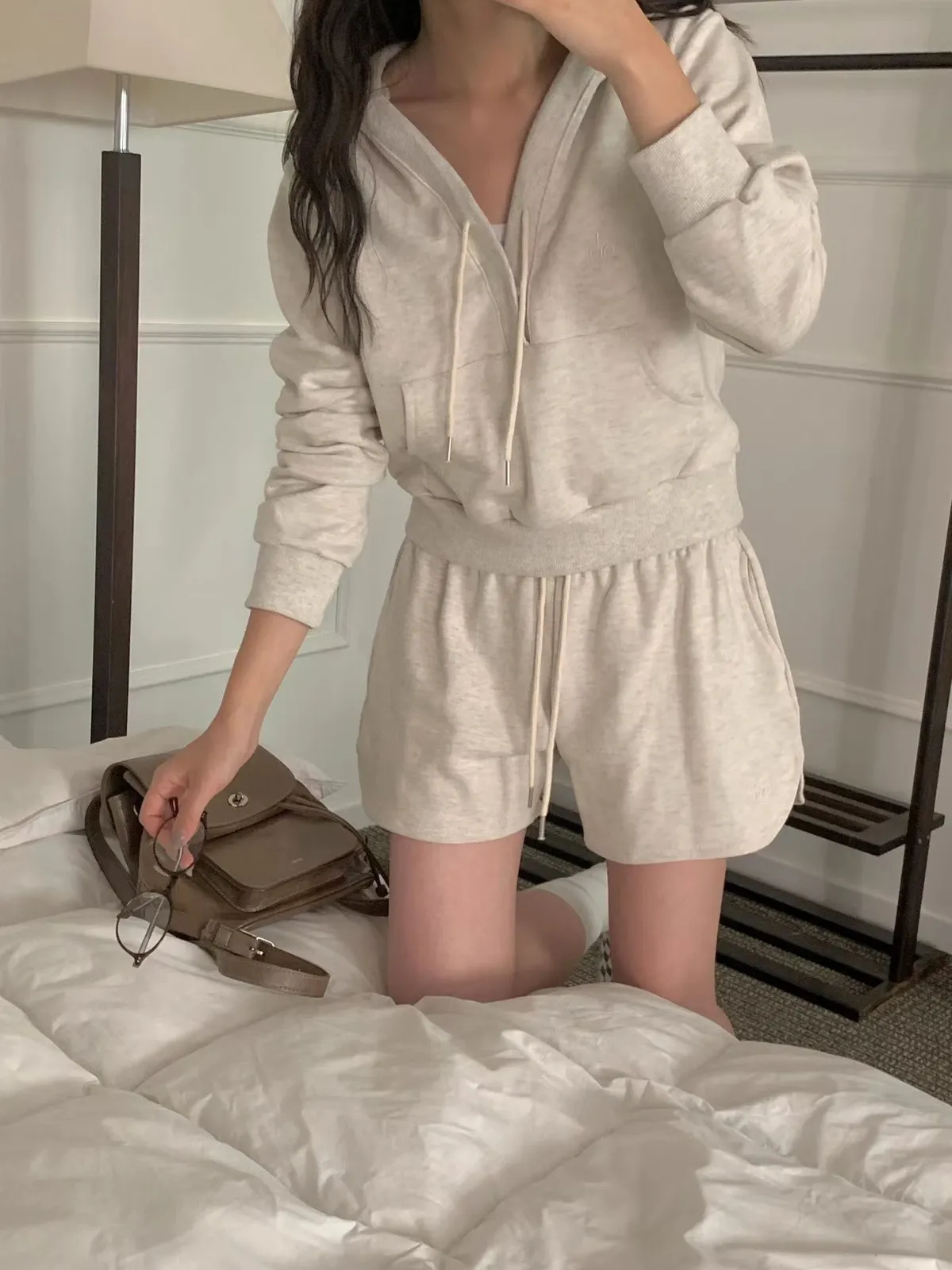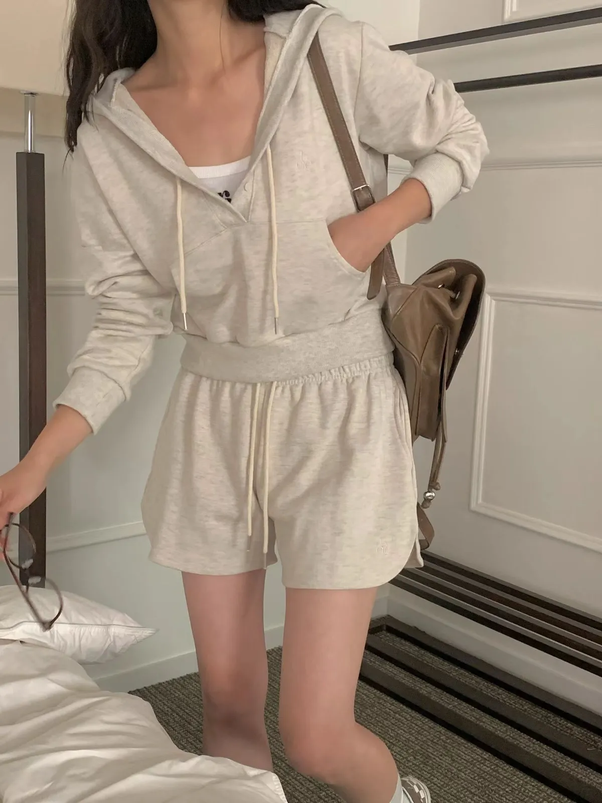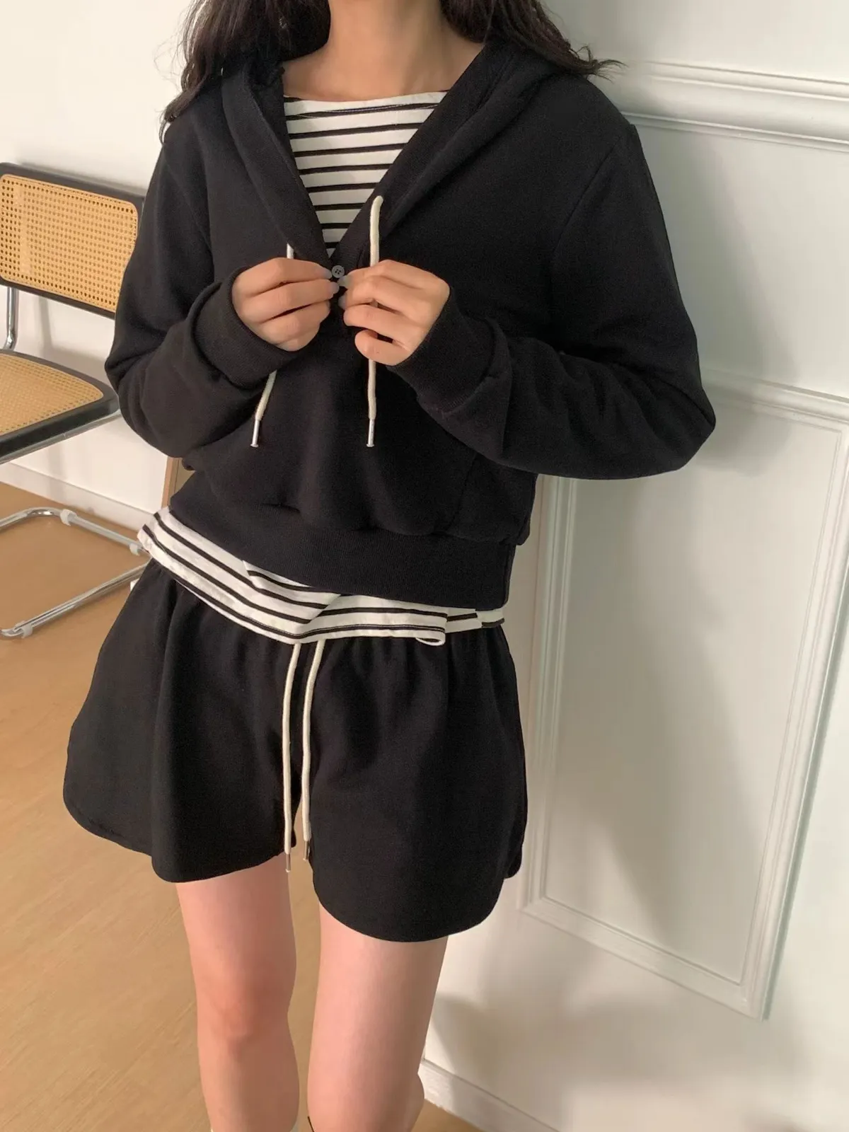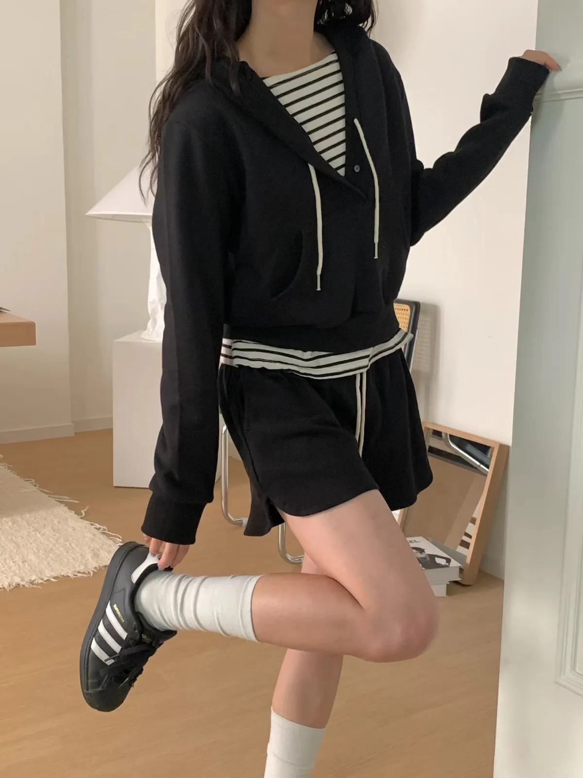 A112817 可搭一套一秒變歐美 大開V亨利帽T/小U側邊短褲 黑/灰/雪花米