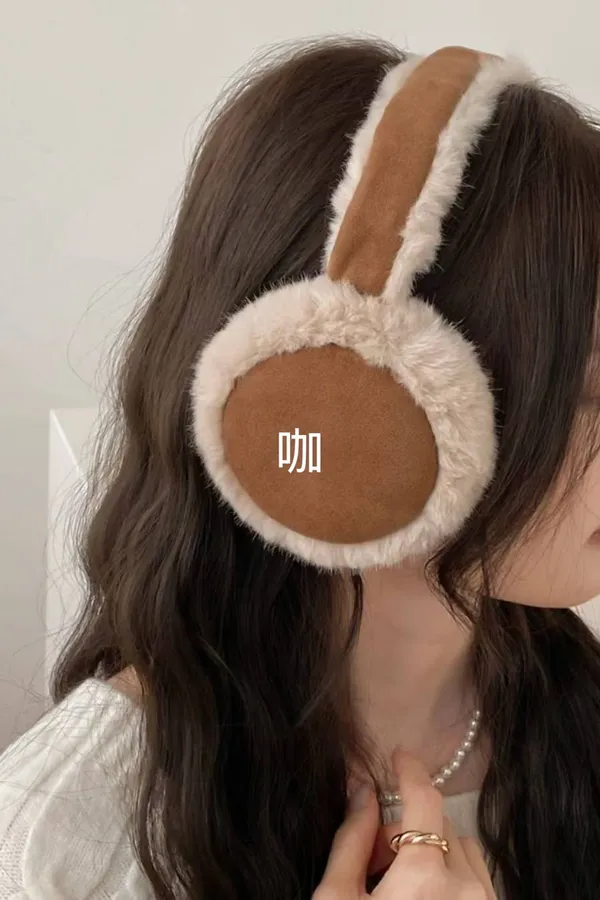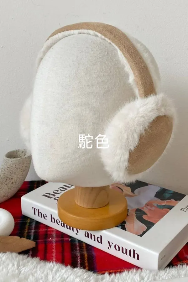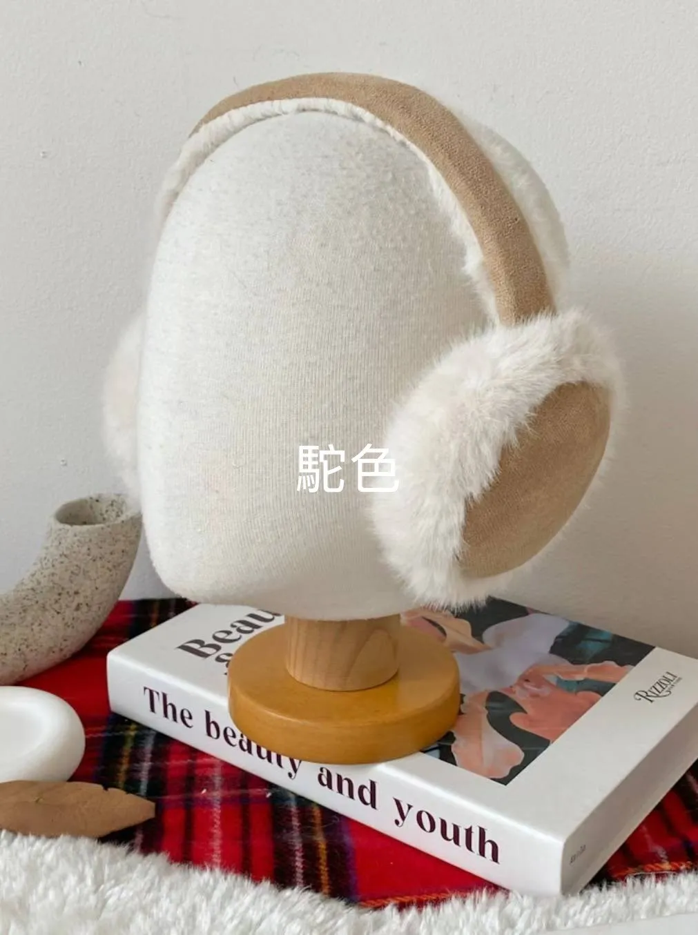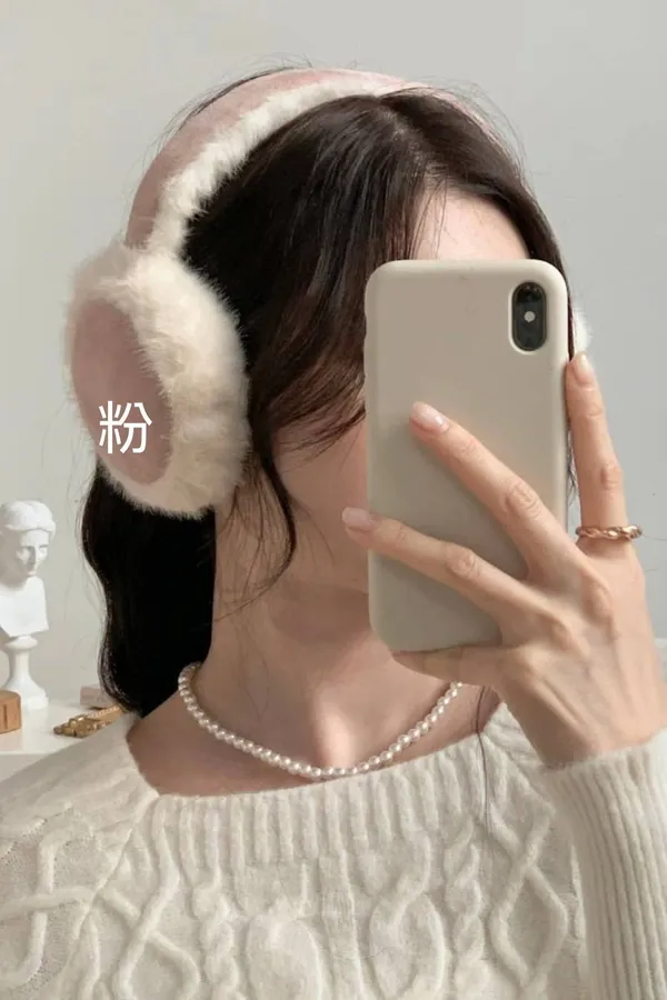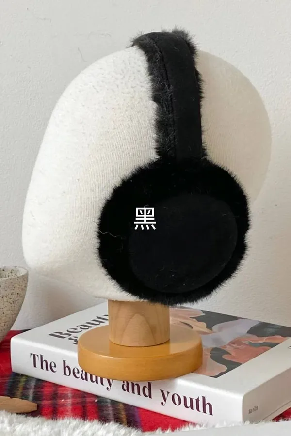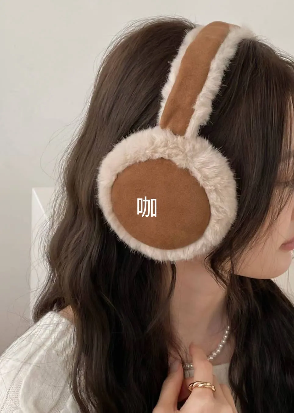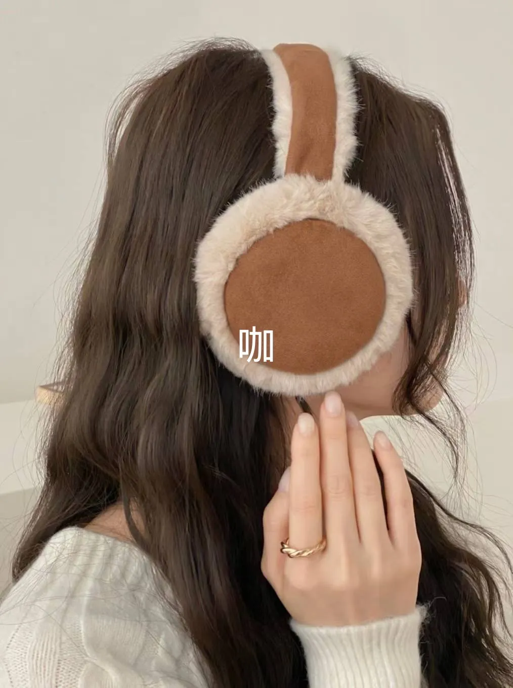 A112888 有她就夠了 超暖麂皮毛毛耳罩 黑咖駝粉