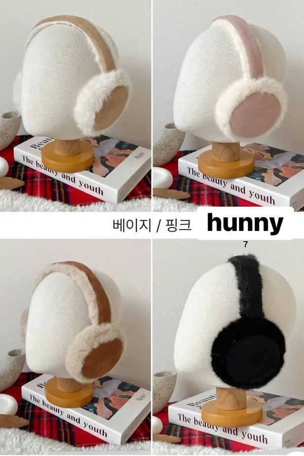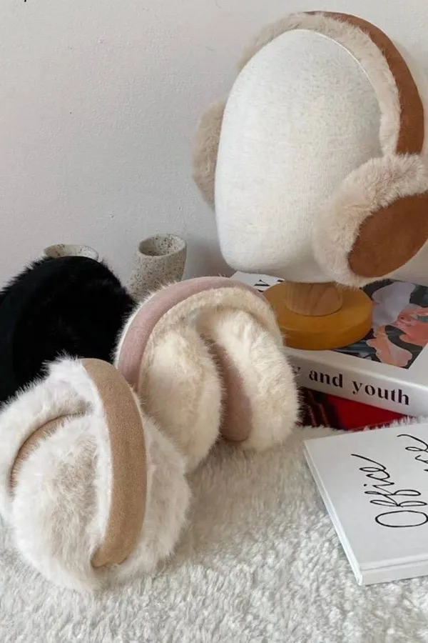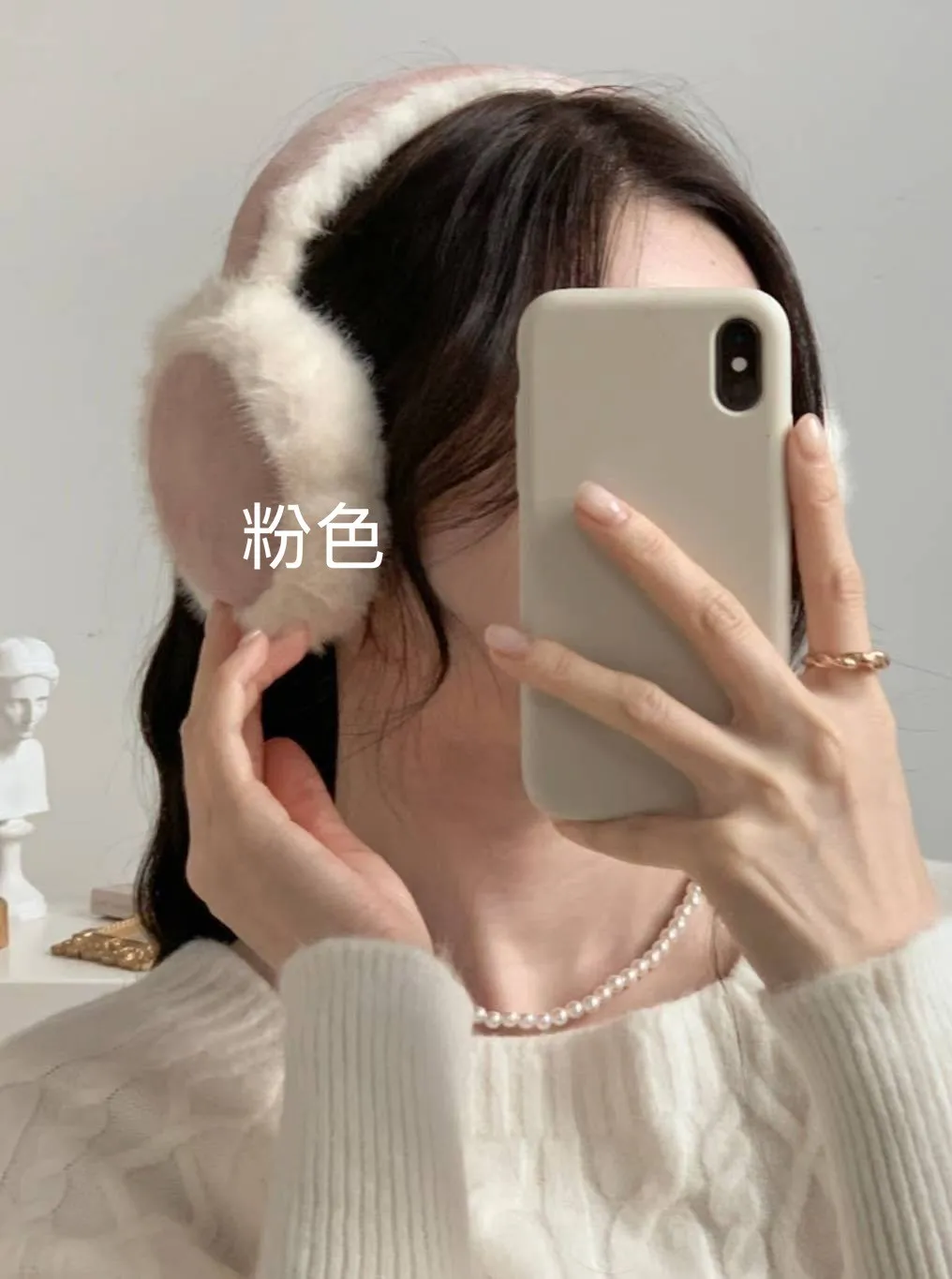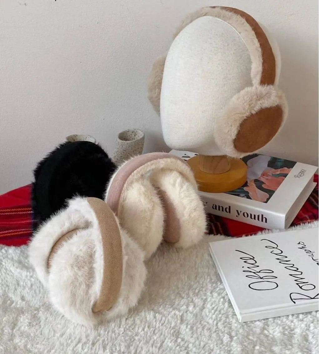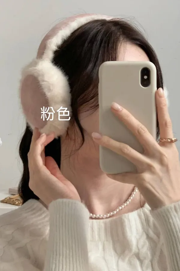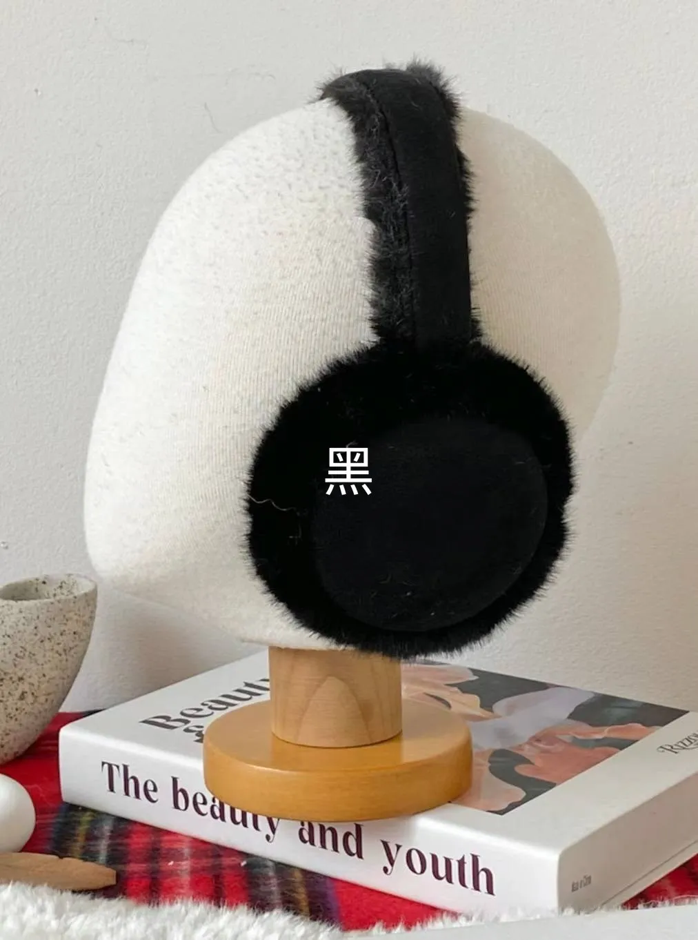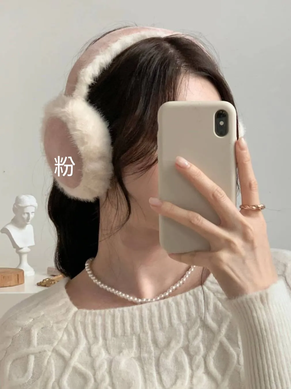 A112888 有她就夠了 超暖麂皮毛毛耳罩 黑咖駝粉