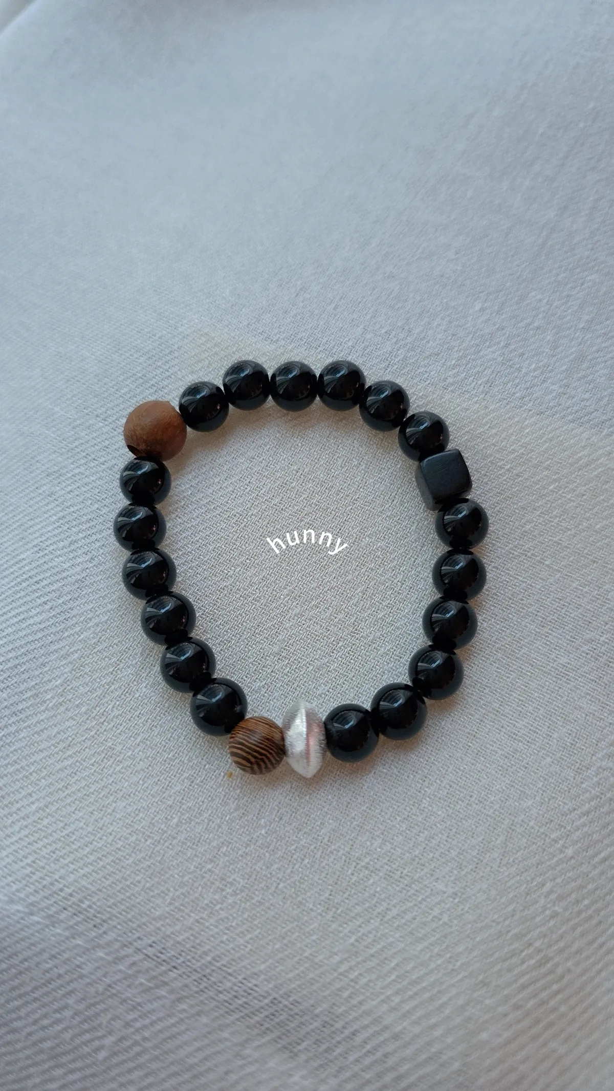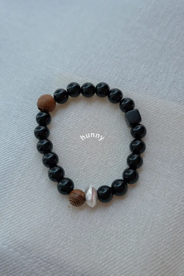 A12804 925純銀手鏈 九顆恆星/淡水珍珠塊/草莓晶荷包/黑曜石沉香木