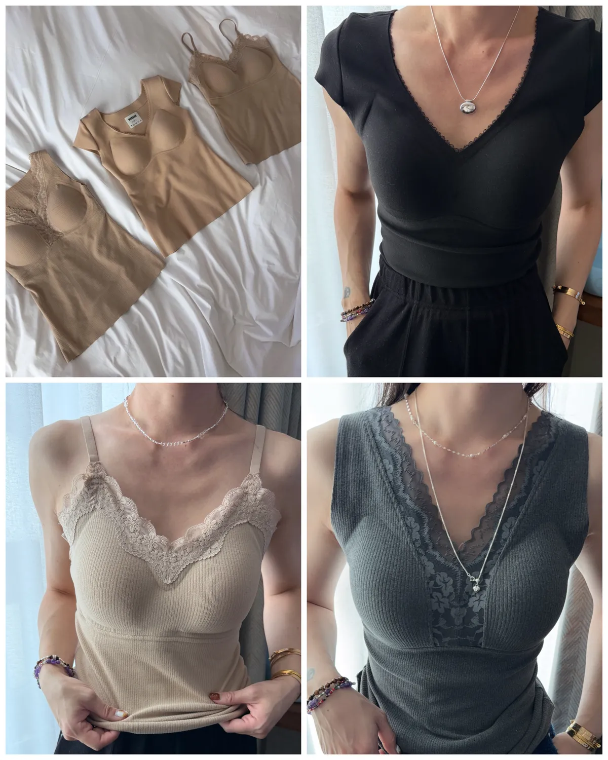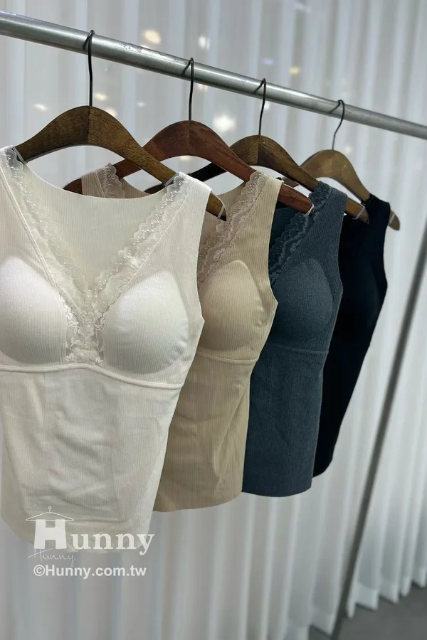A12917 發熱升溫蕾絲內衣 黑駝灰杏 M~XL 細肩/寬肩