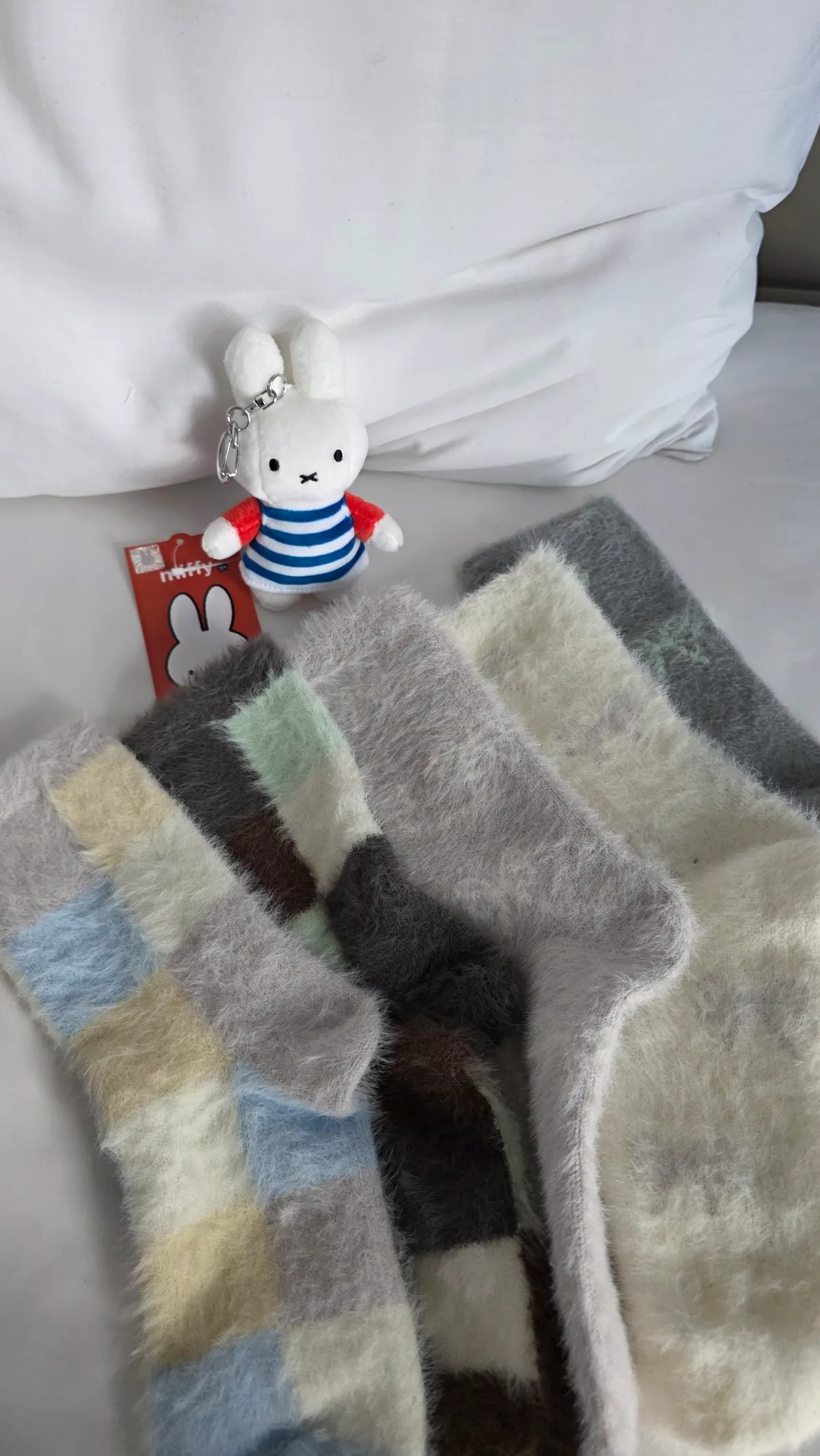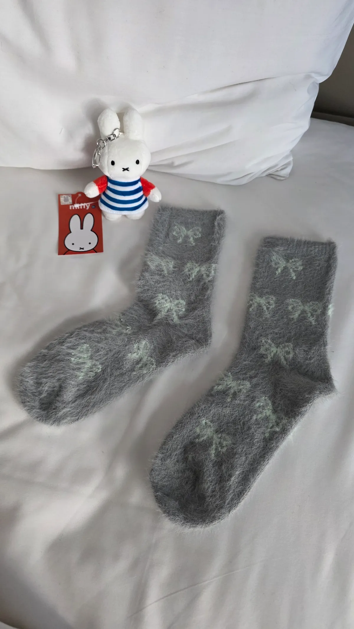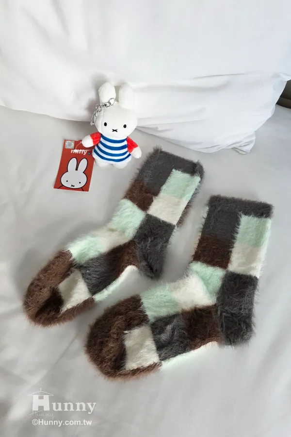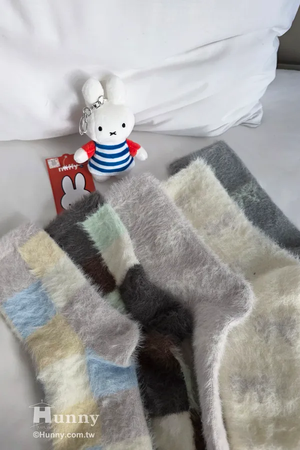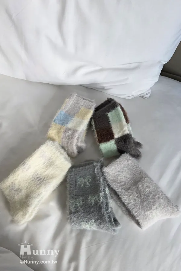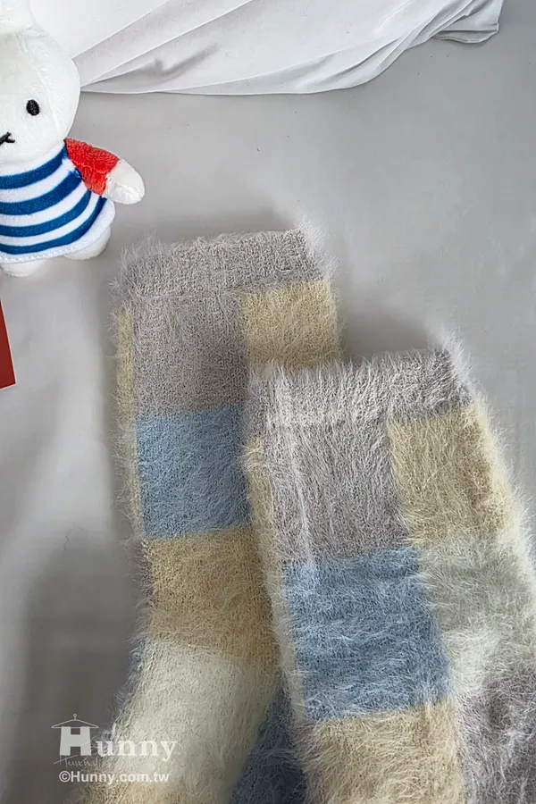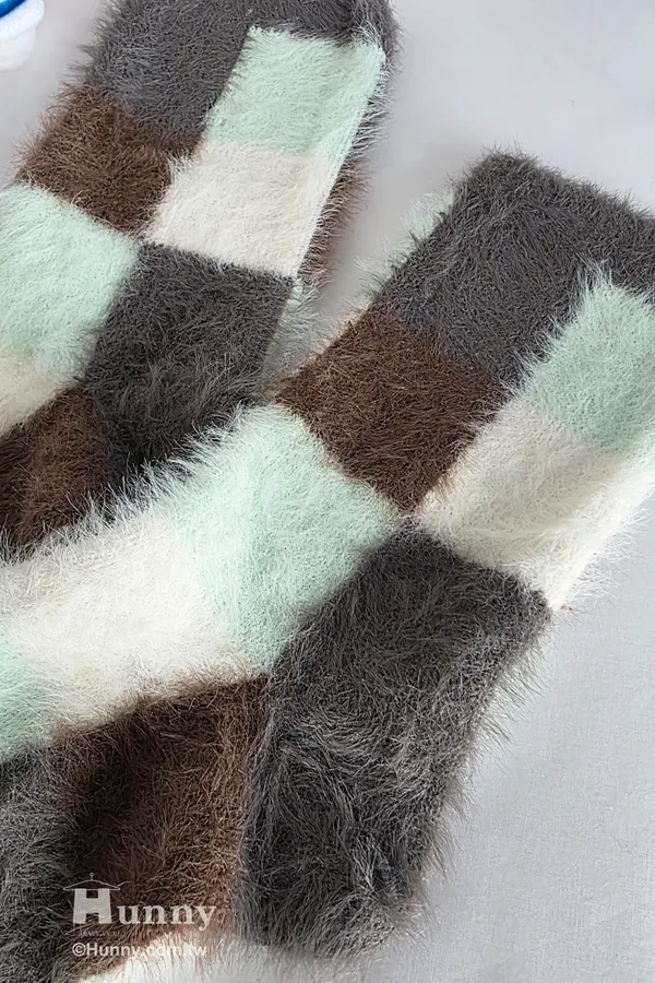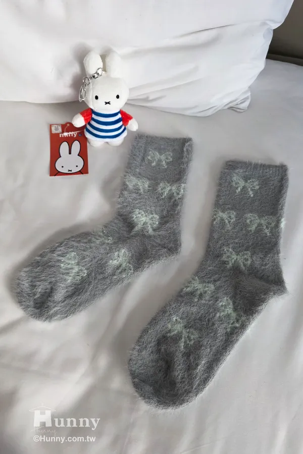 A13133 立體毛海發熱中統襪 蝴蝶結/彩色格 兩雙一組