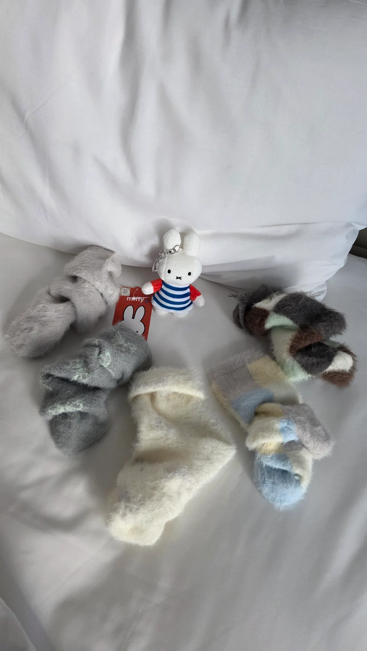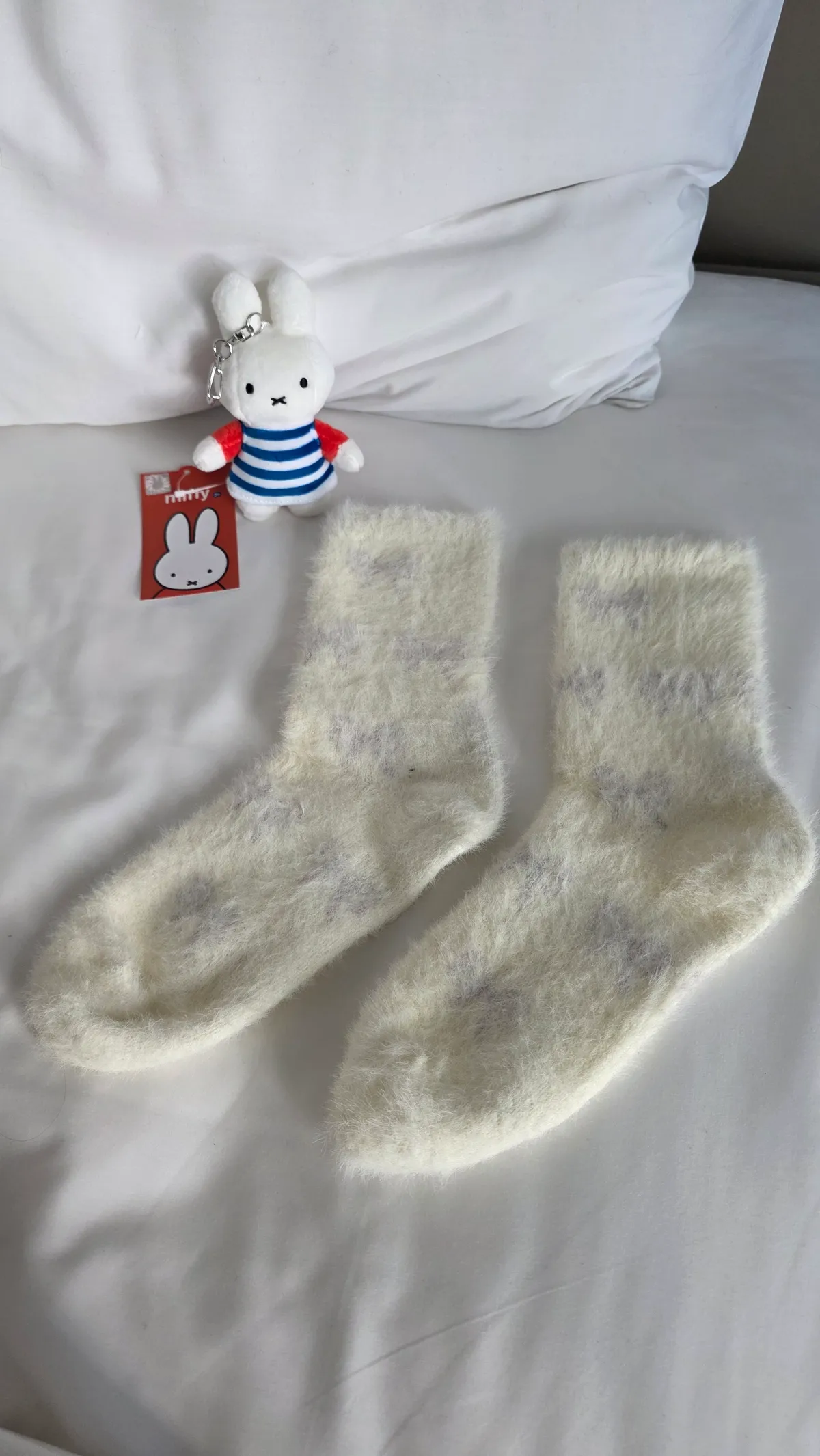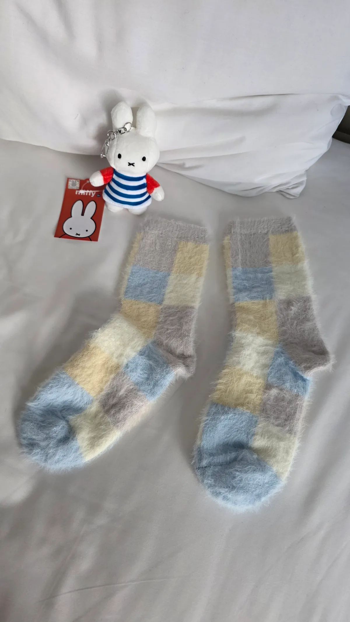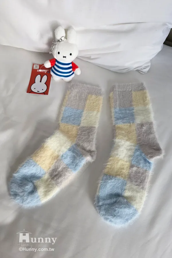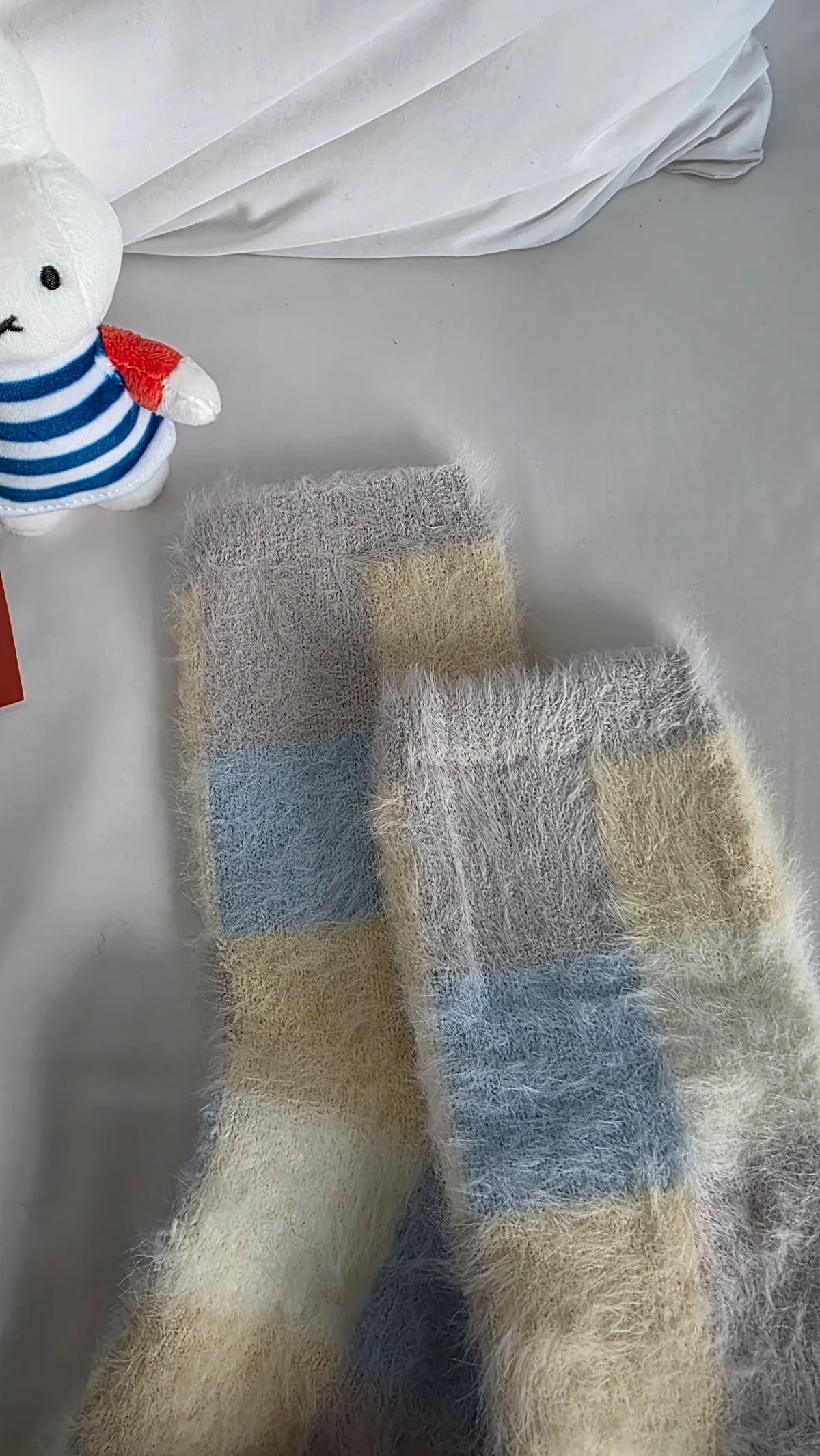 A13133 立體毛海發熱中統襪 蝴蝶結/彩色格 兩雙一組
