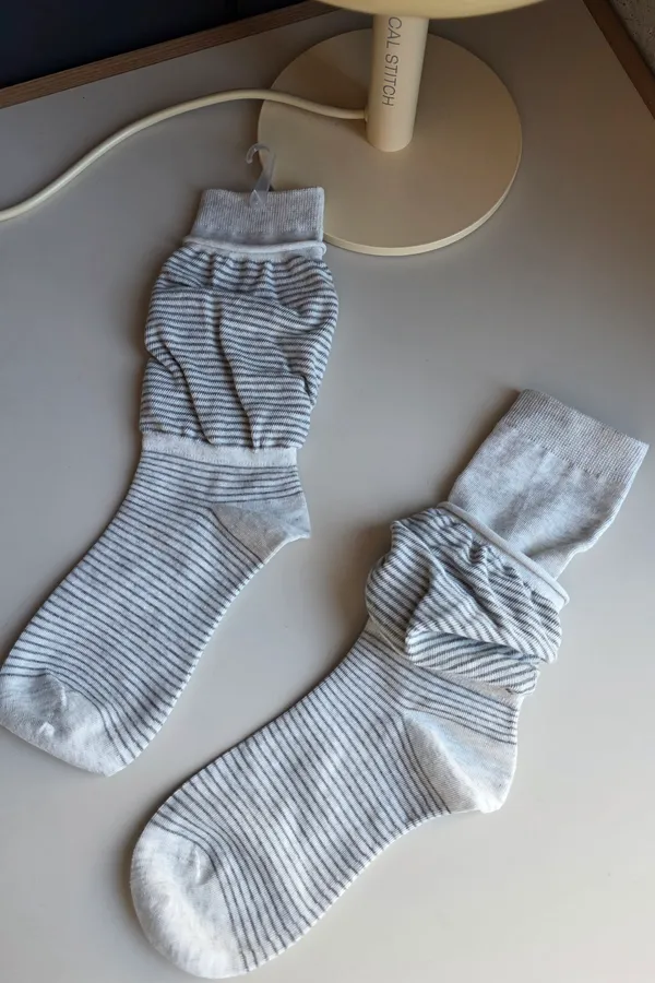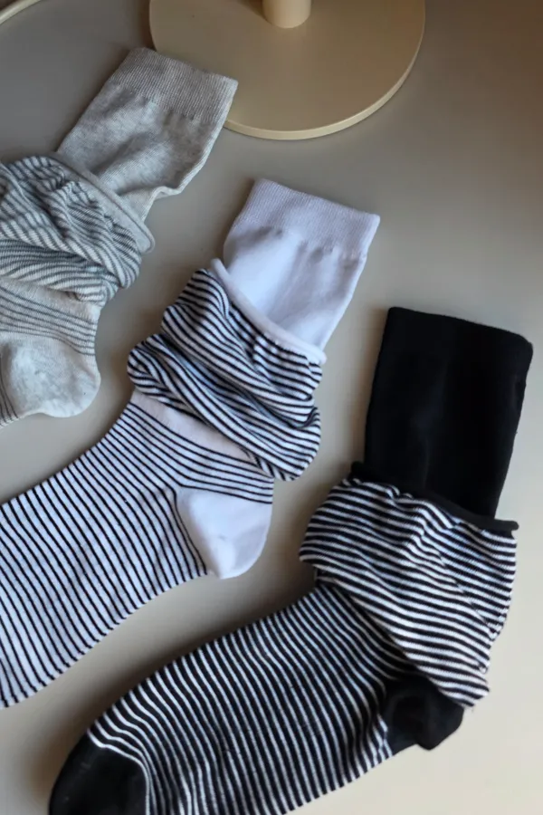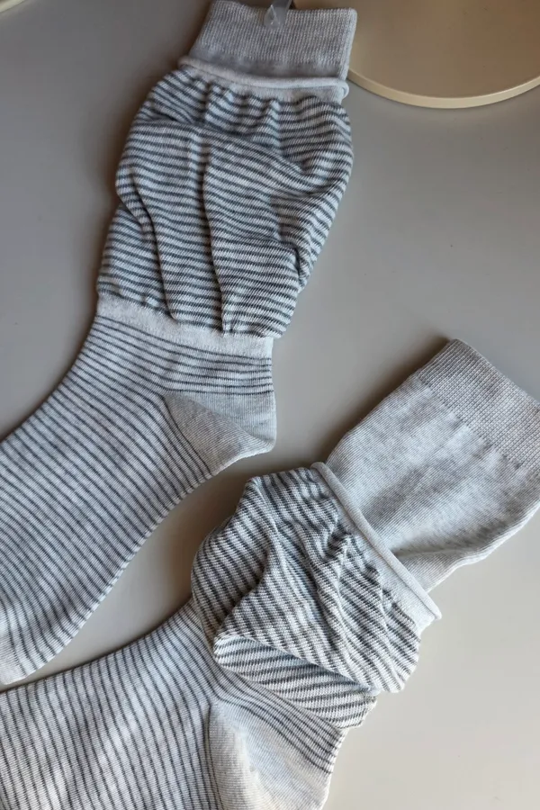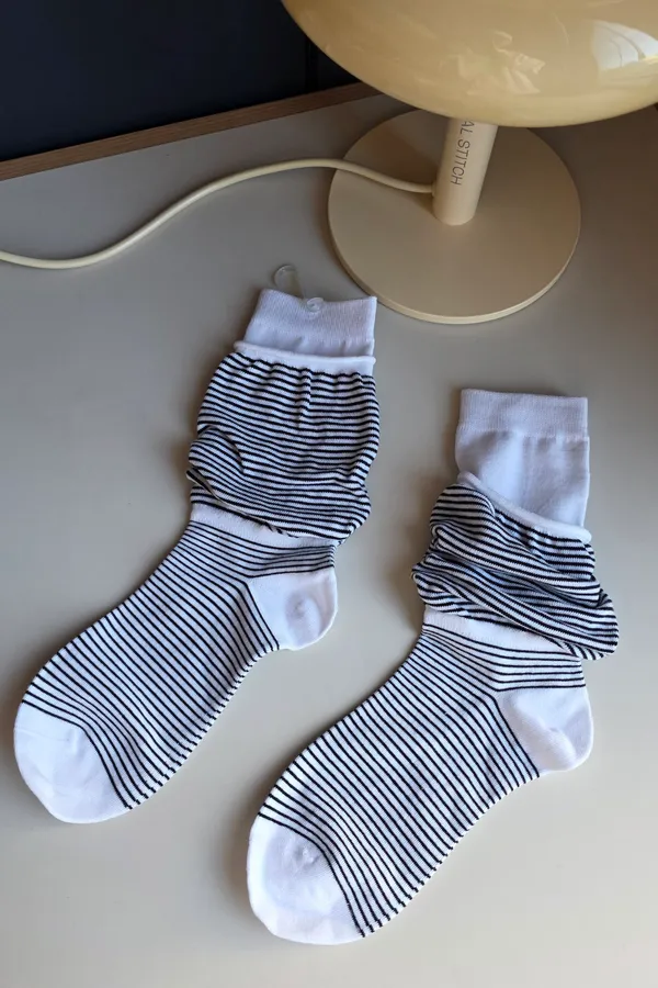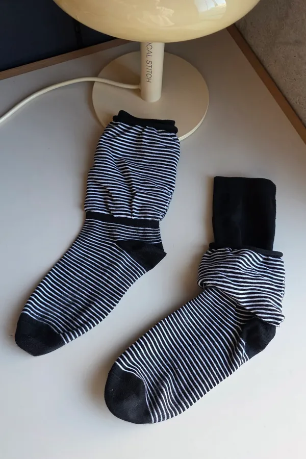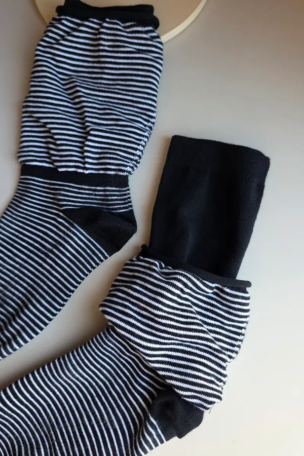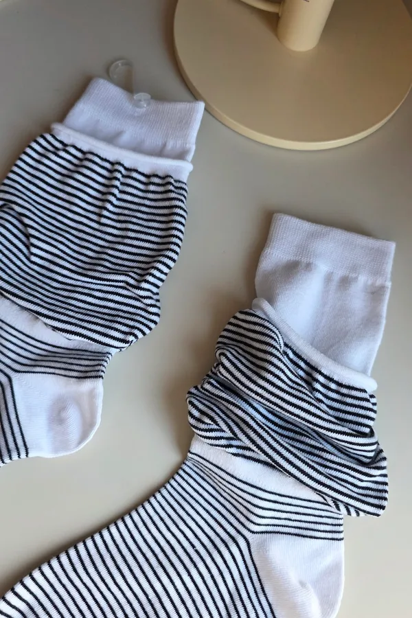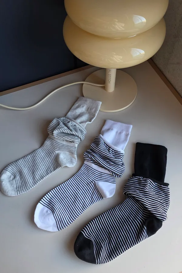 A31188 雙層泡泡條紋襪 黑/灰/白