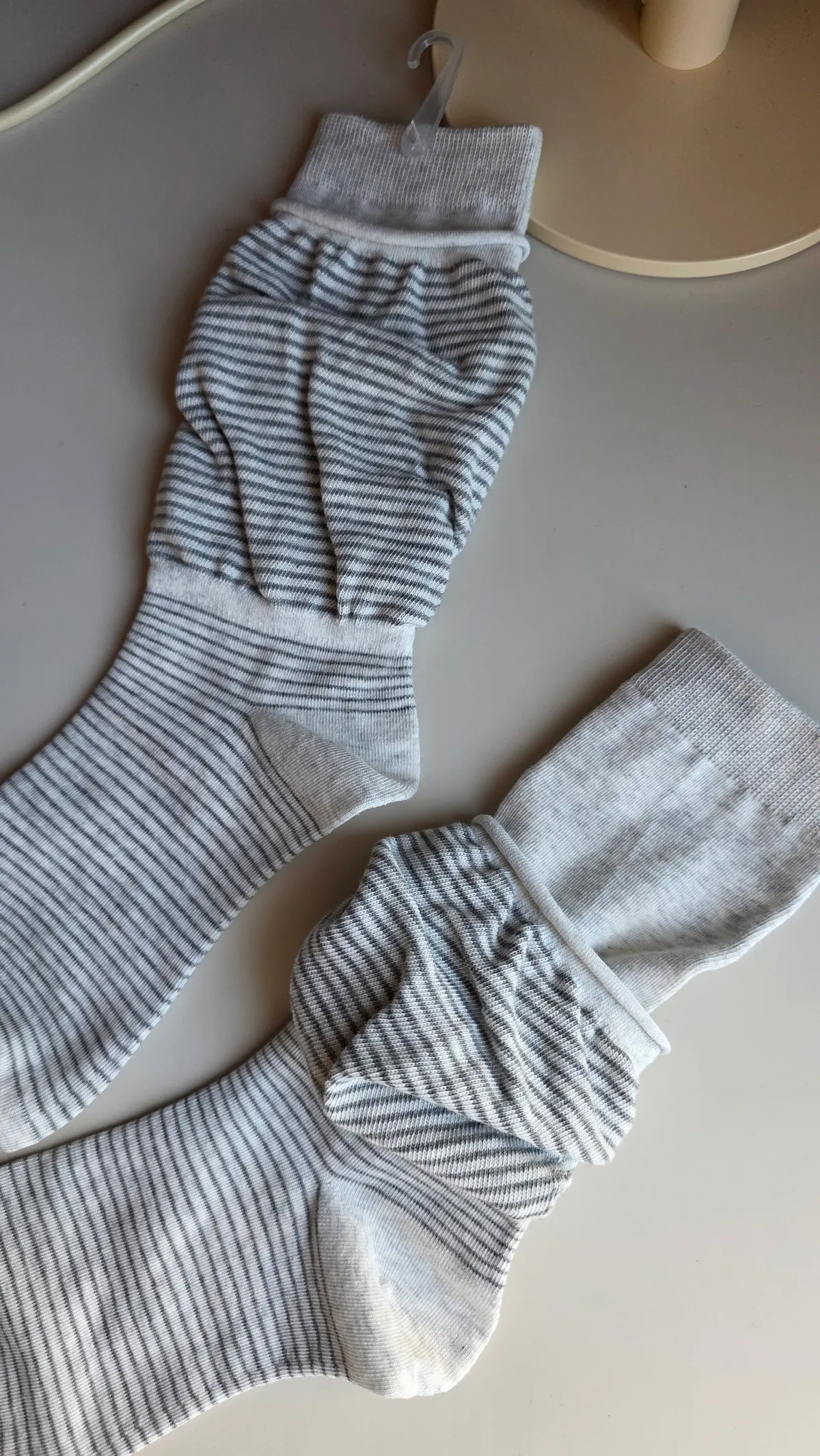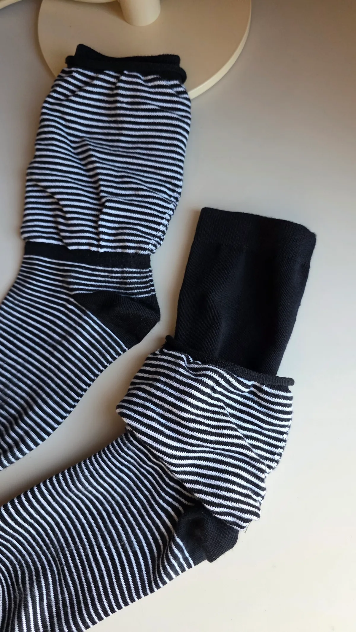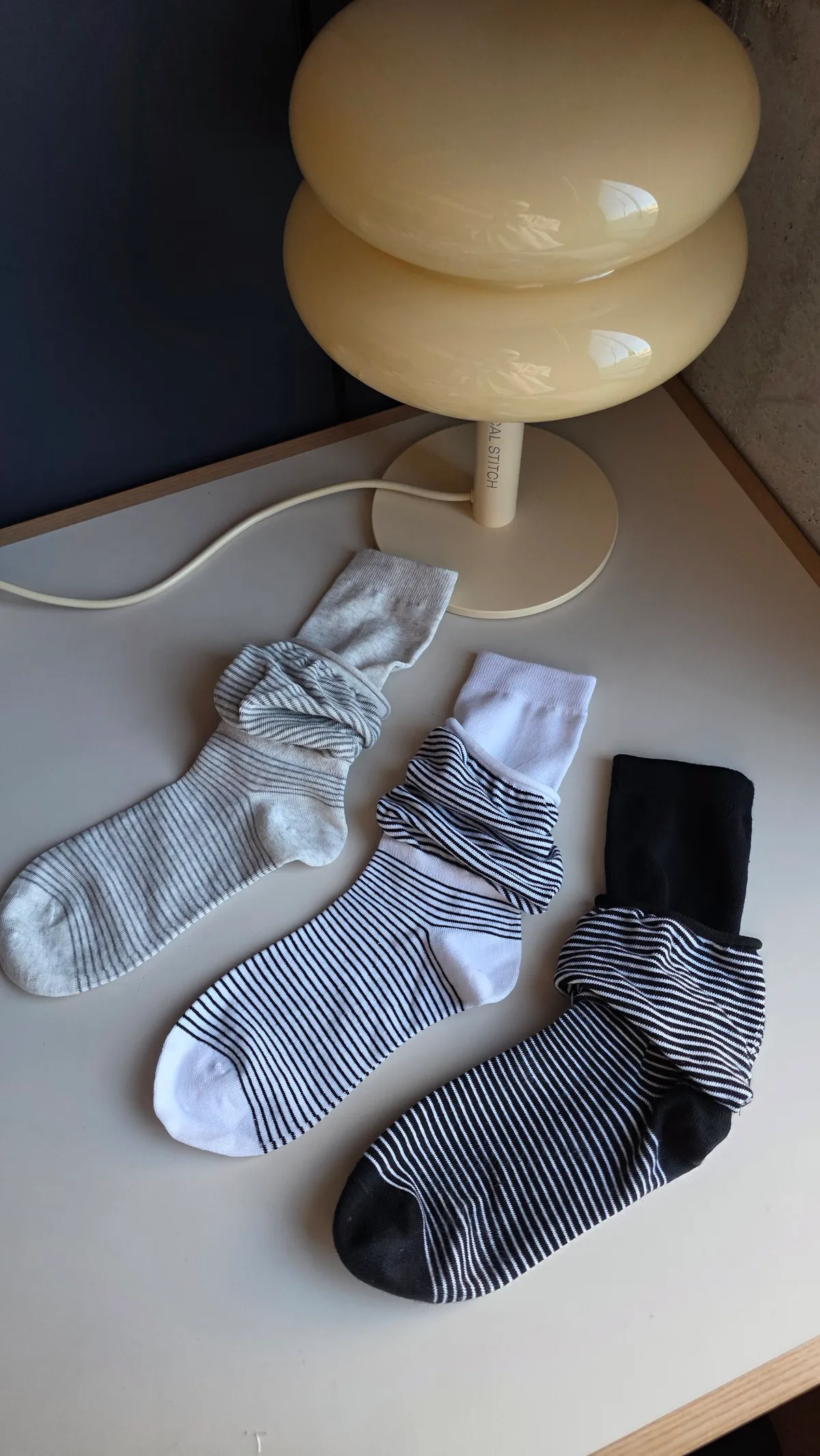 A31188 雙層泡泡條紋襪 黑/灰/白