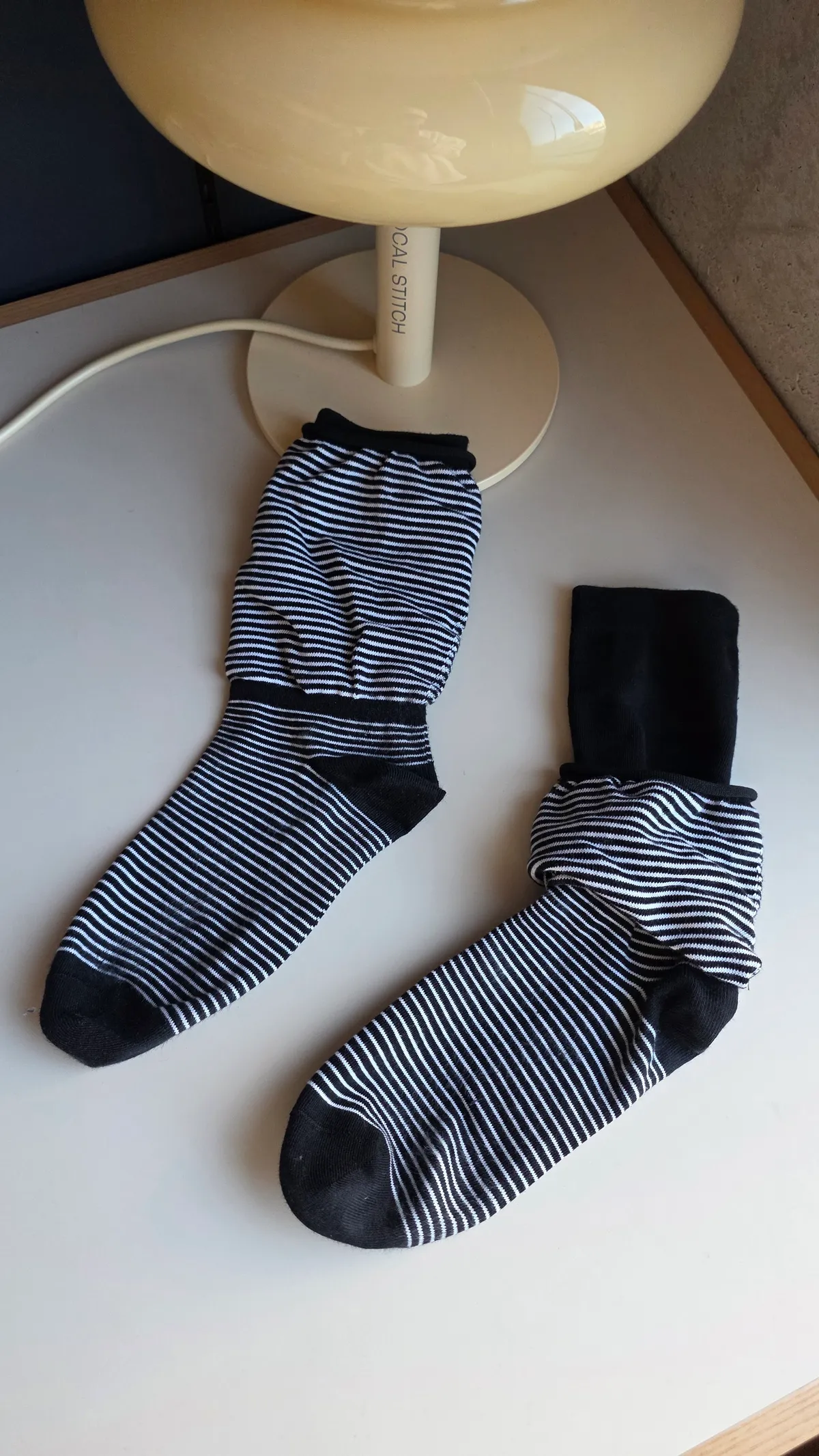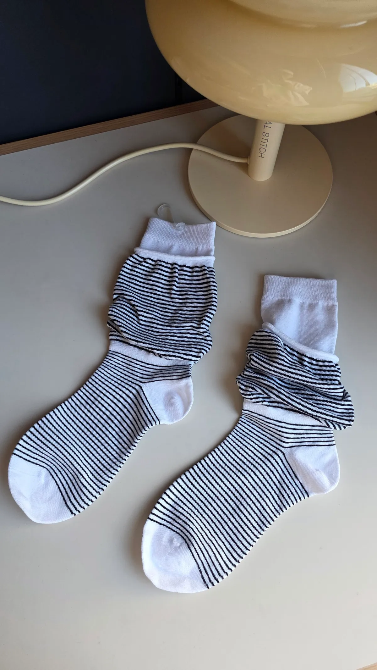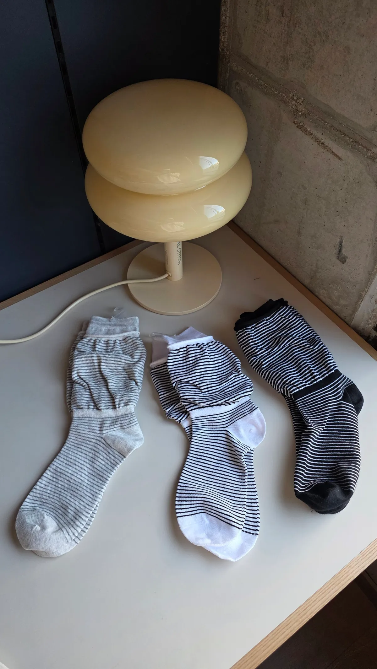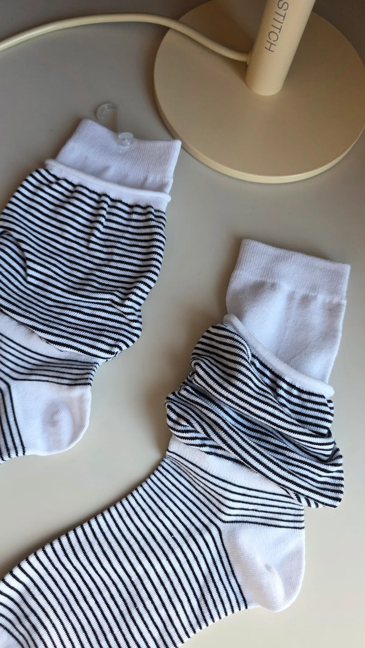 A31188 雙層泡泡條紋襪 黑/灰/白