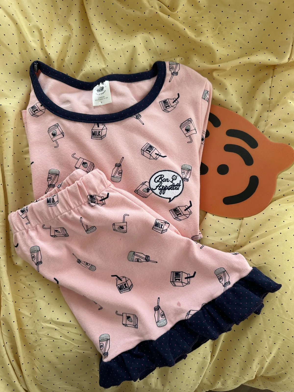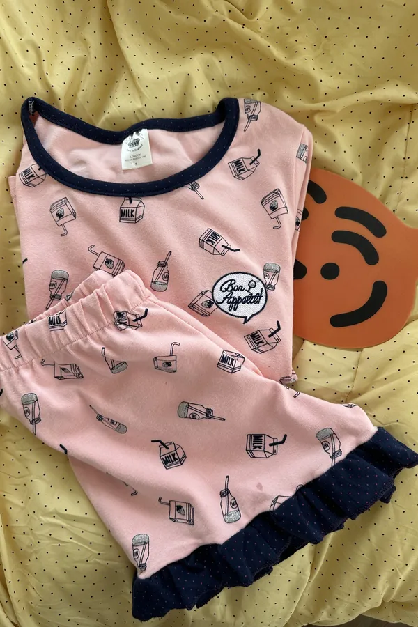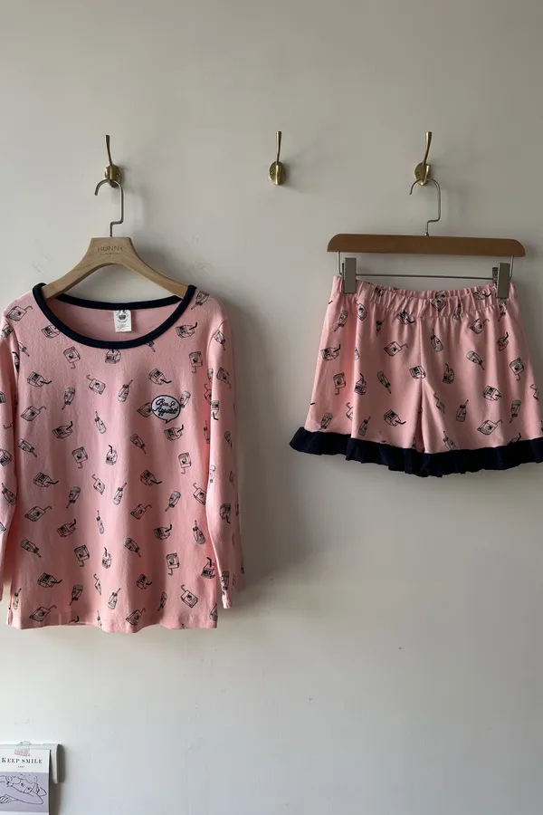 A32171 立體銀蔥牛奶瓶厚棉家居服 現貨粉