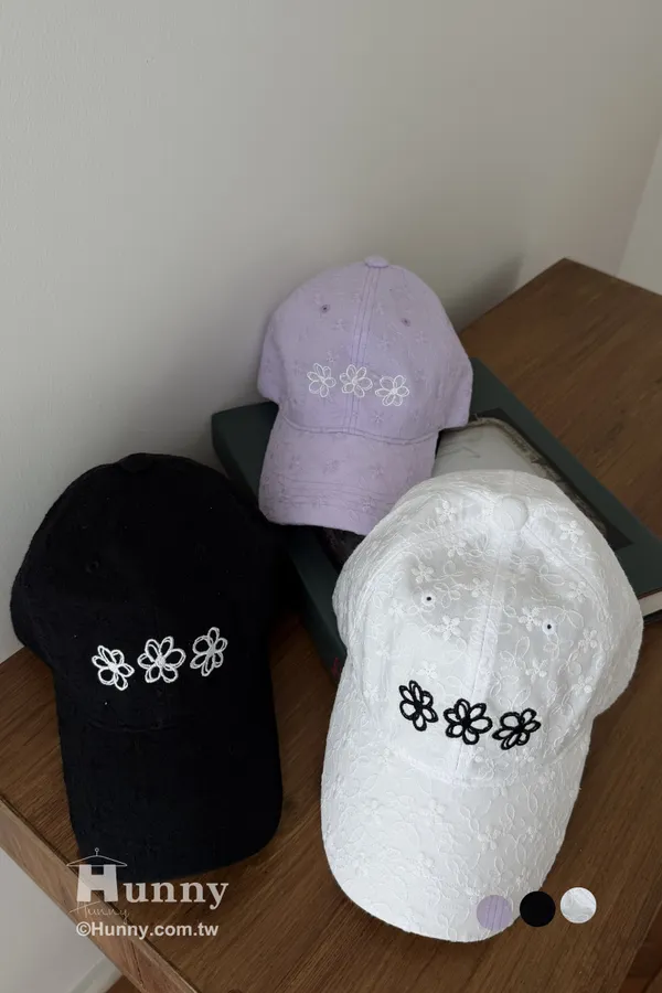 A40906 訂製浪漫刺繡小花棒球帽 黑/紫/白