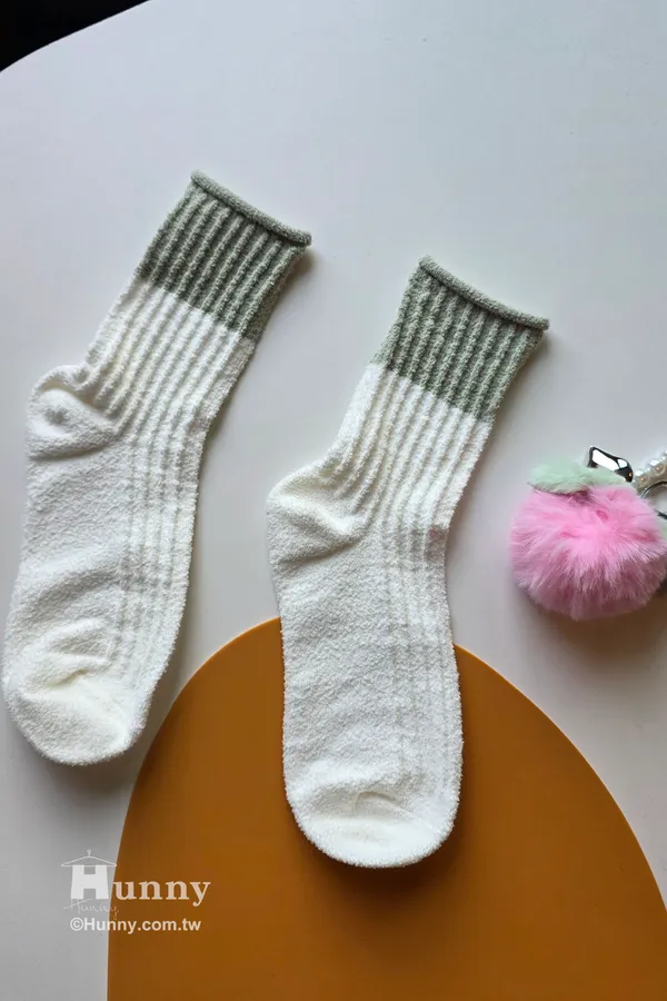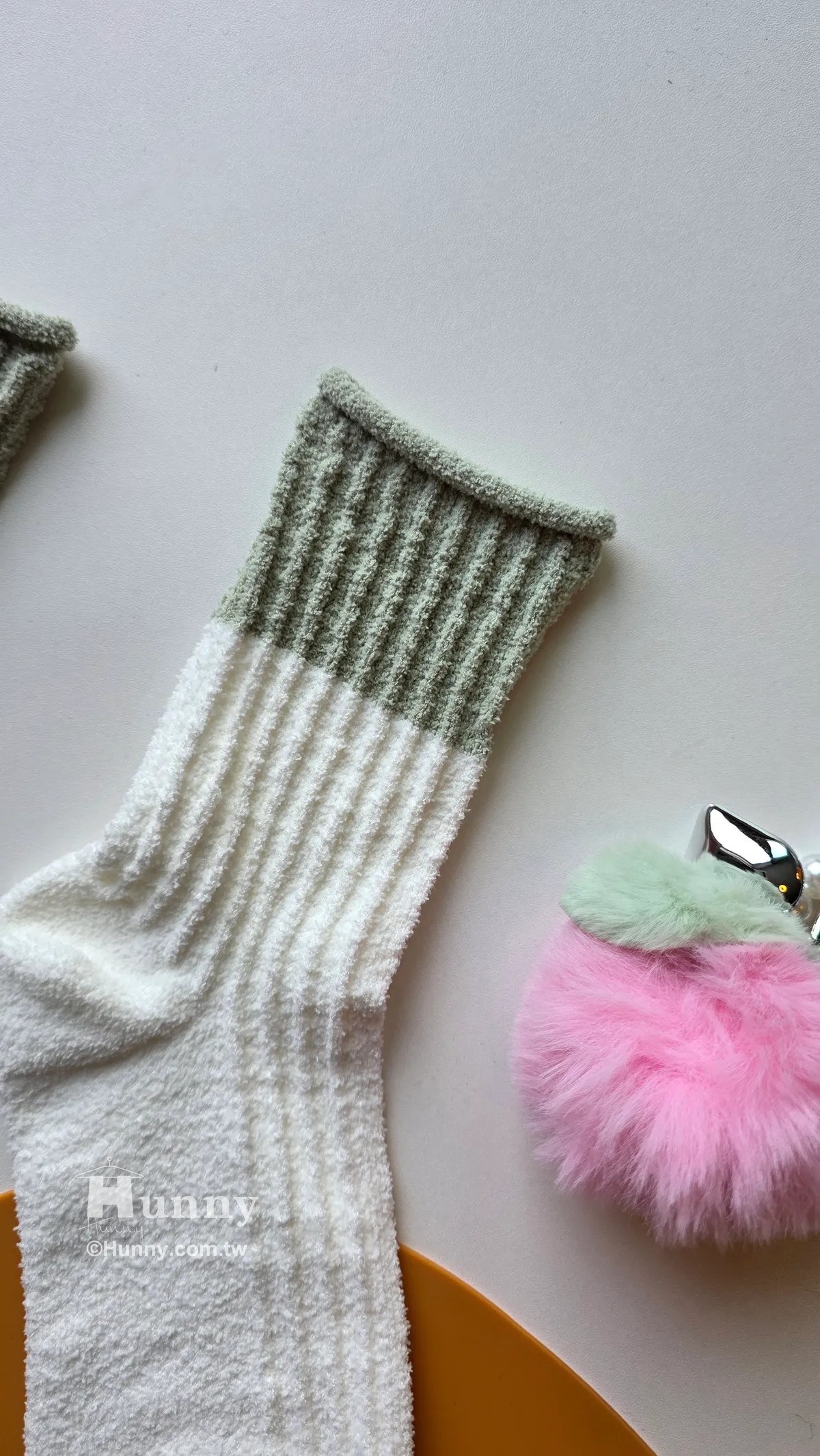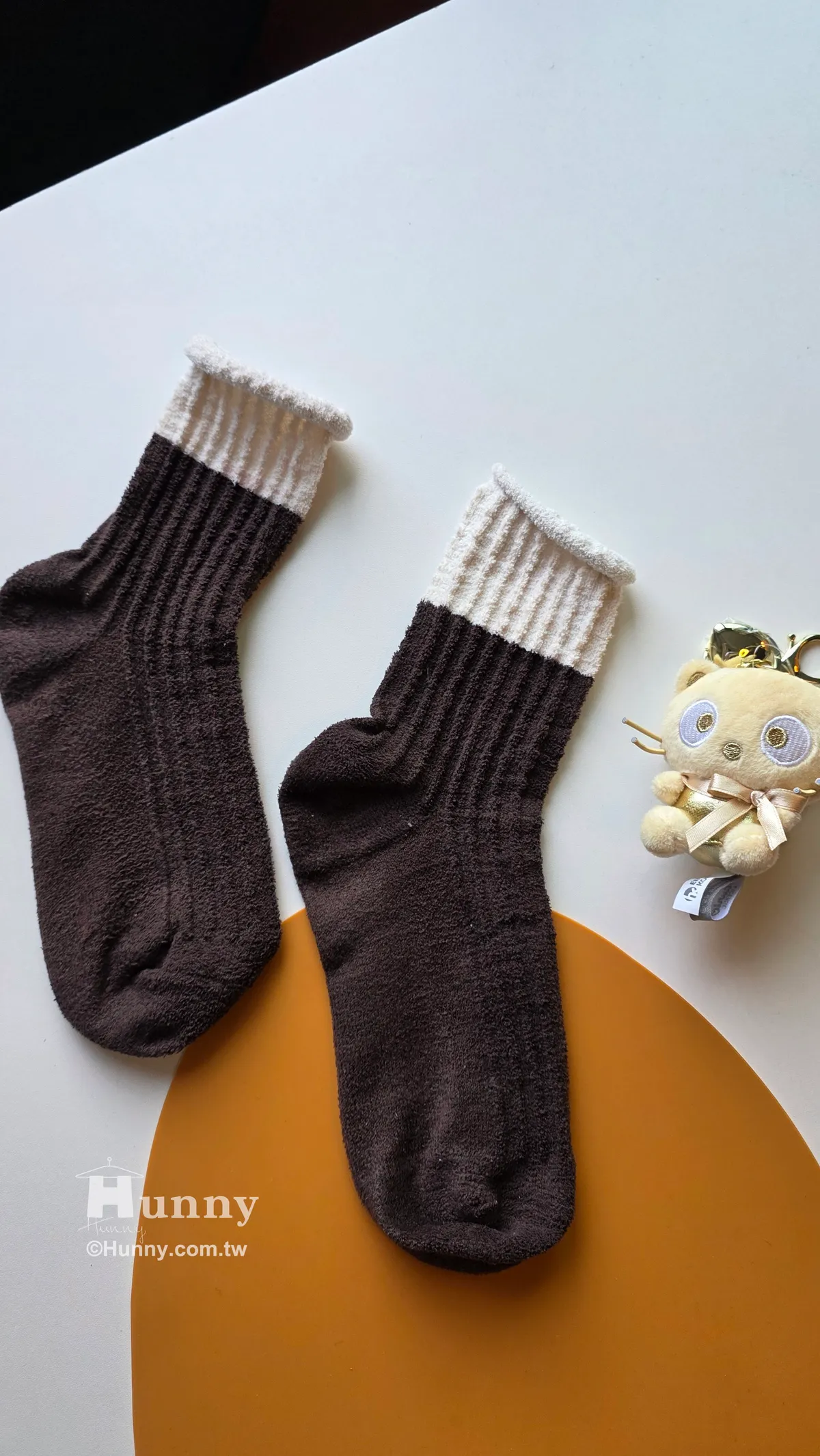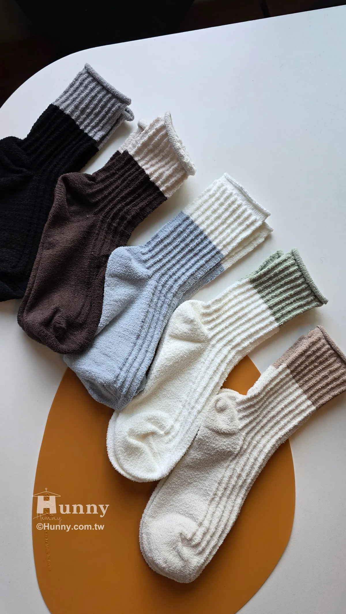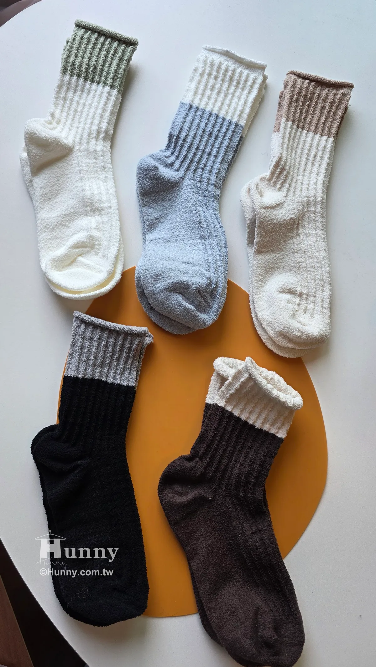 A752025 甜美色調撞色羊絨襪襪 黑/咖/藍/杏/綠