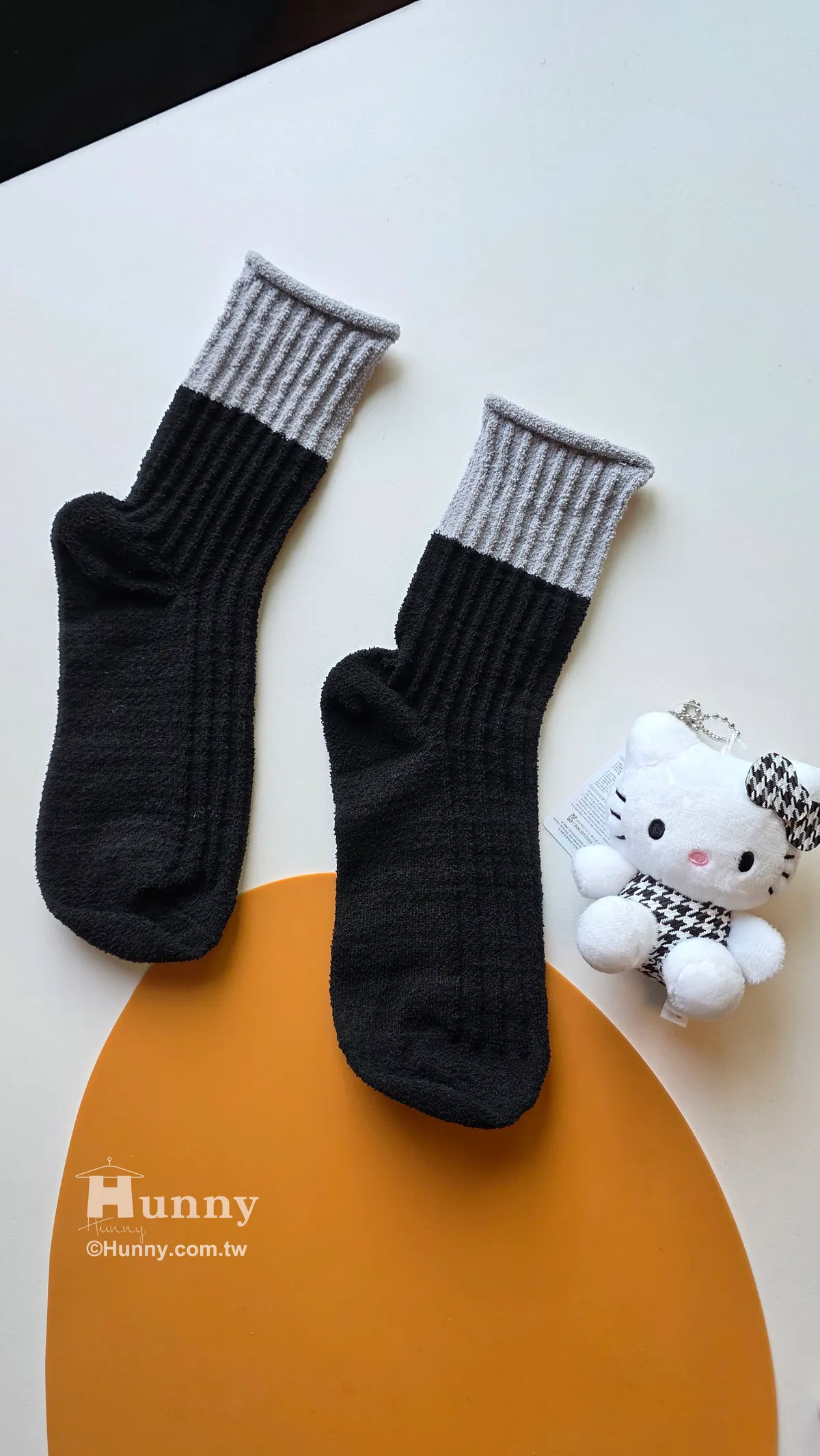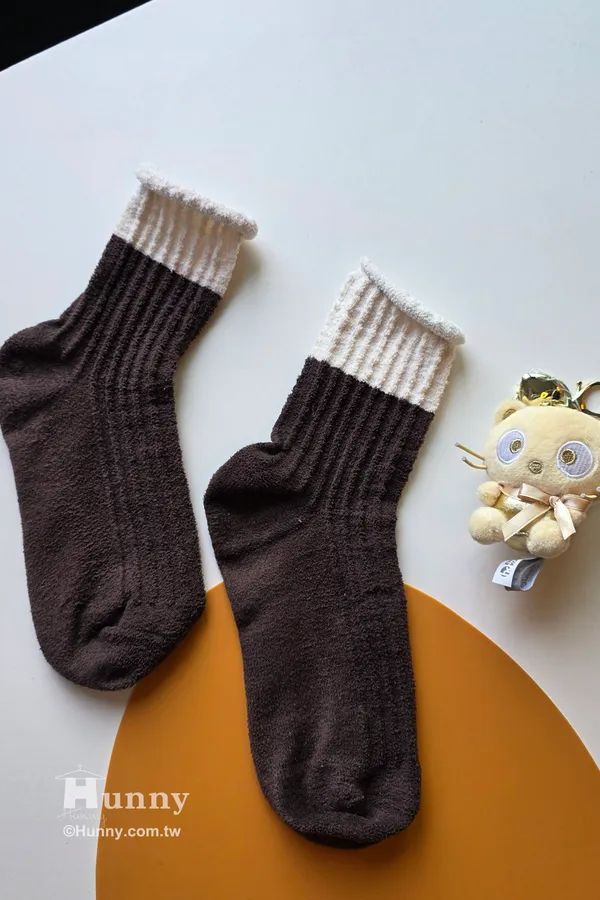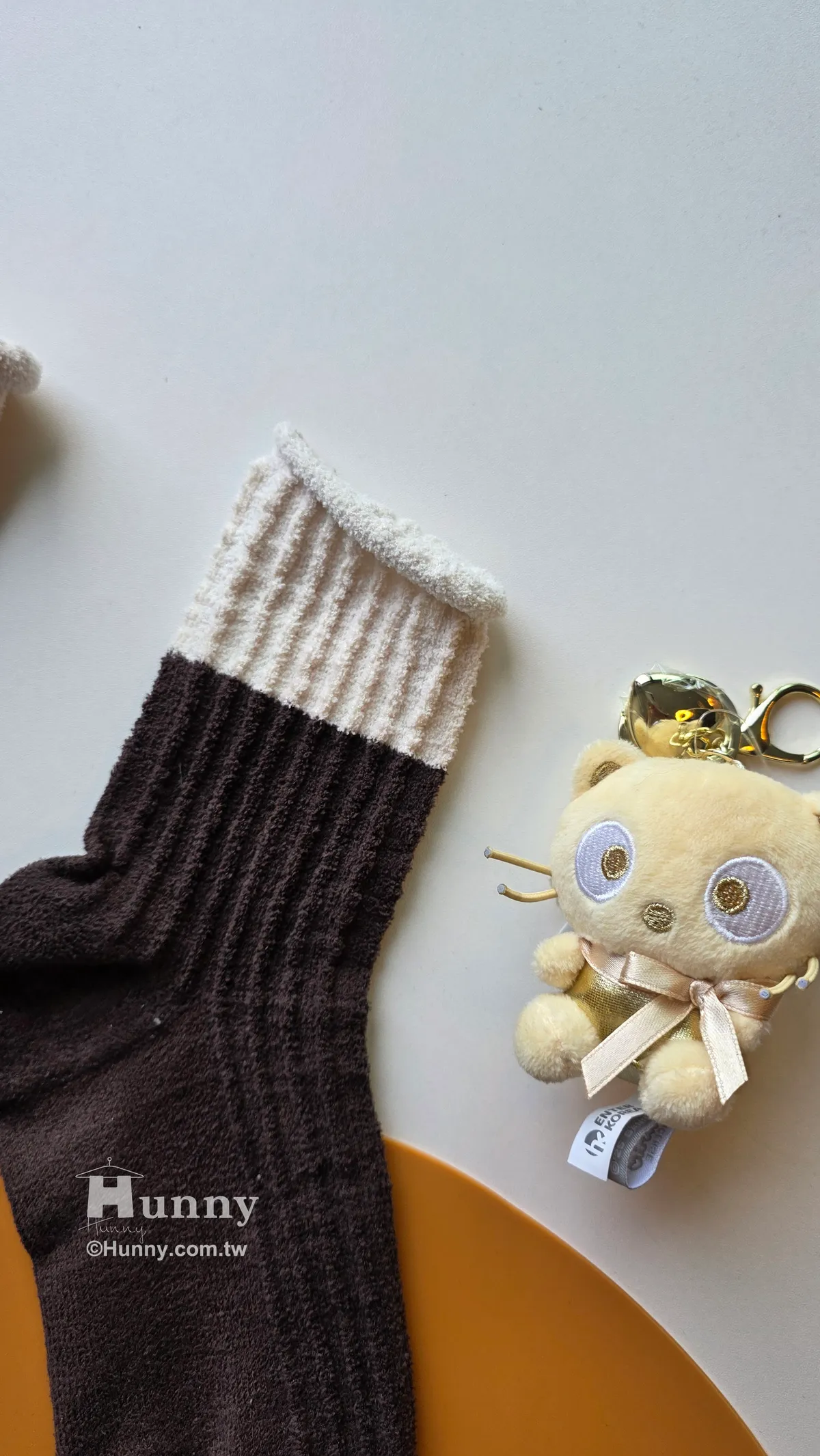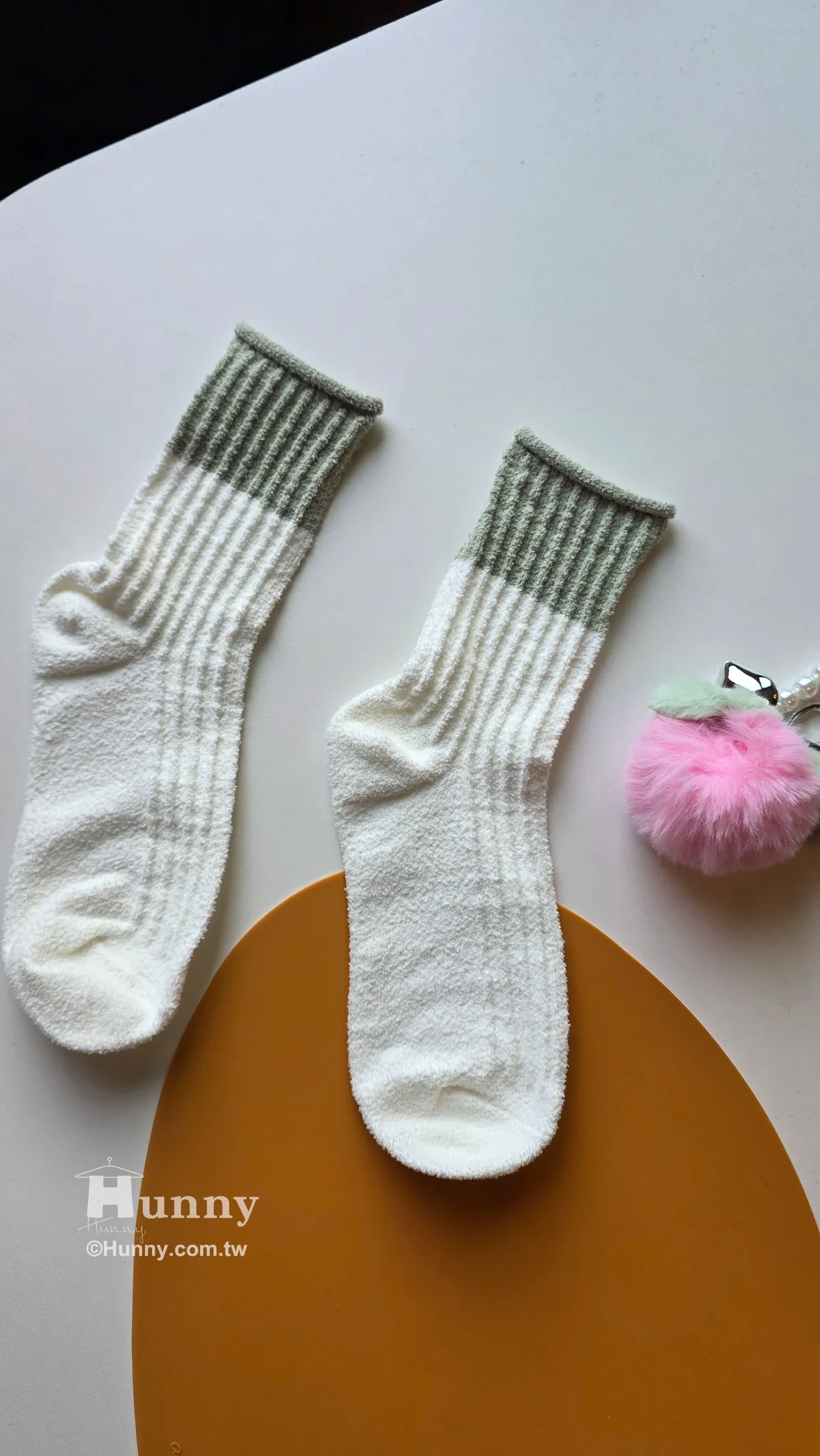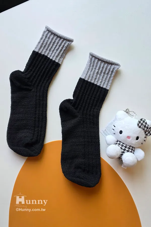 A752025 甜美色調撞色羊絨襪襪 黑/咖/藍/杏/綠