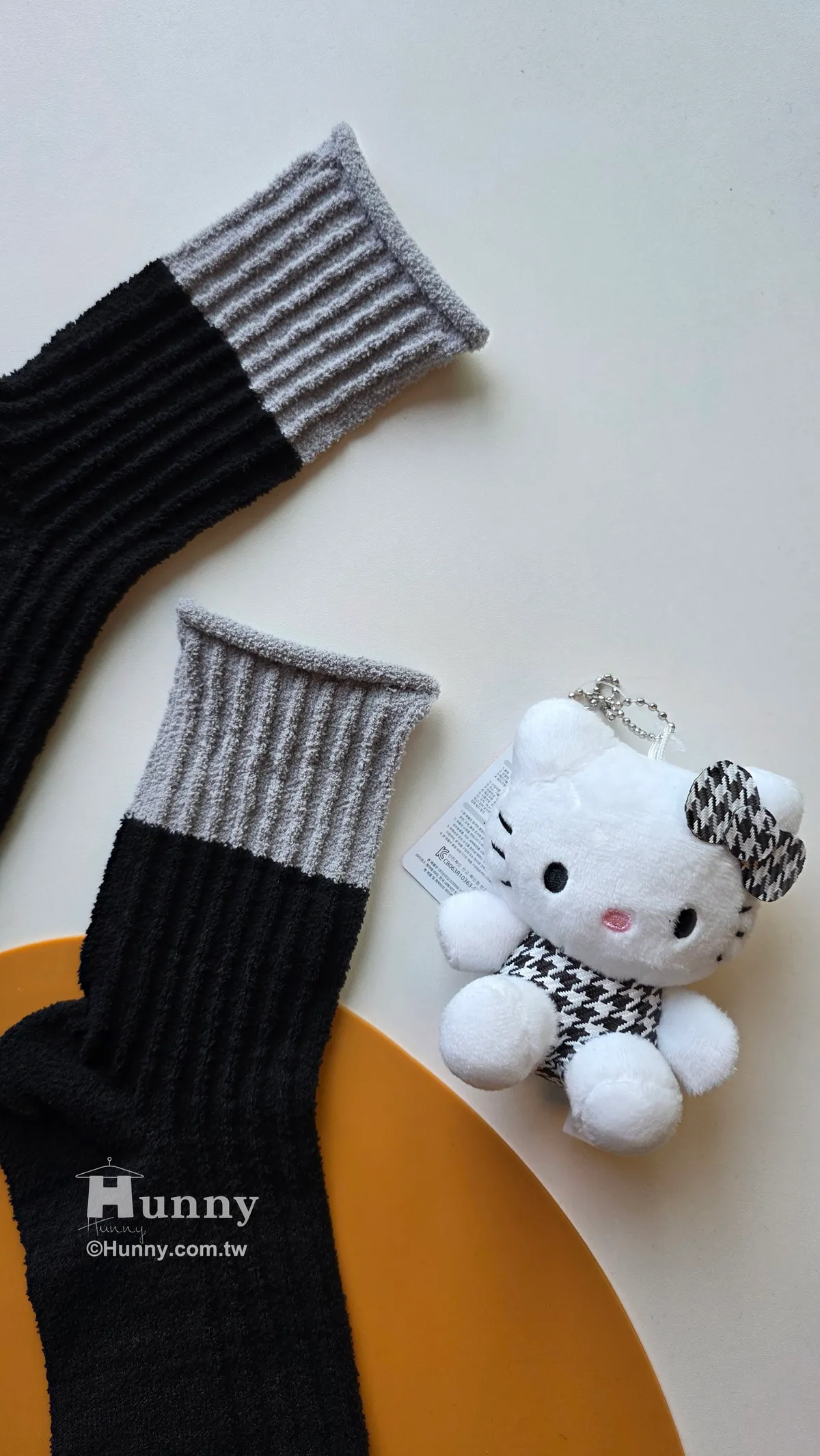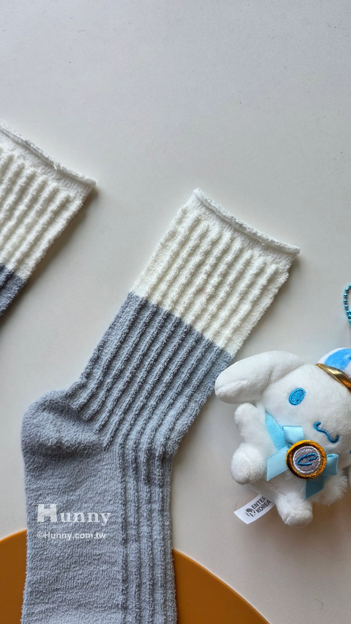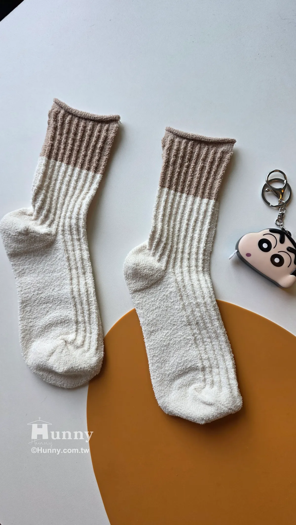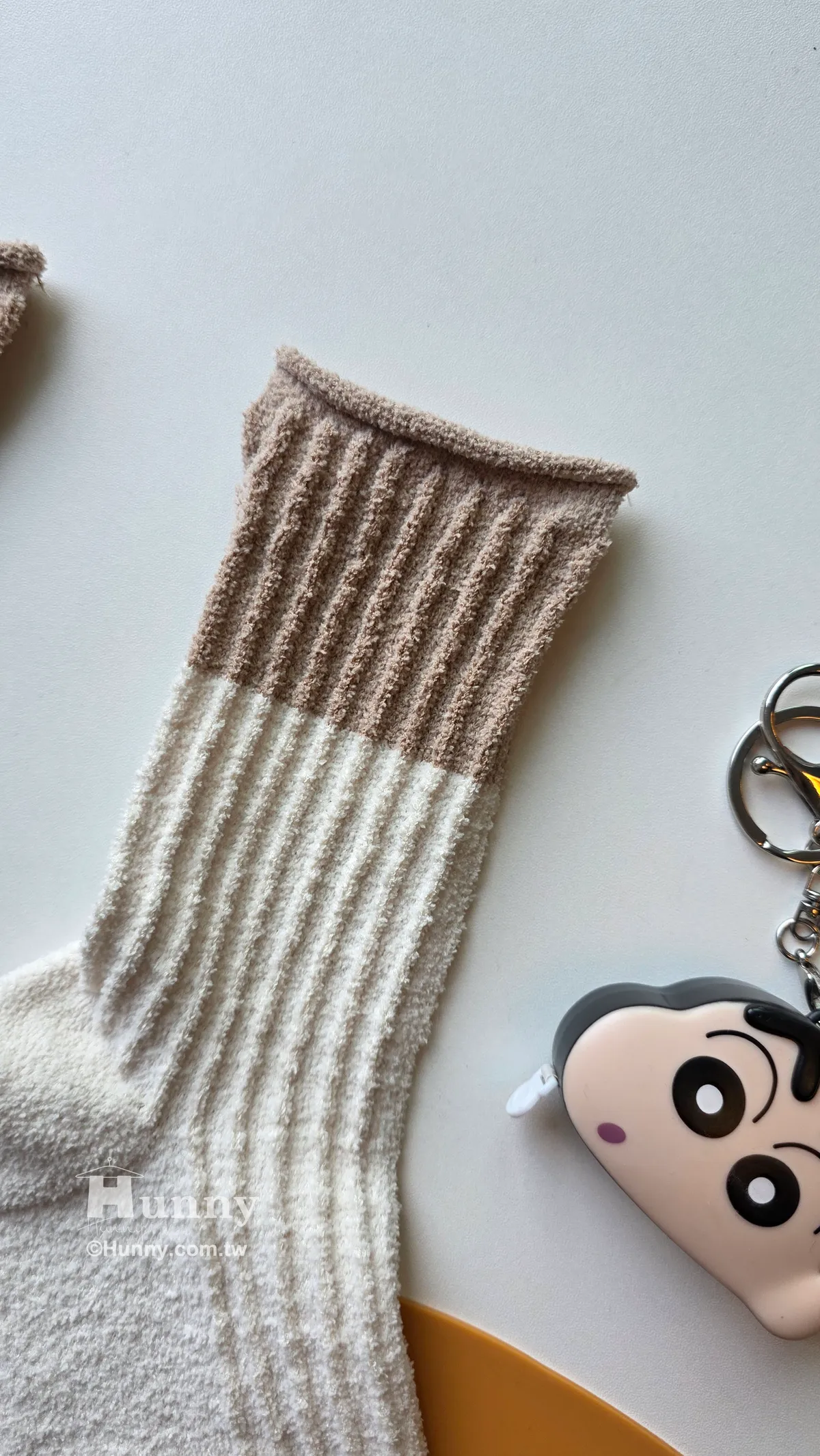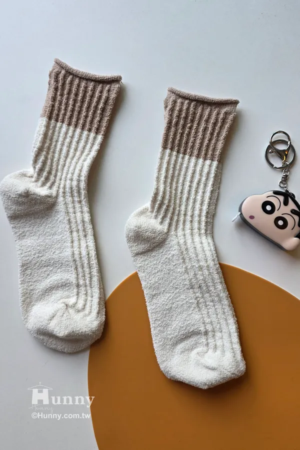 A752025 甜美色調撞色羊絨襪襪 黑/咖/藍/杏/綠