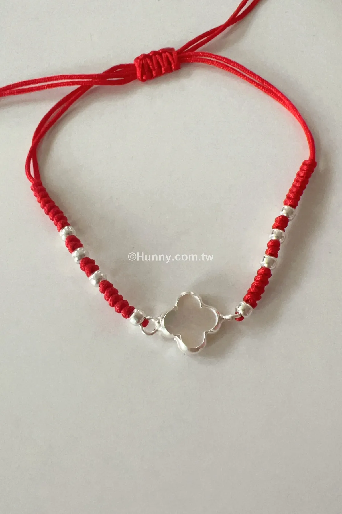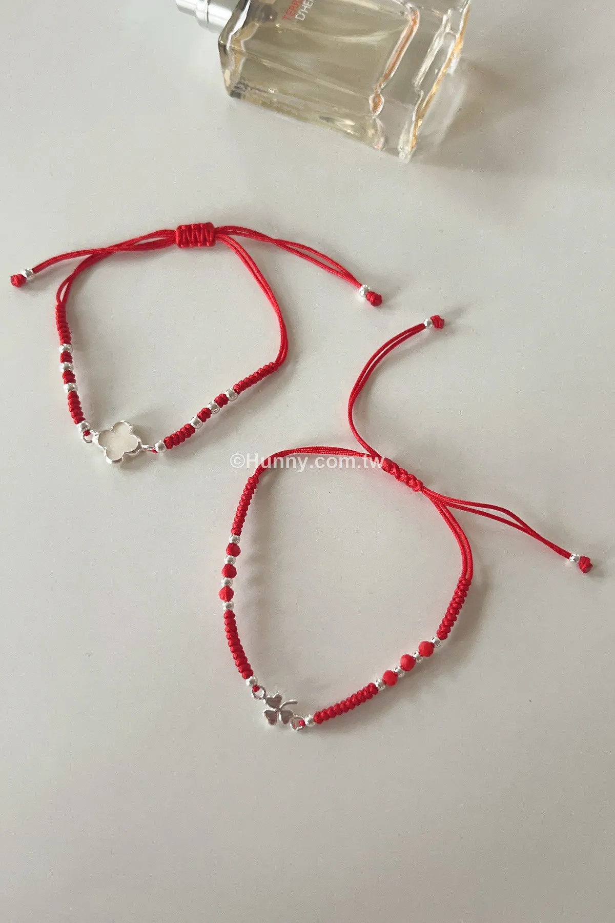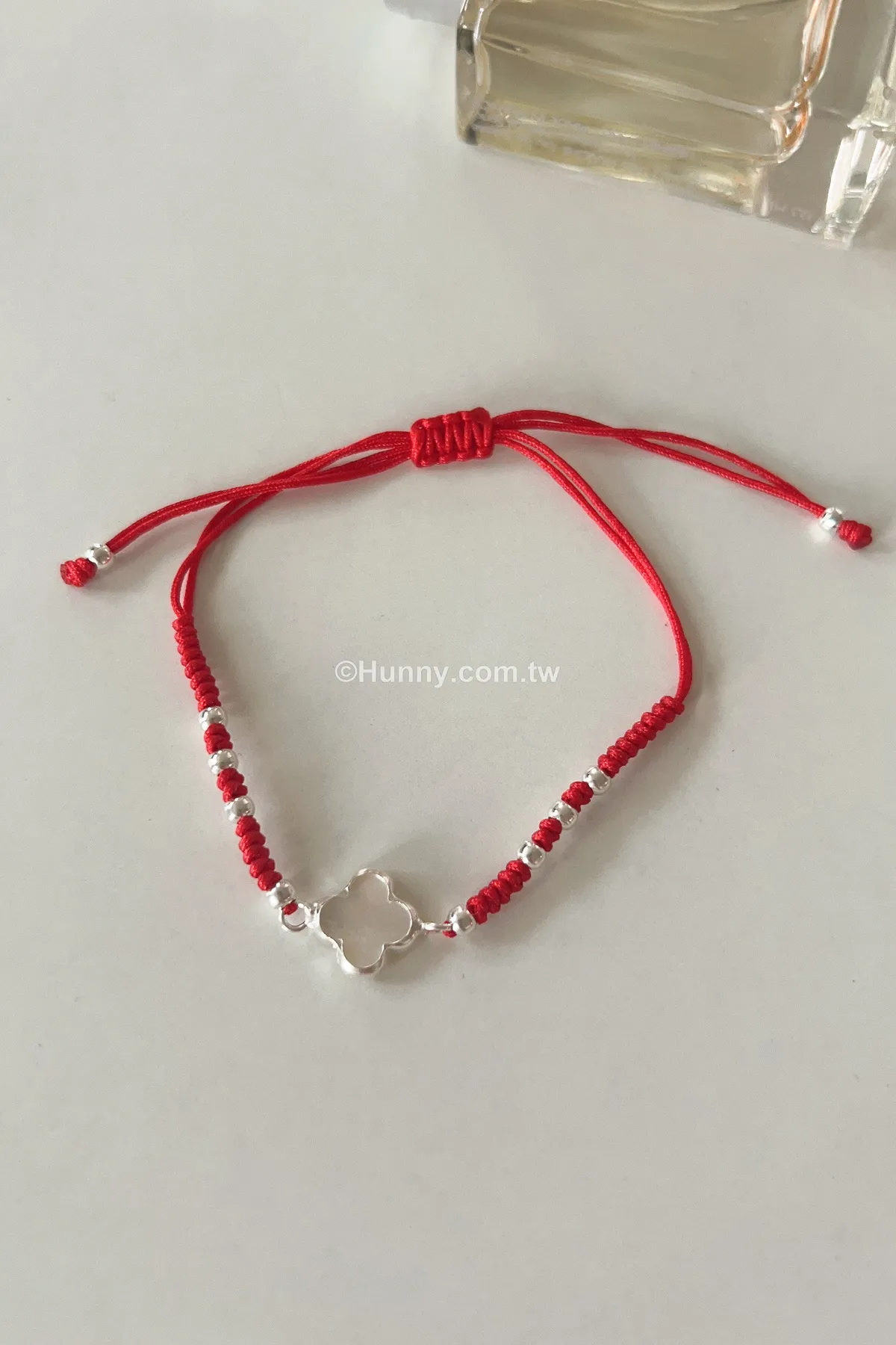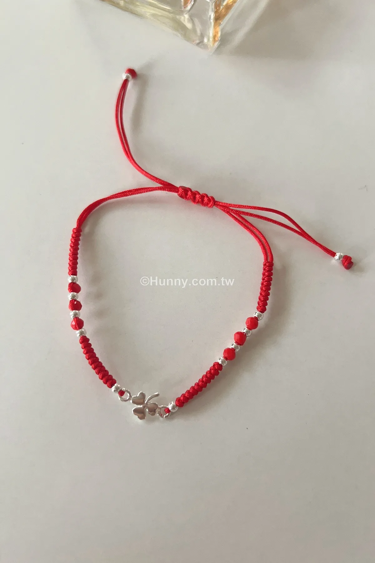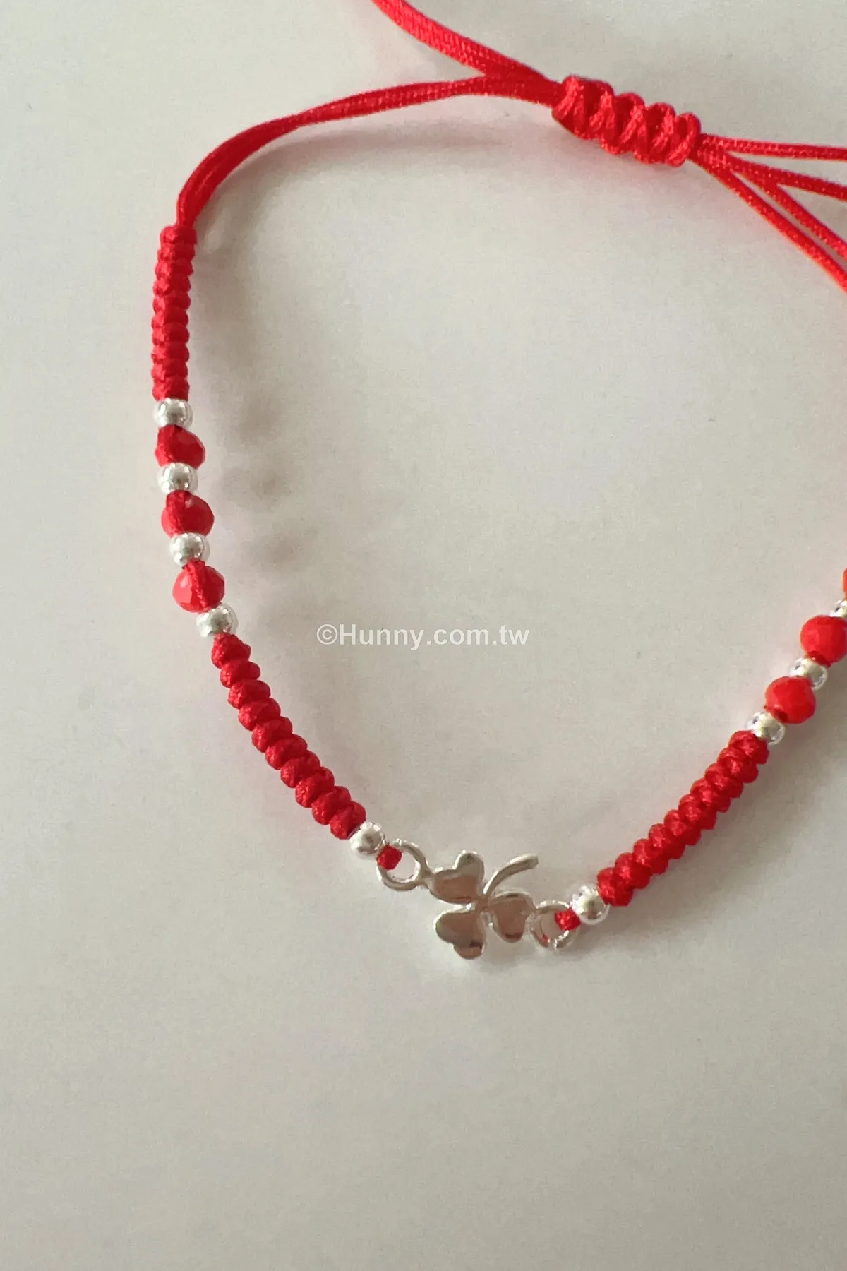 獨家!純銀925幸運草銀珠紅繩手鍊 幸運草