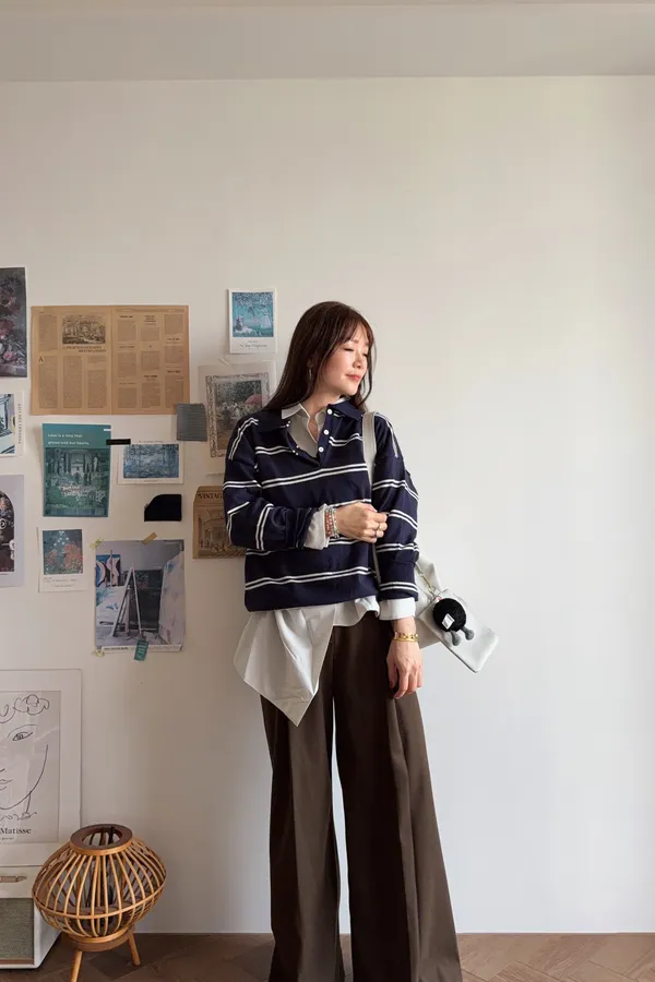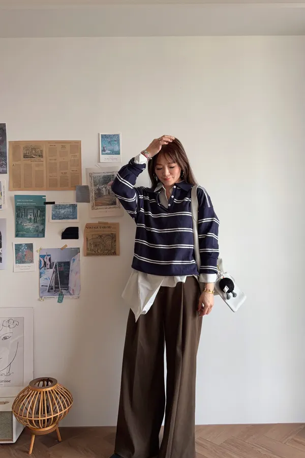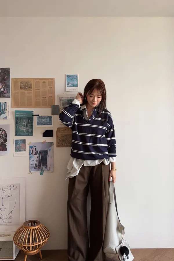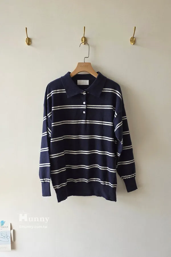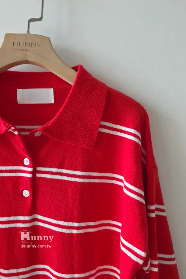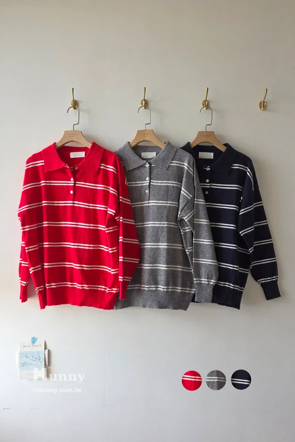 B10203 Paris Club條紋POLO毛衣 藍/紅/灰