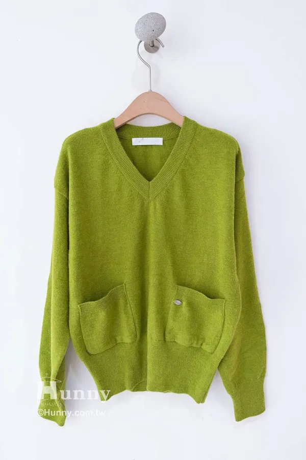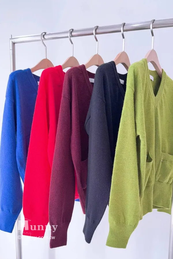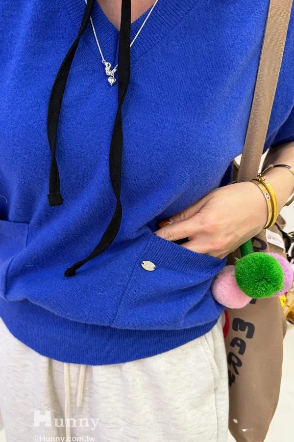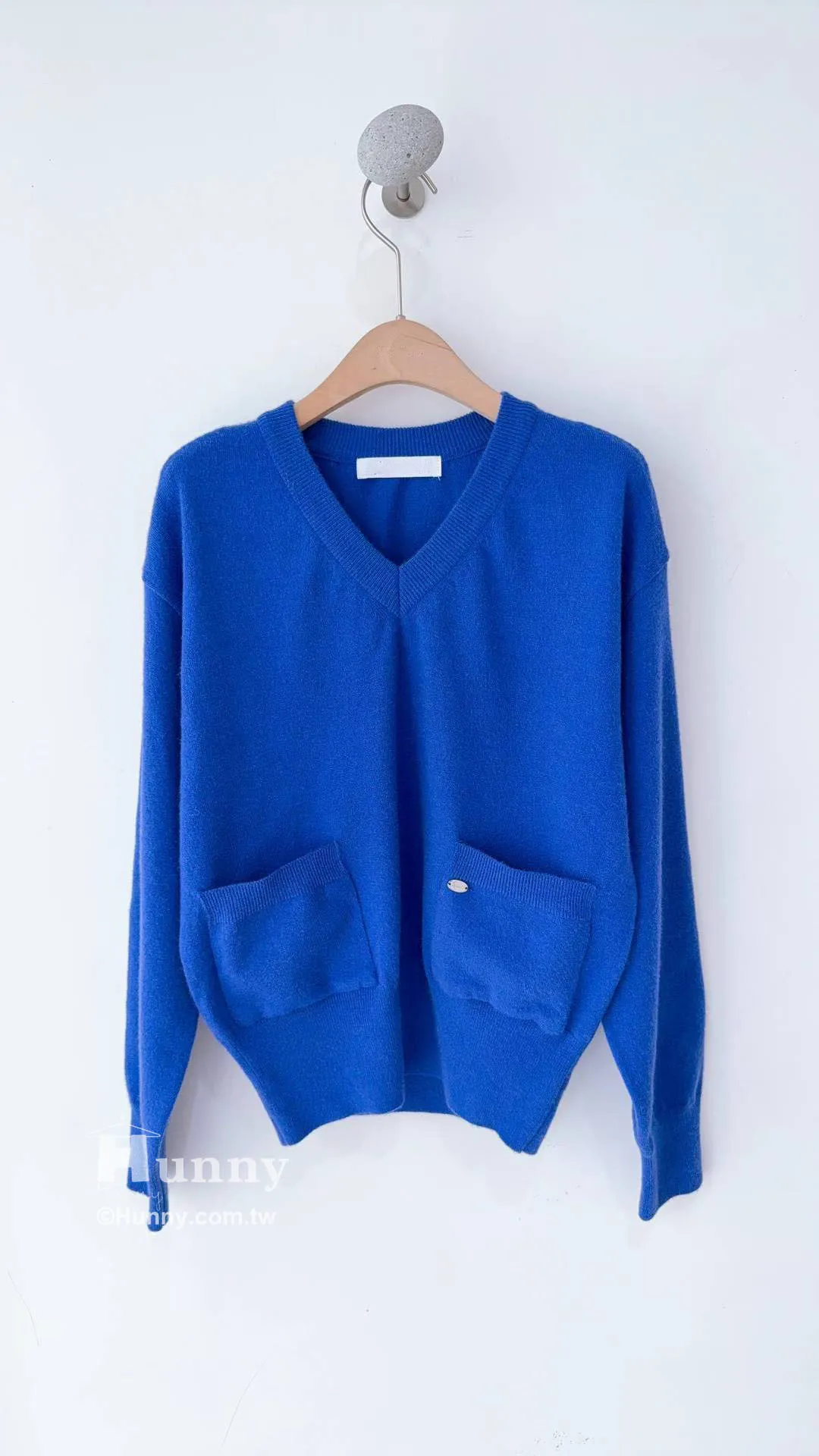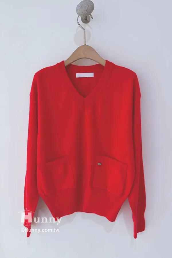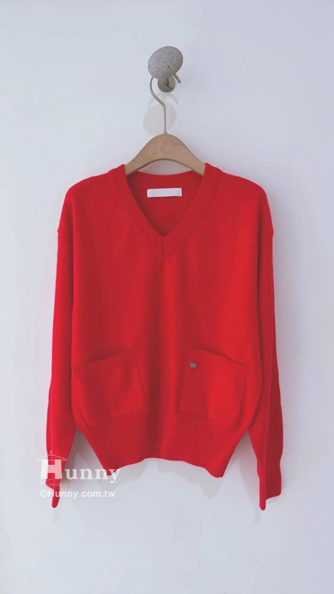 B12813 金牌大V領雙口袋60%羊毛衣 藍/紅 現貨