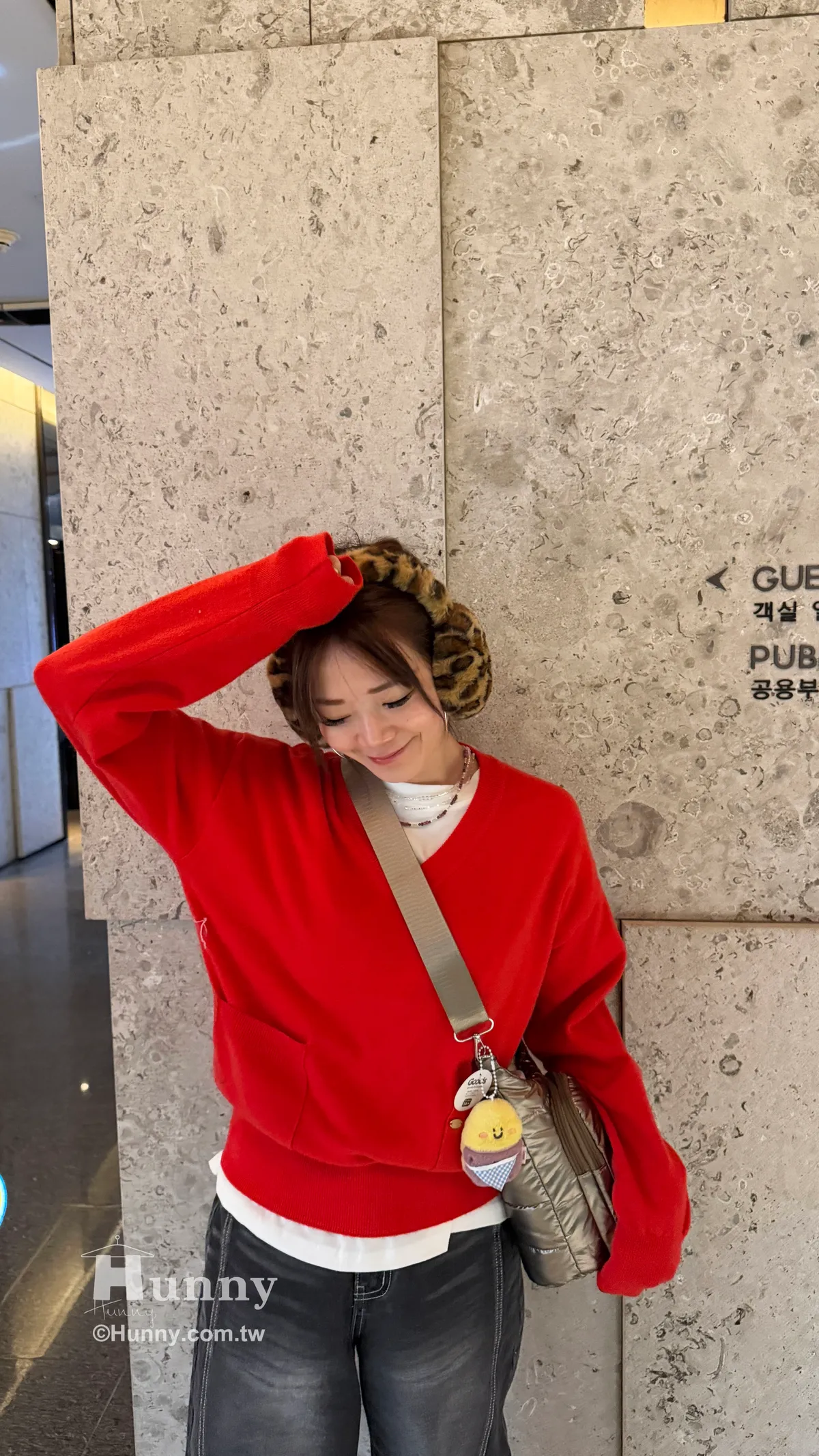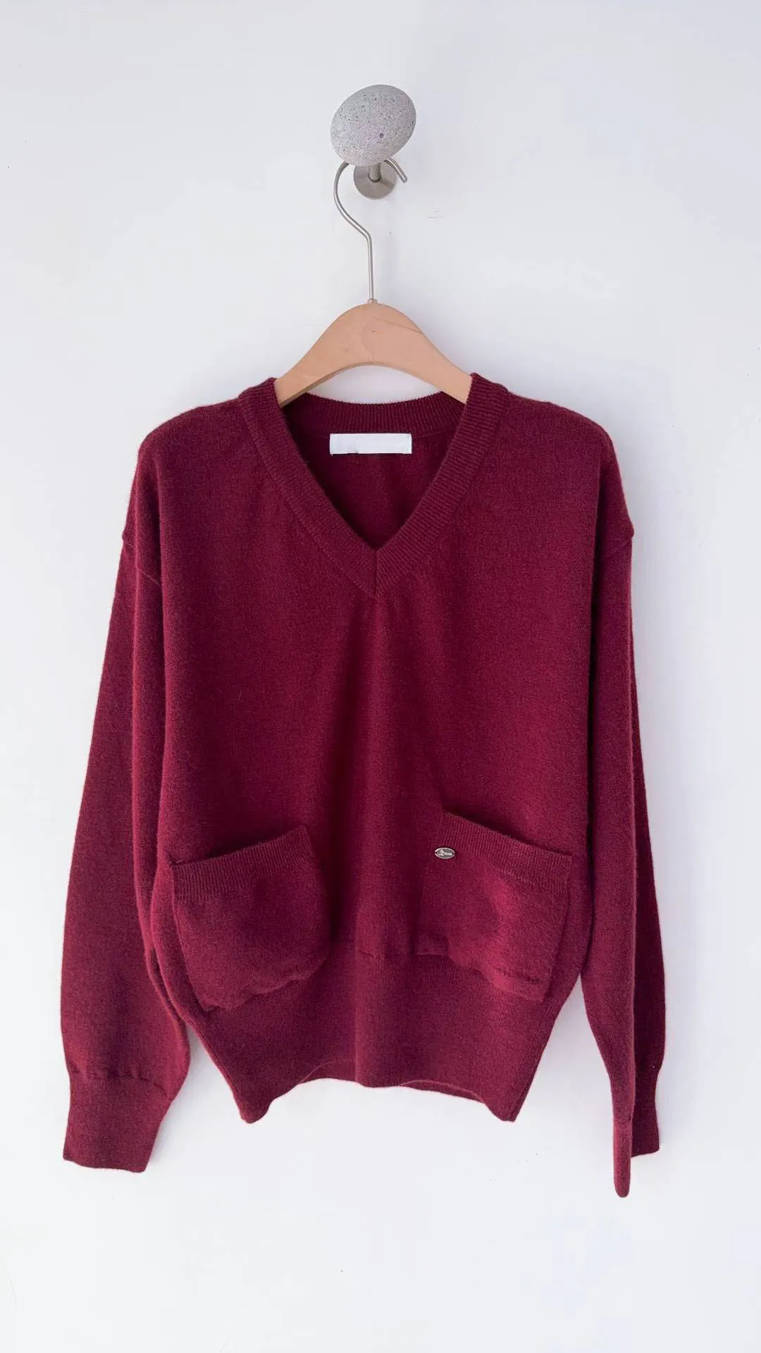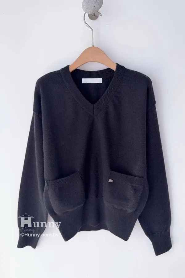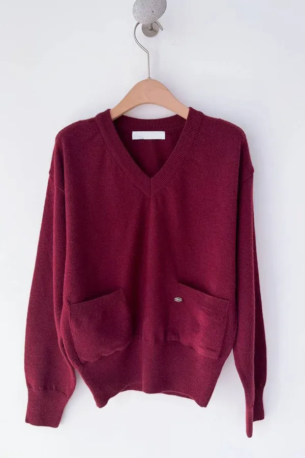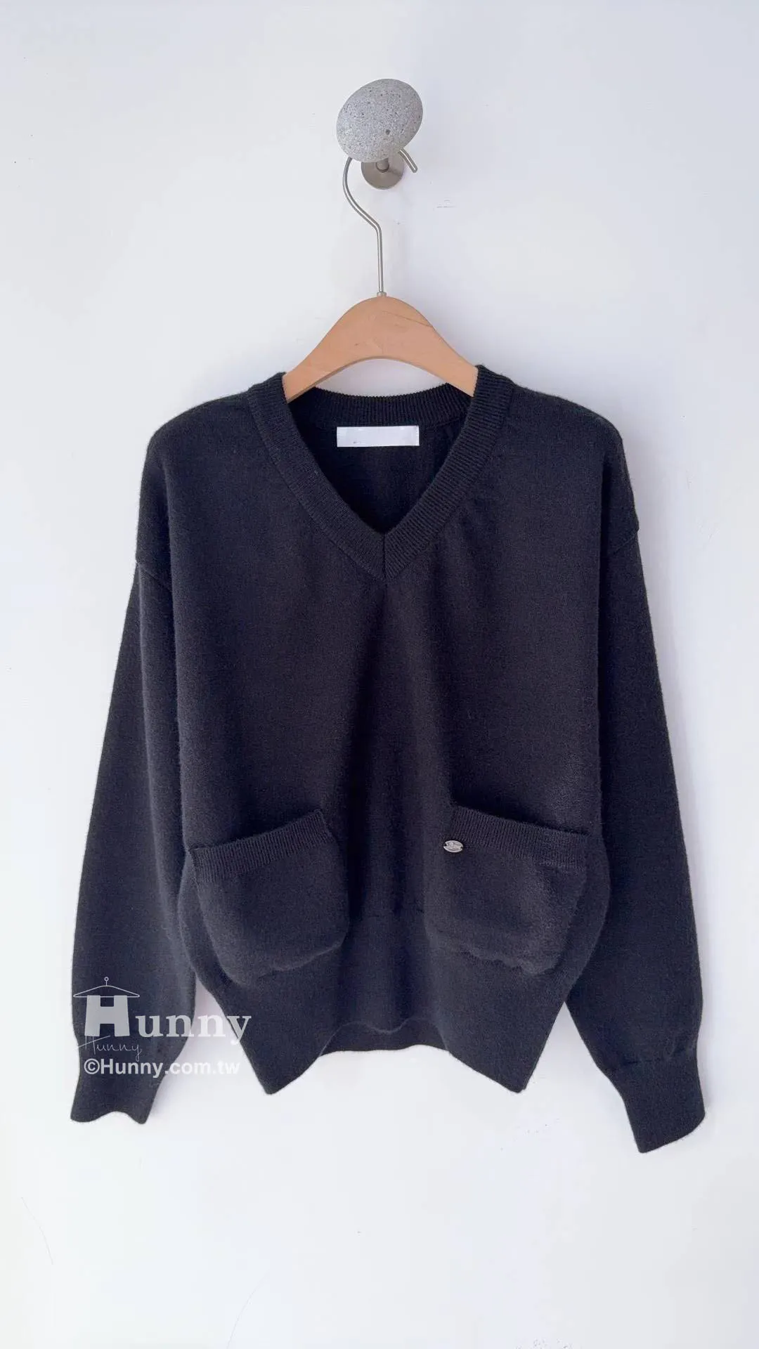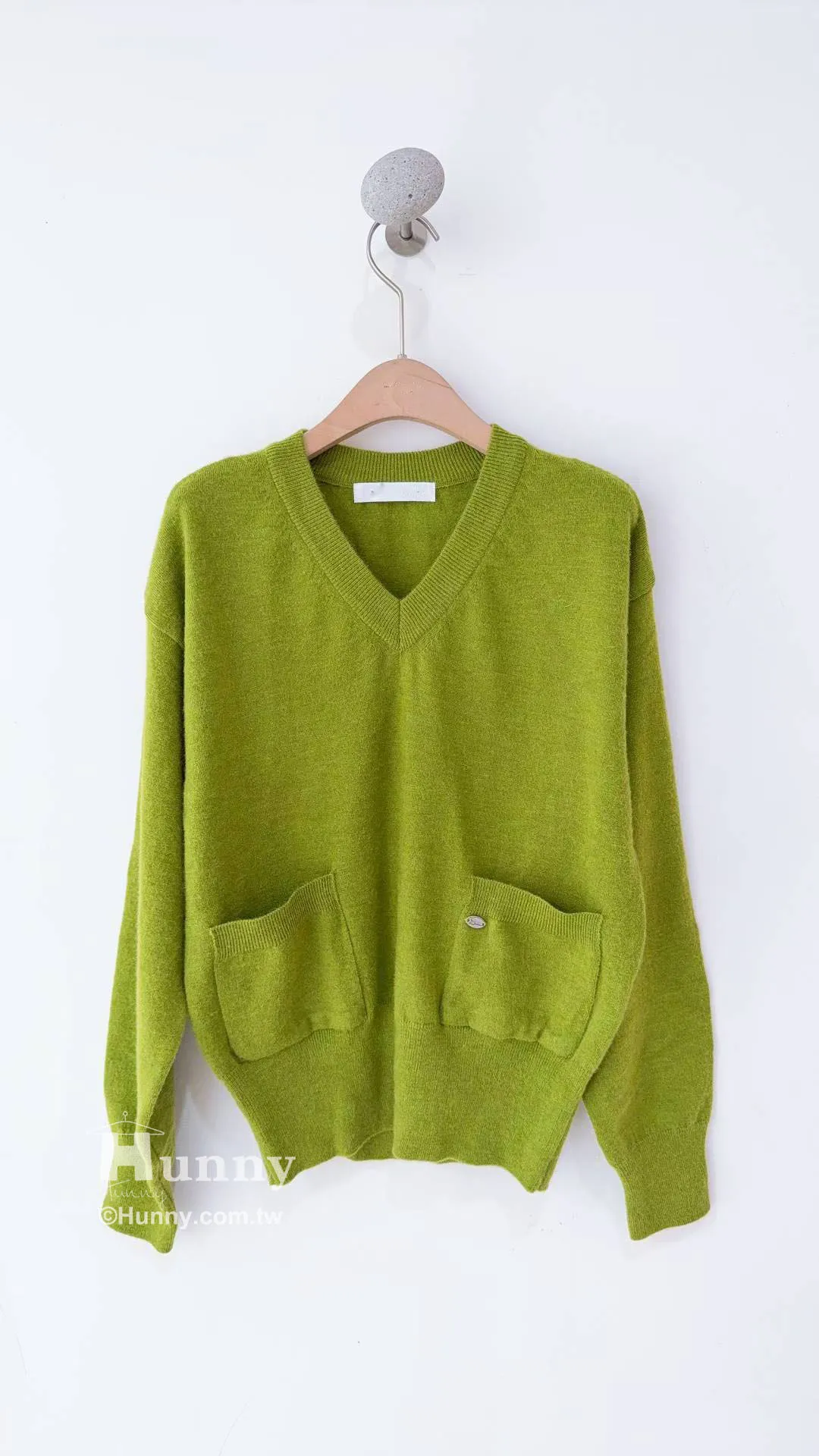 B12813 金牌大V領雙口袋60%羊毛衣 藍/紅 現貨