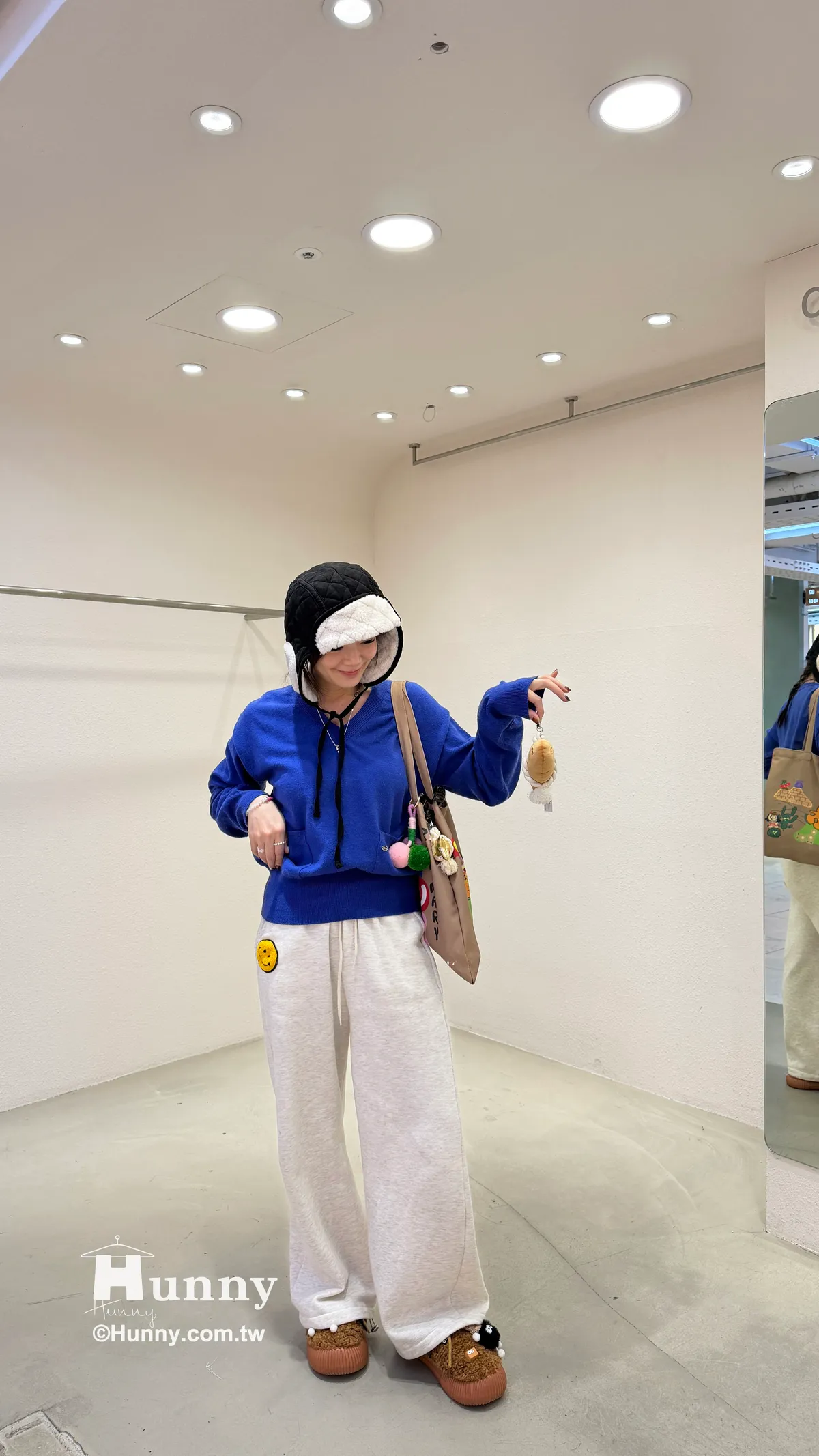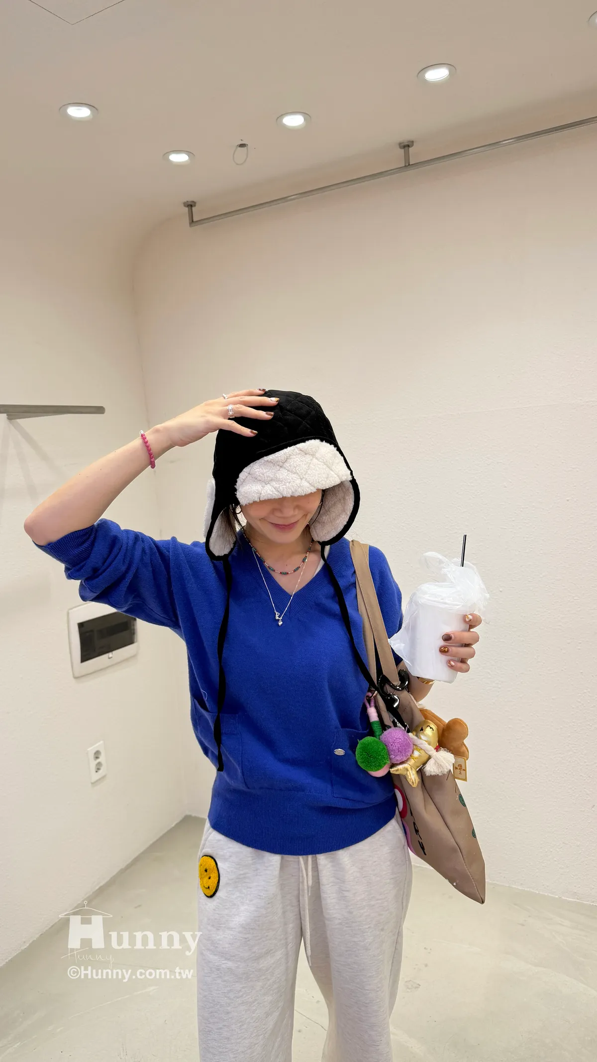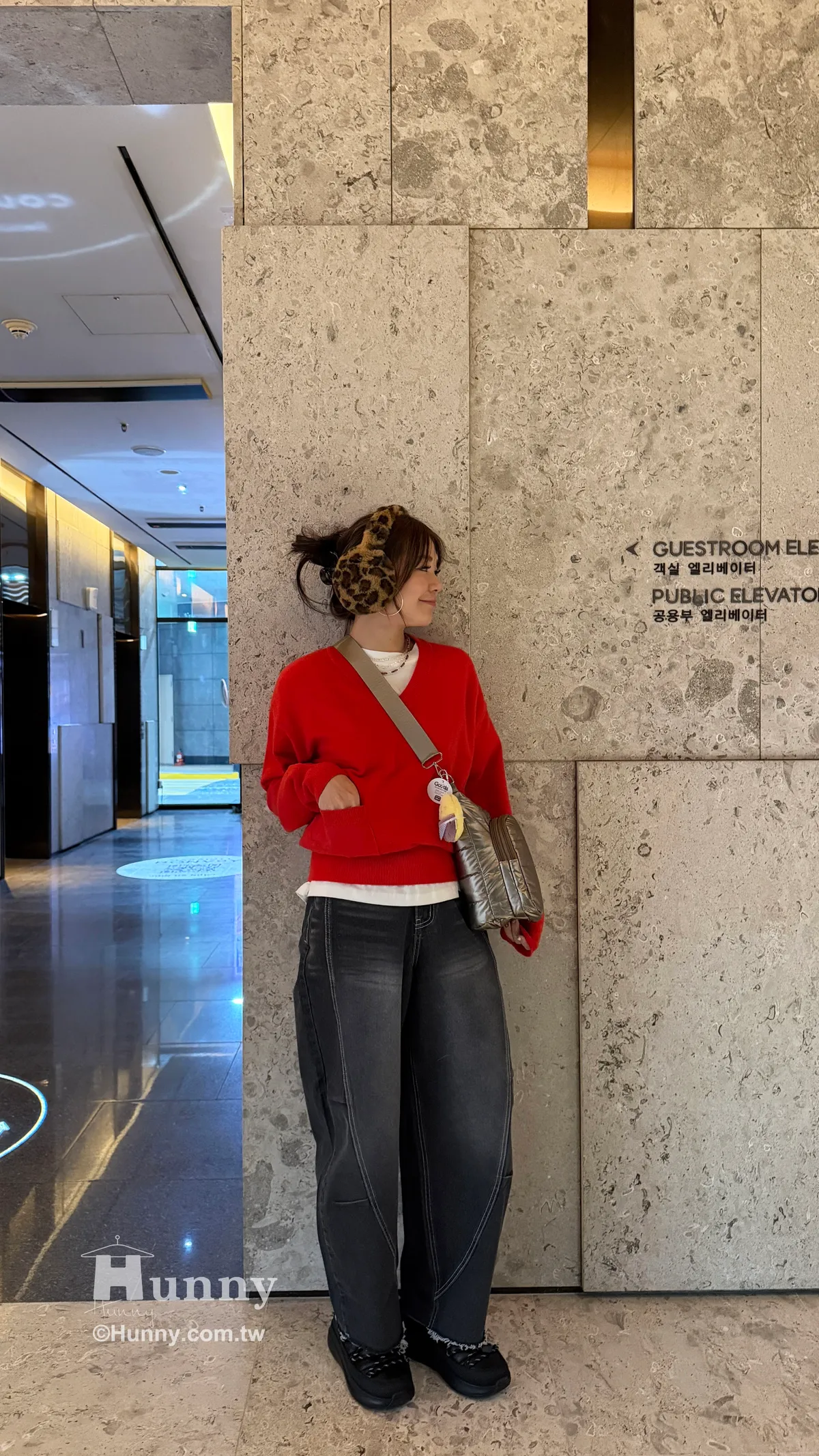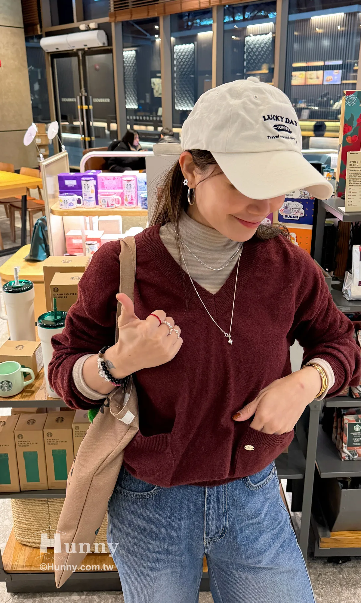 B12813 金牌大V領雙口袋60%羊毛衣 藍/紅 現貨