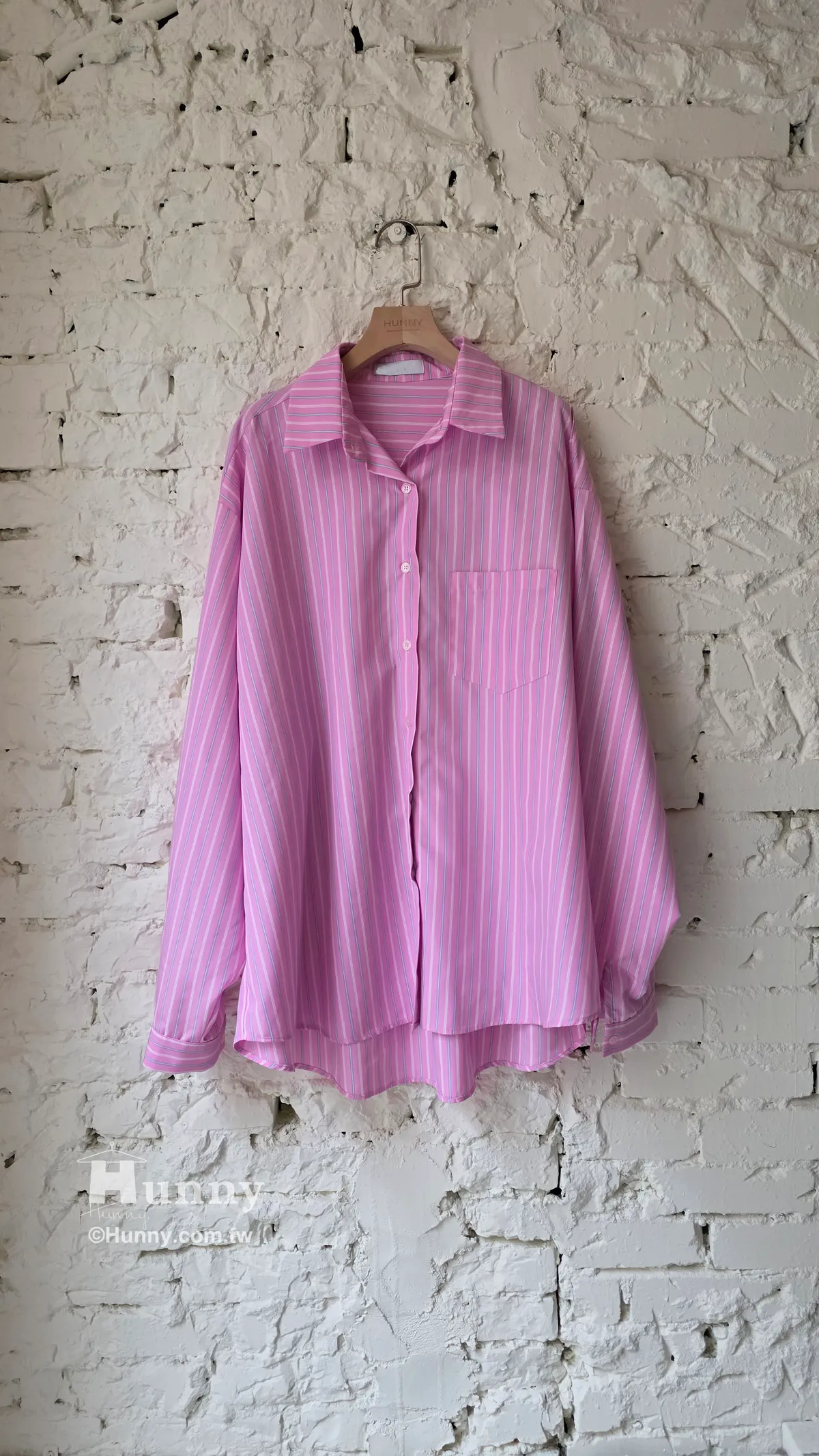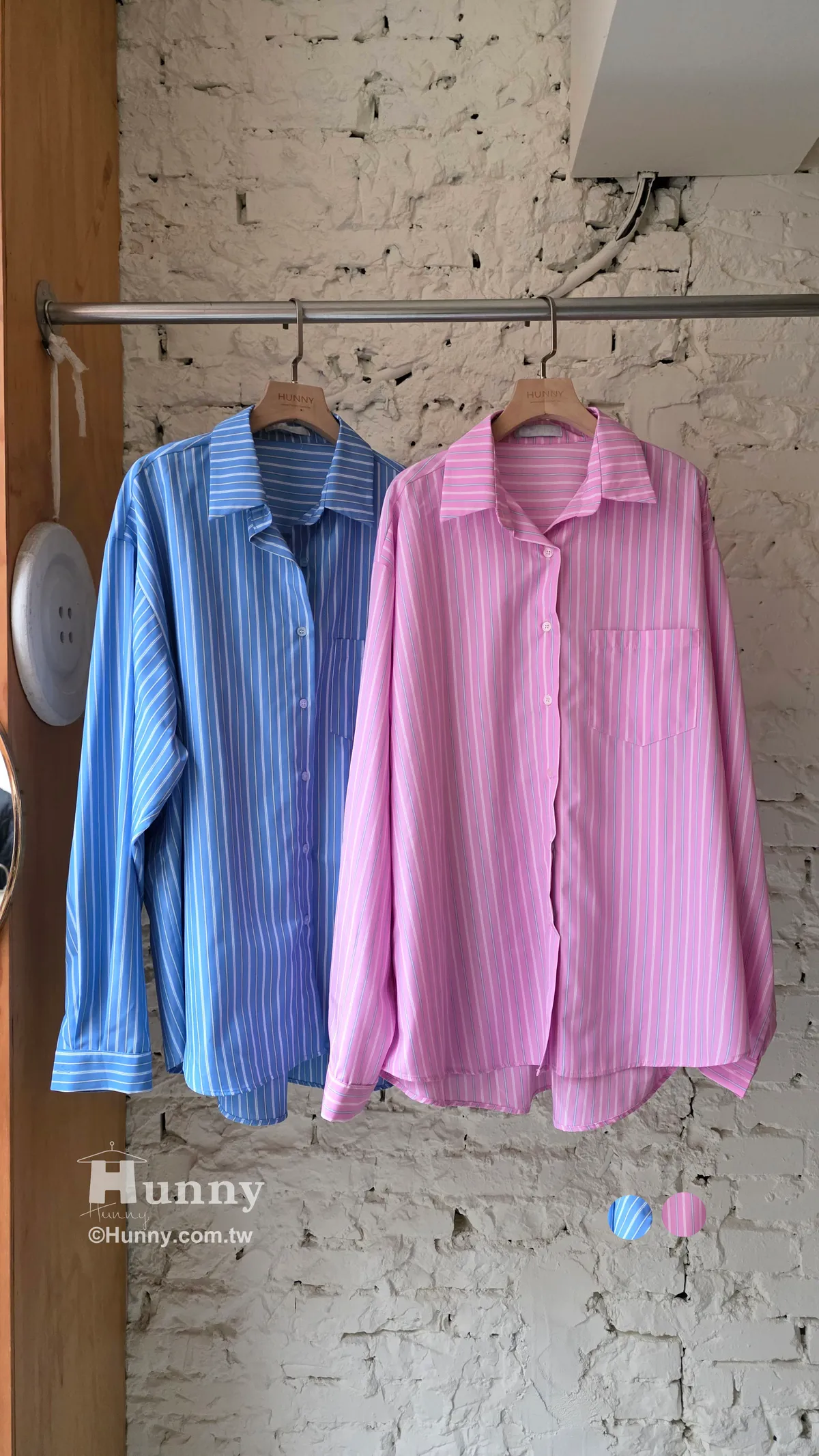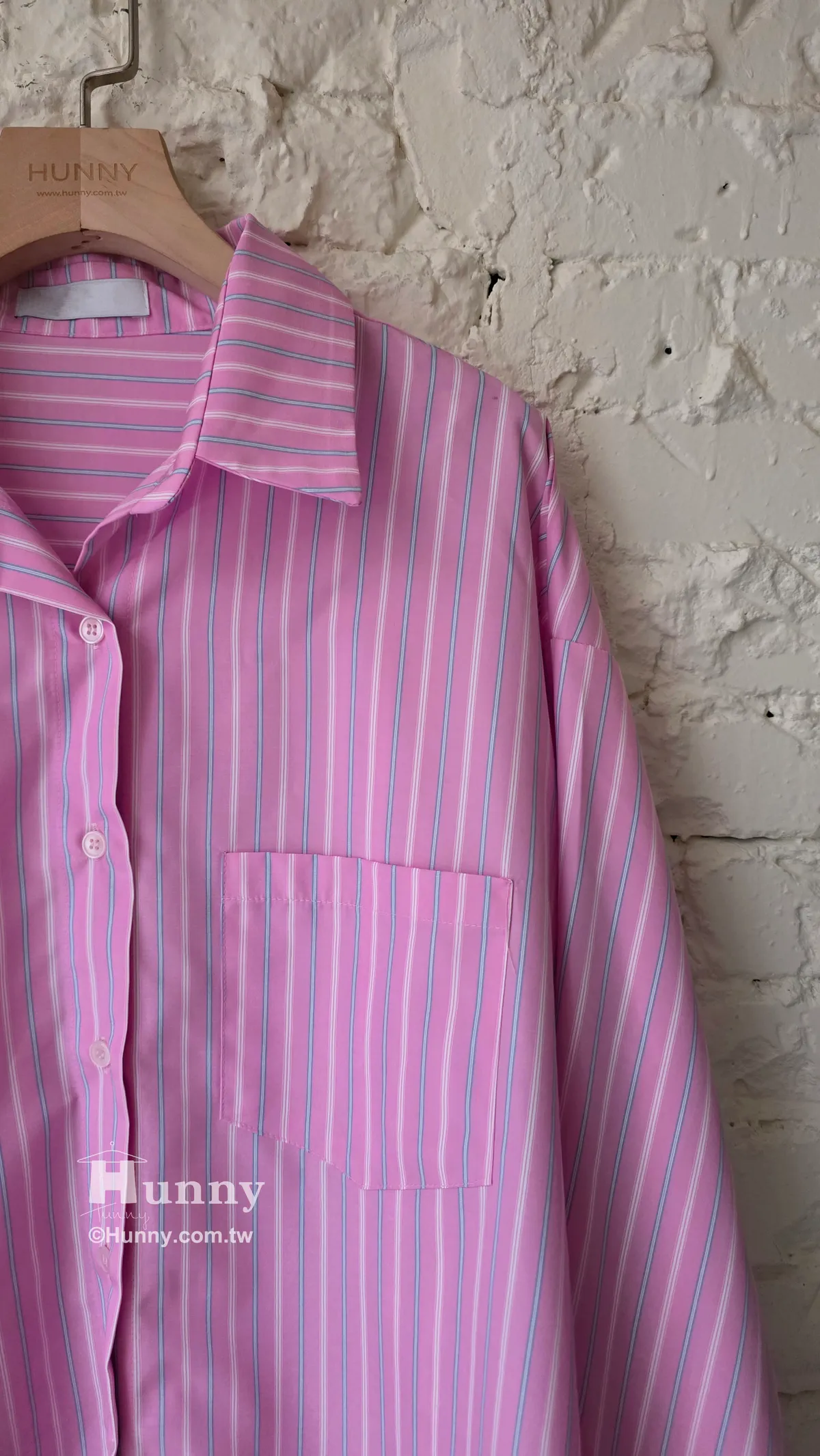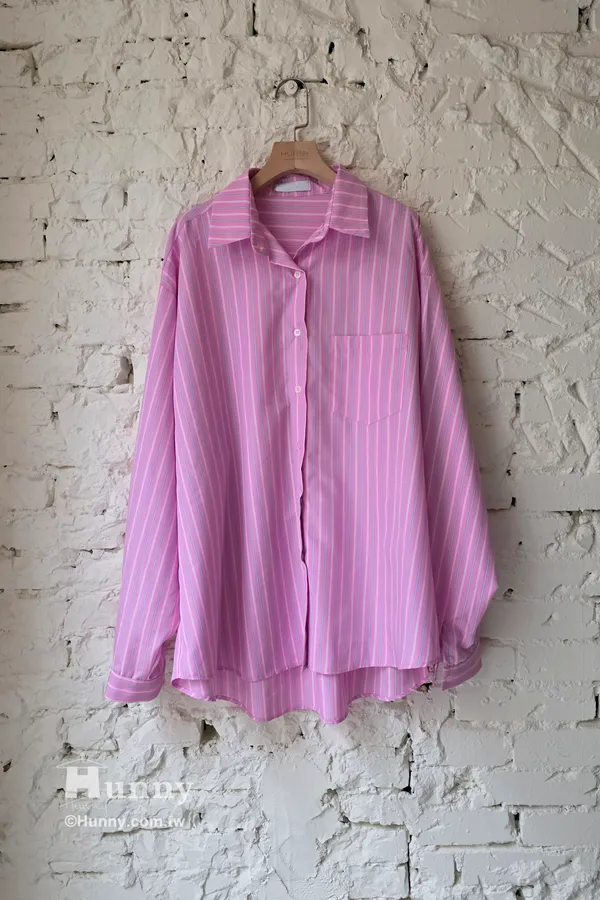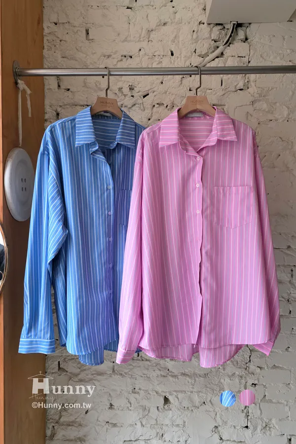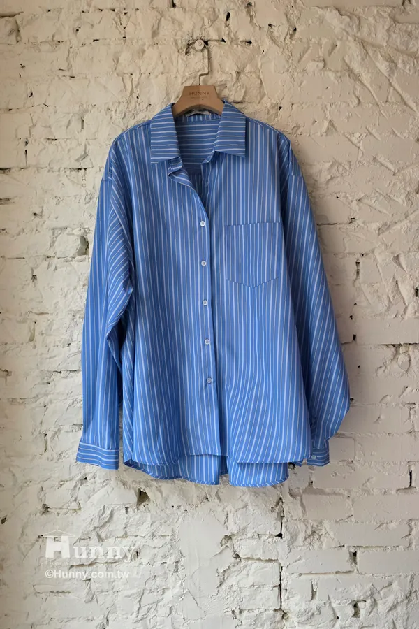 B31127 搶眼直條紋單口袋襯 藍/粉