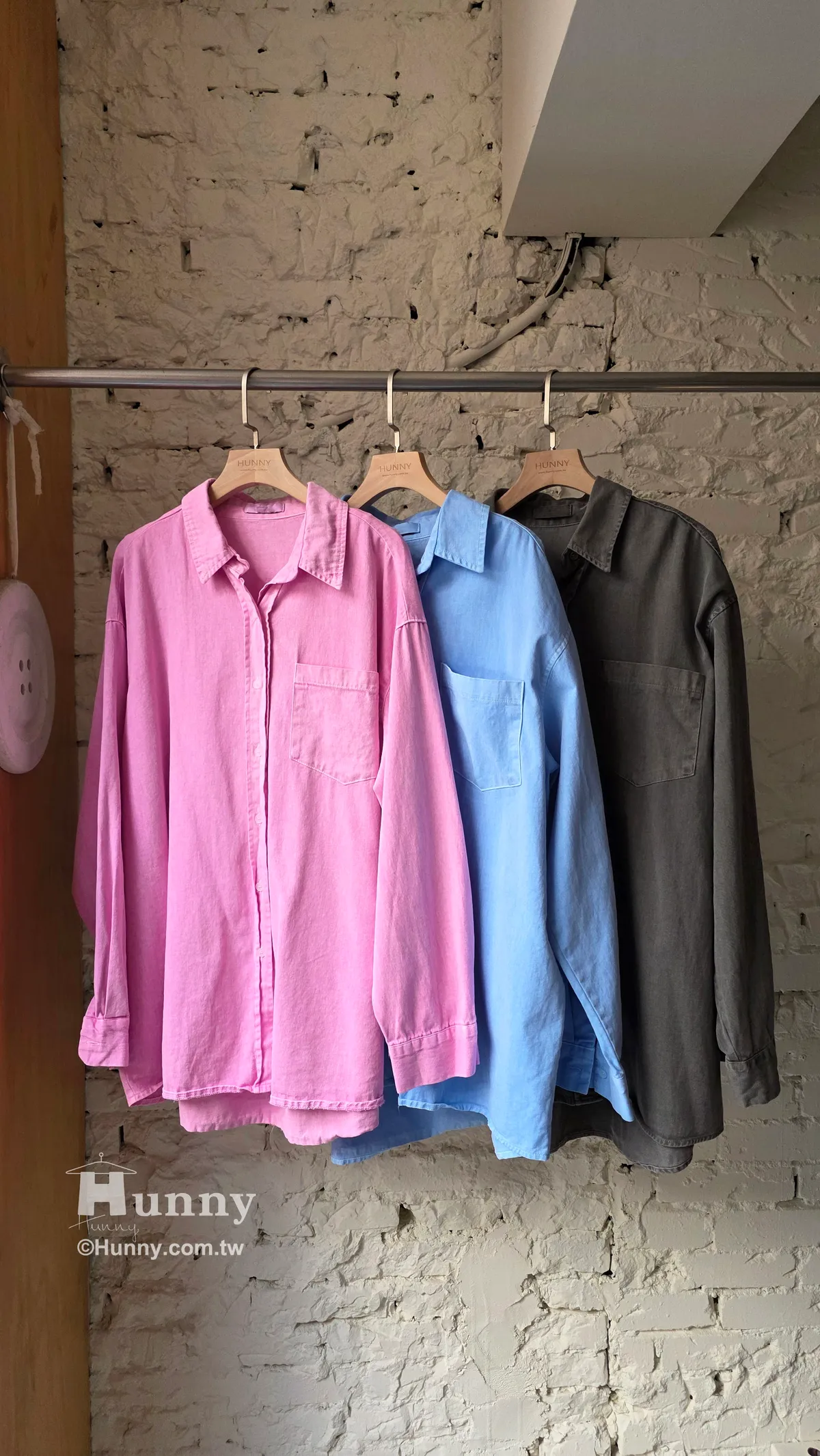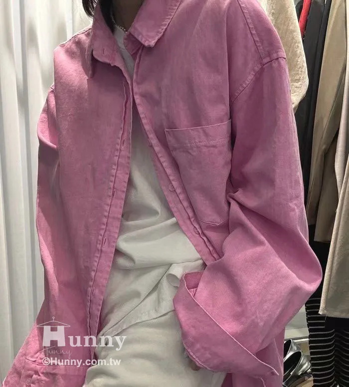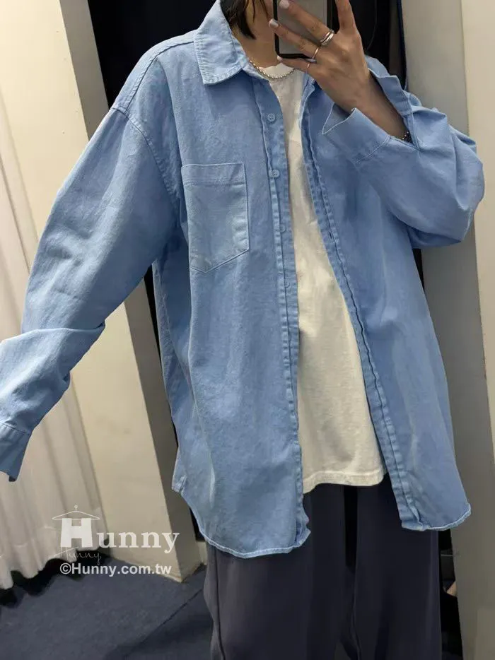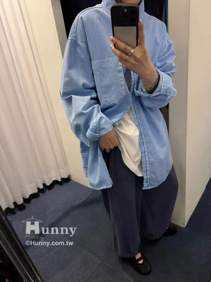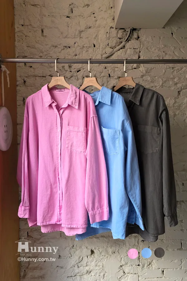 B31161 自帶焦點單口袋水洗牛仔襯外 黑/藍/粉