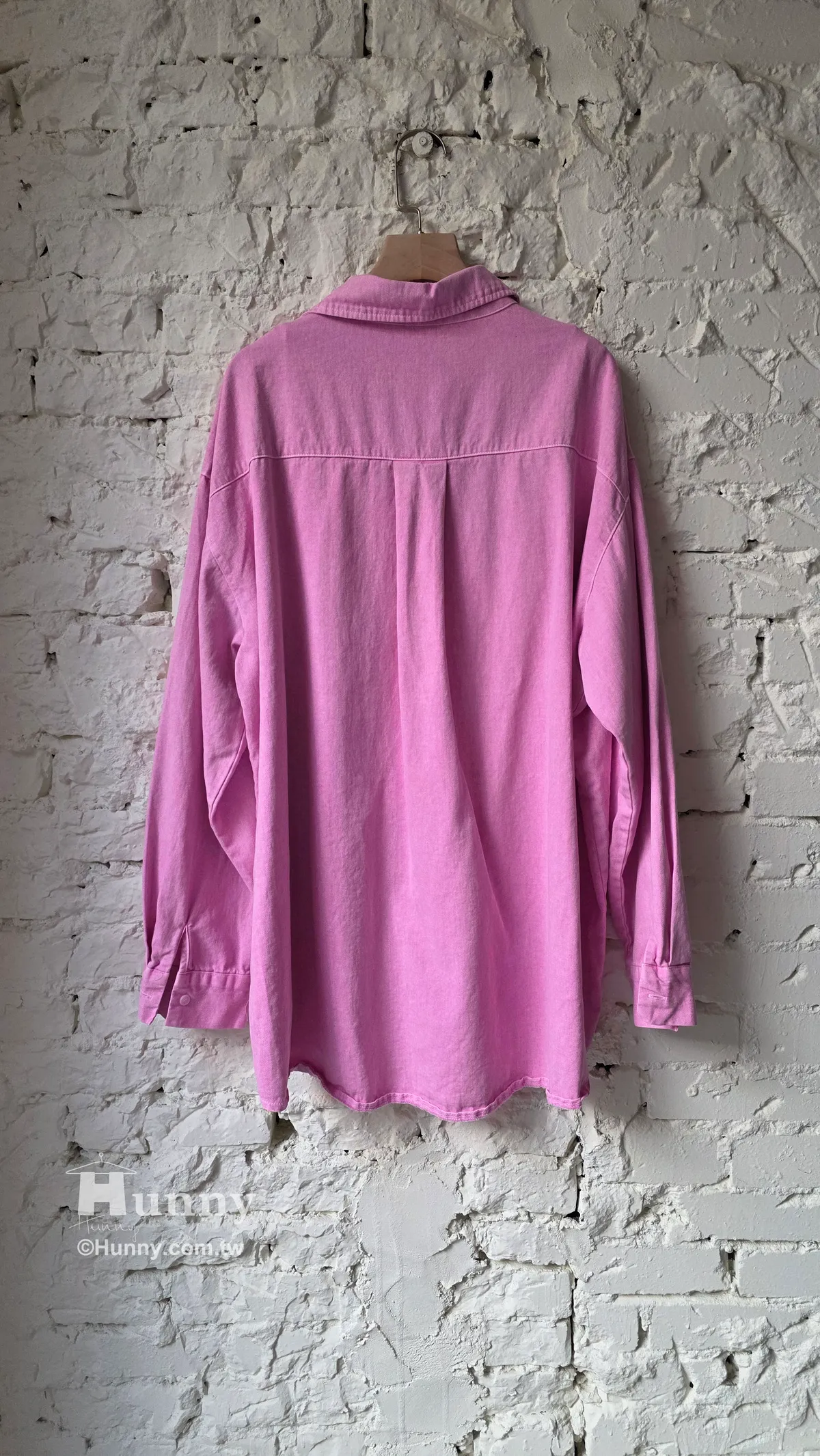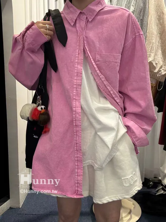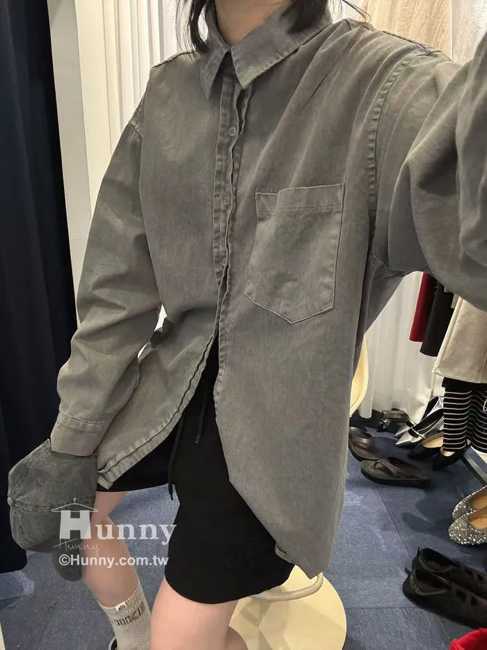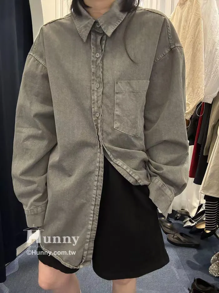 B31161 自帶焦點單口袋水洗牛仔襯外 黑/藍/粉