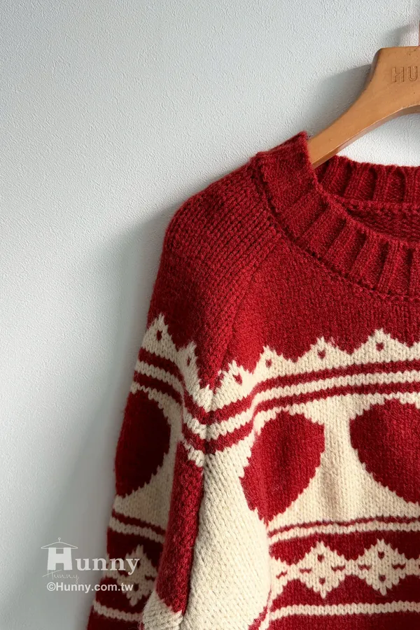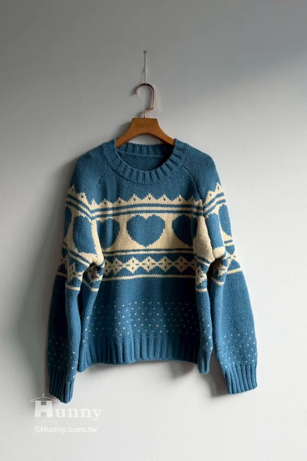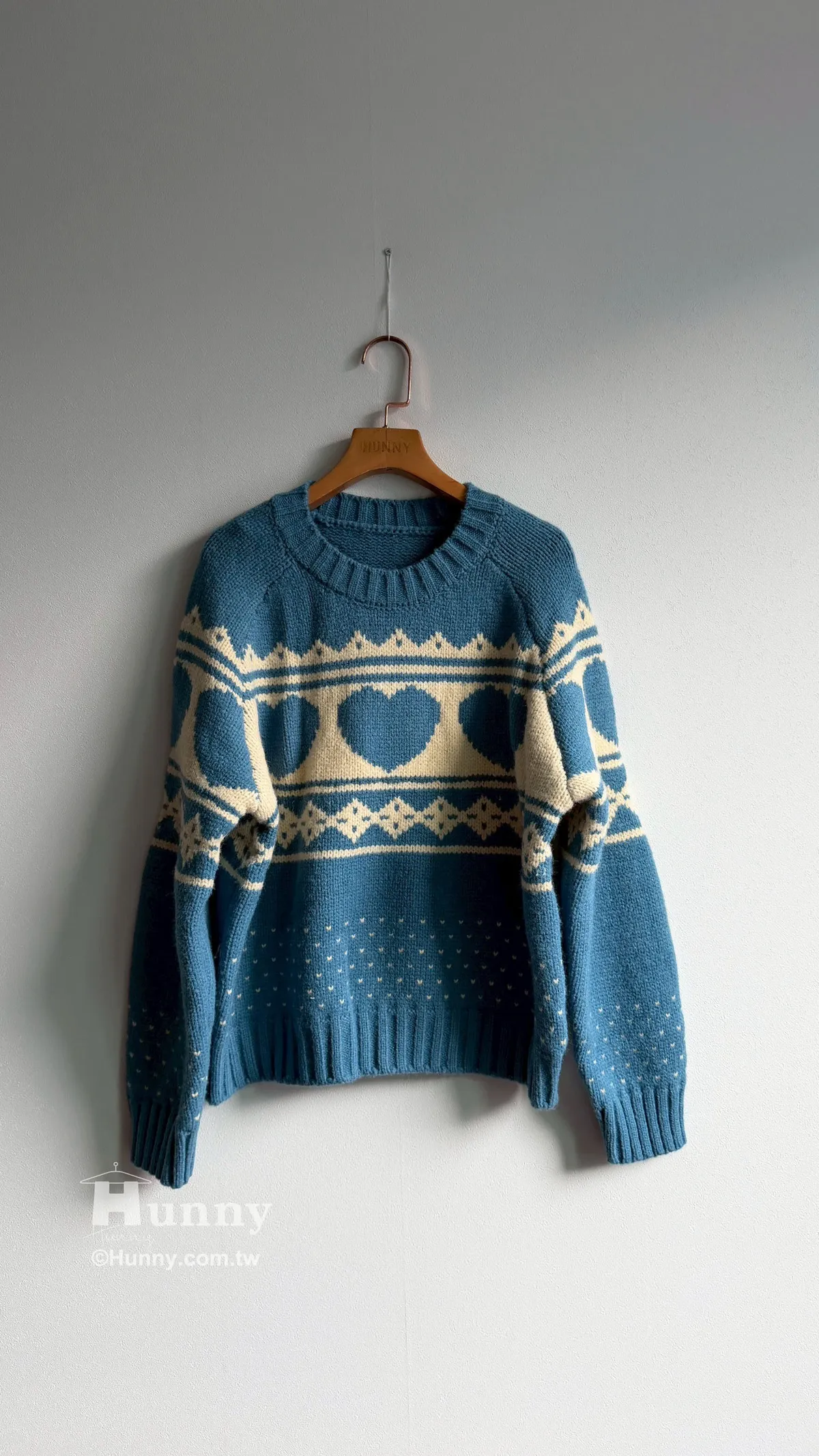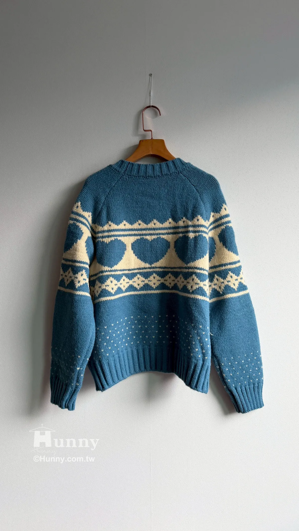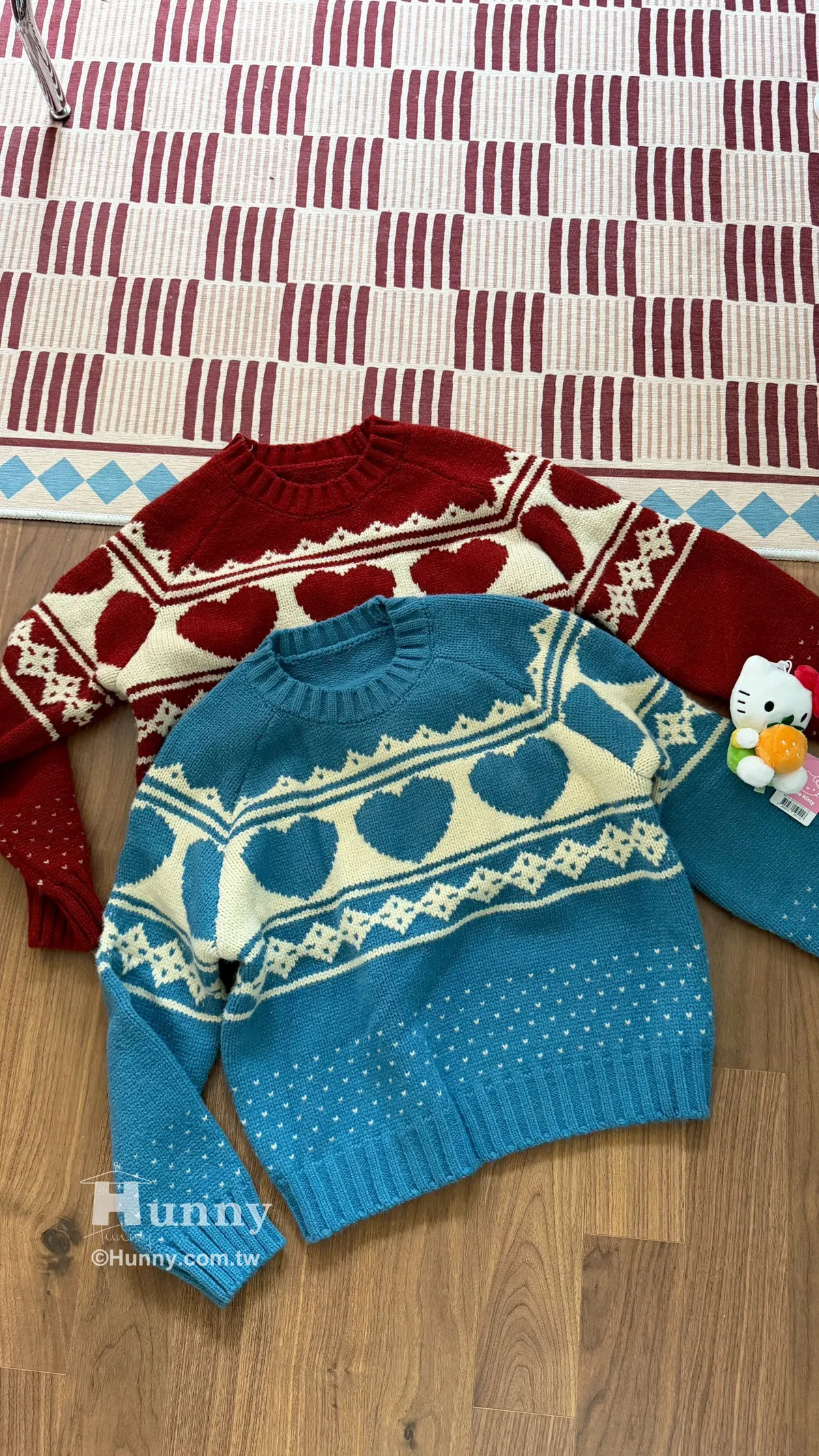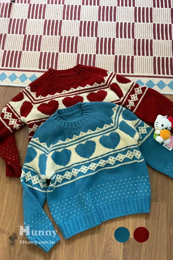B352025 今天要可愛的愛心圖騰毛衣 藍/紅