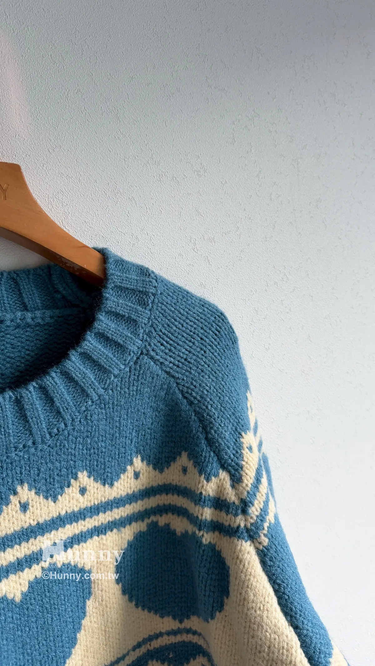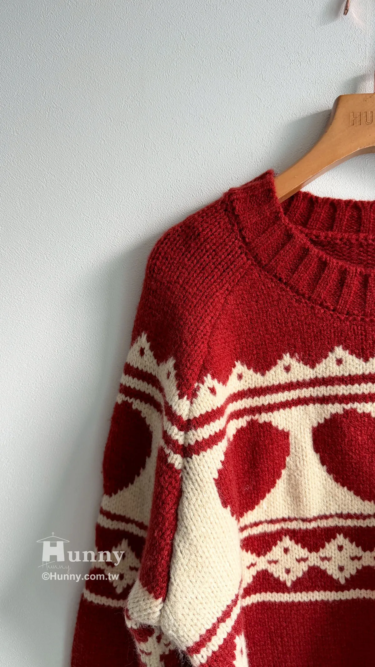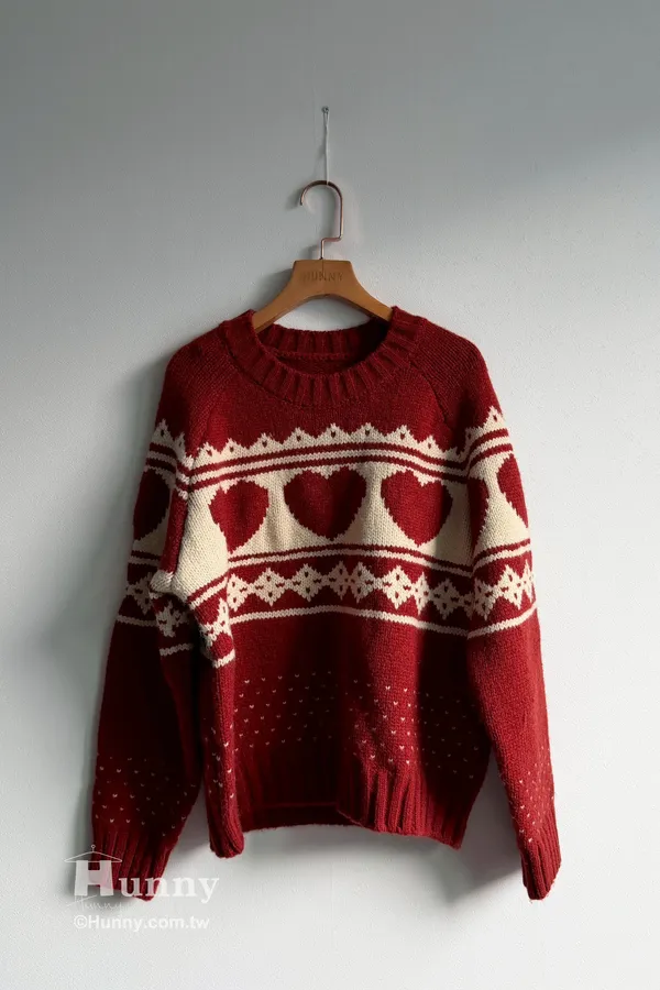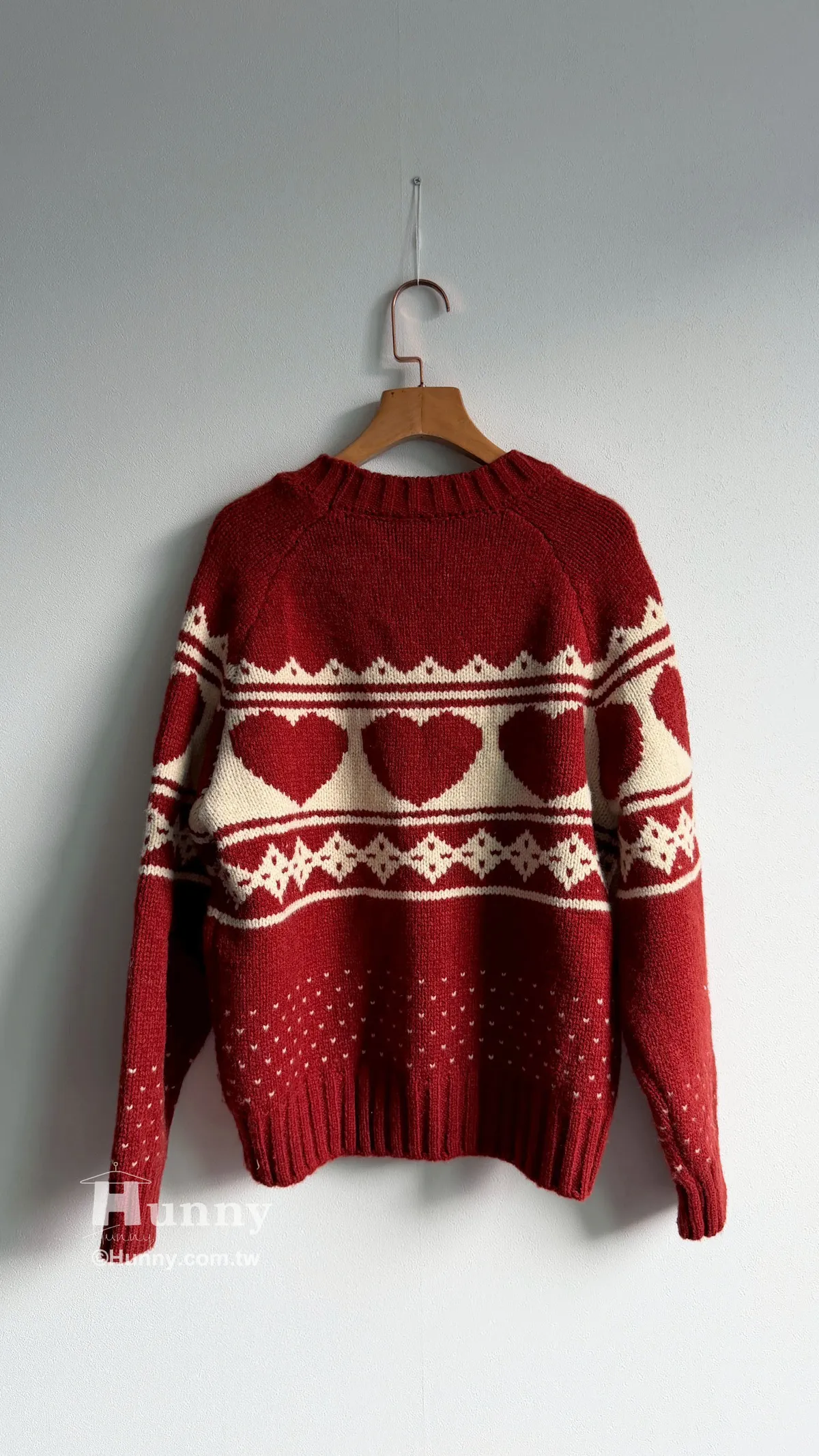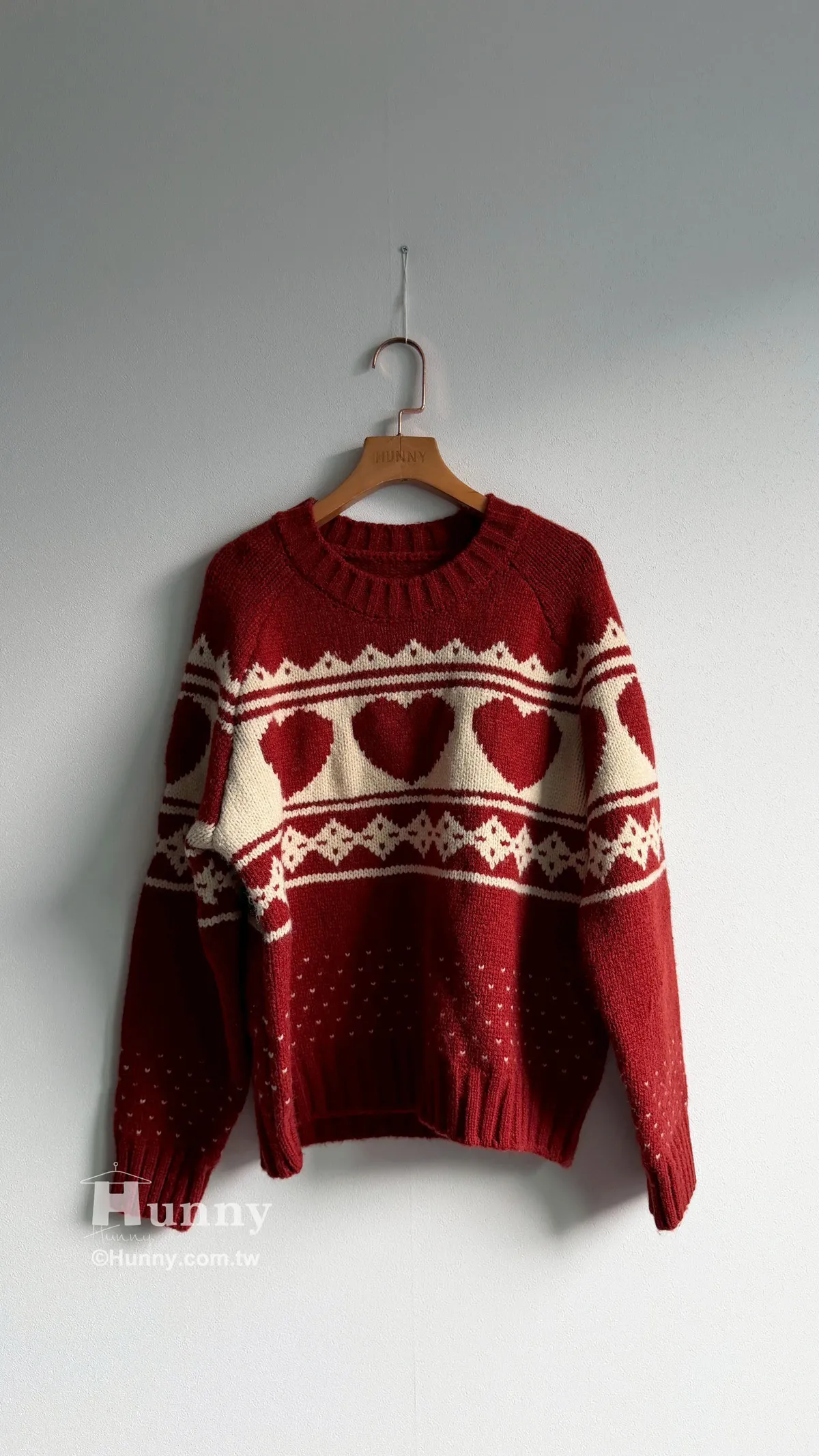 B352025 今天要可愛的愛心圖騰毛衣 藍/紅