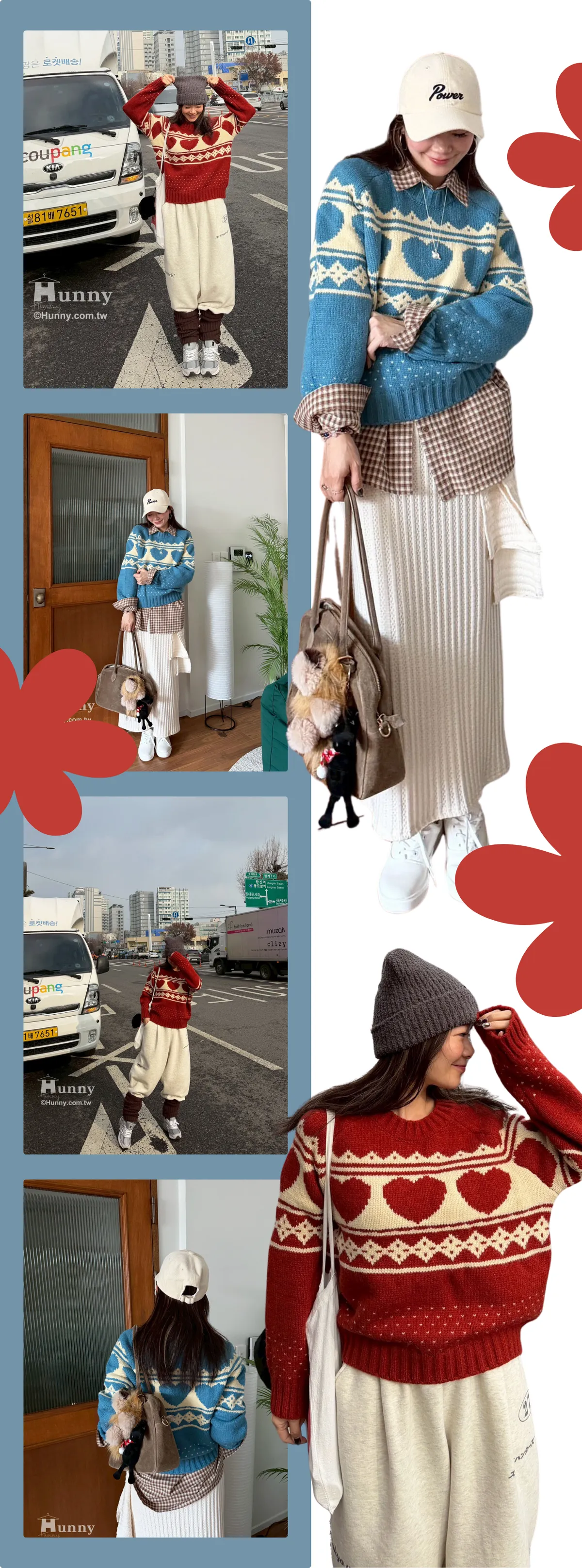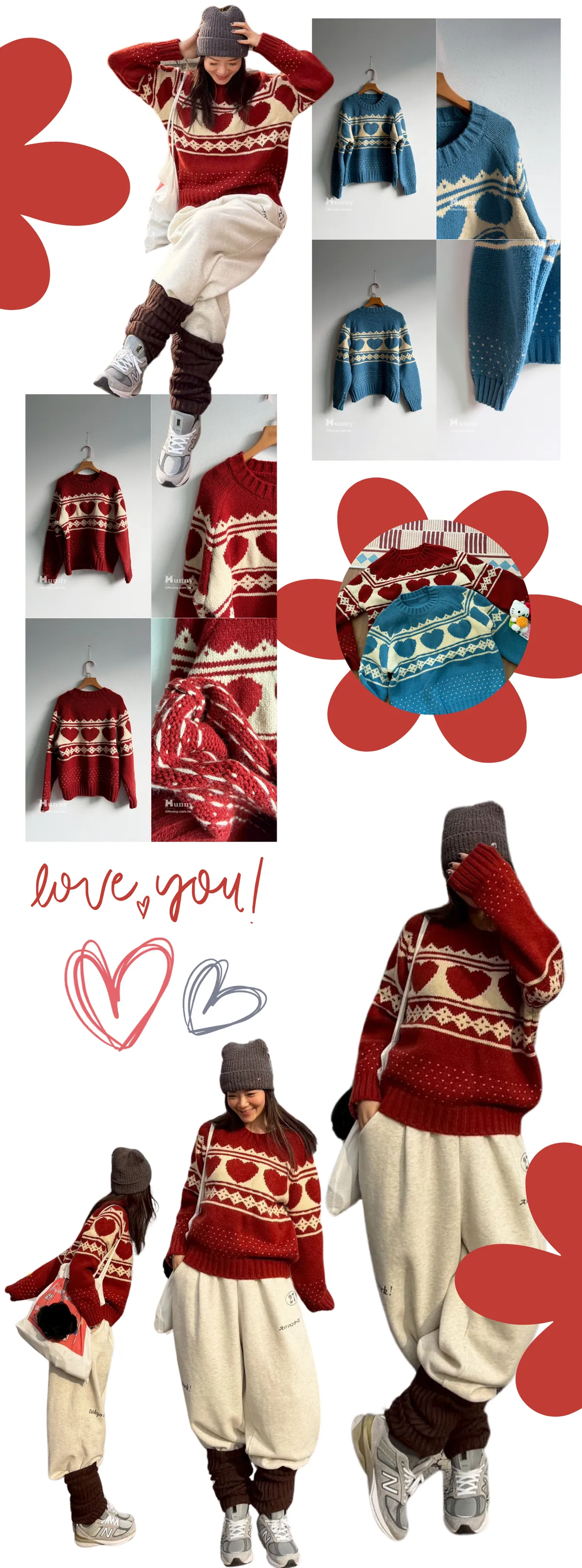 B352025 今天要可愛的愛心圖騰毛衣 藍/紅(T)