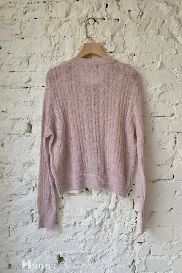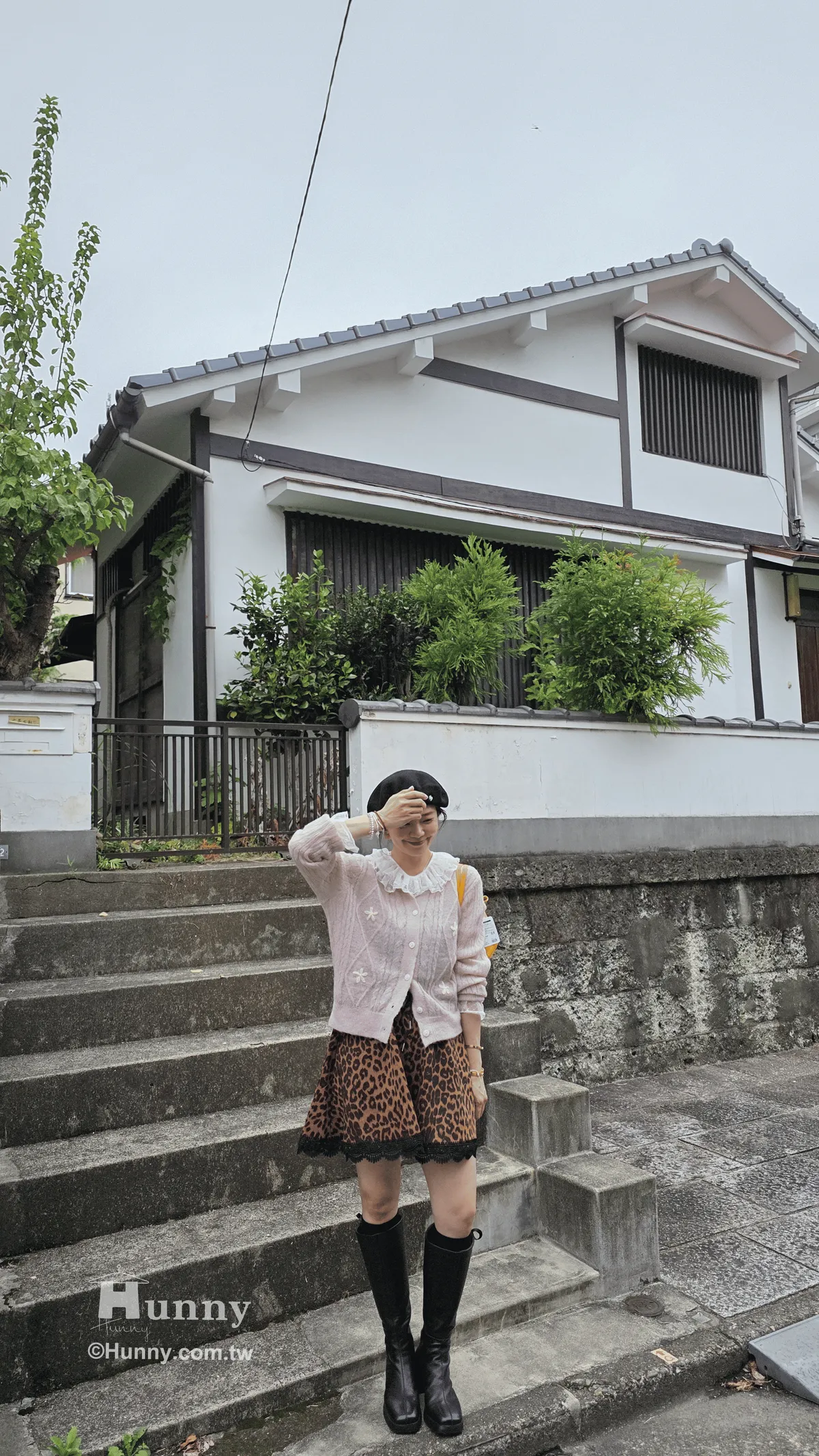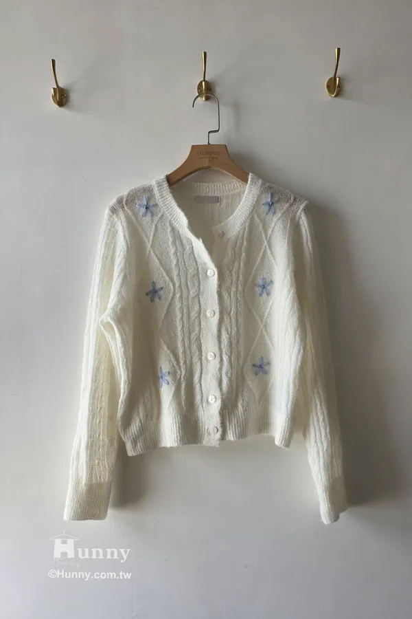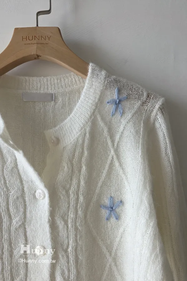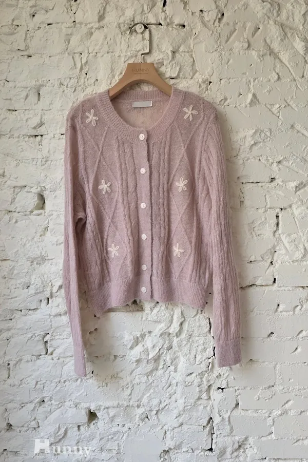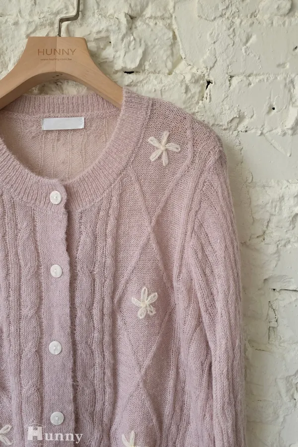 加上這件又是粉色的針織 上面還有幾朵白色小花 🌸