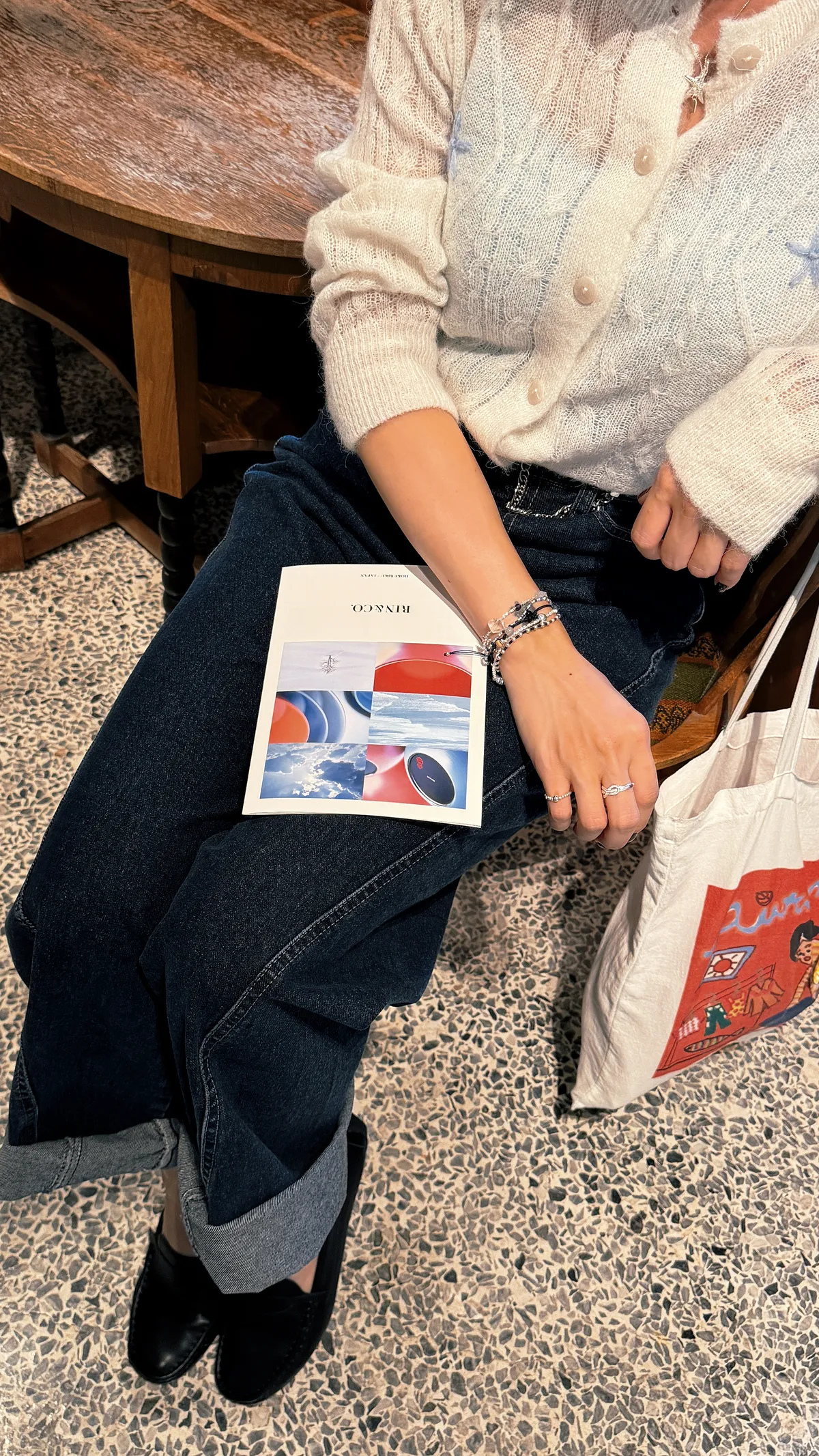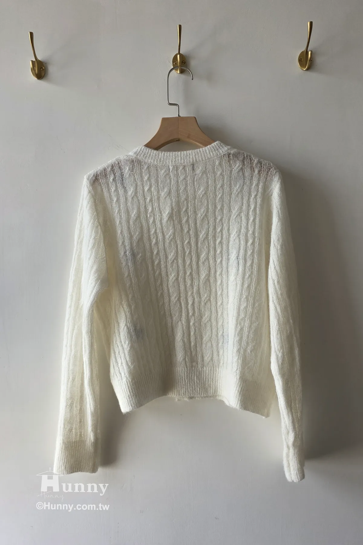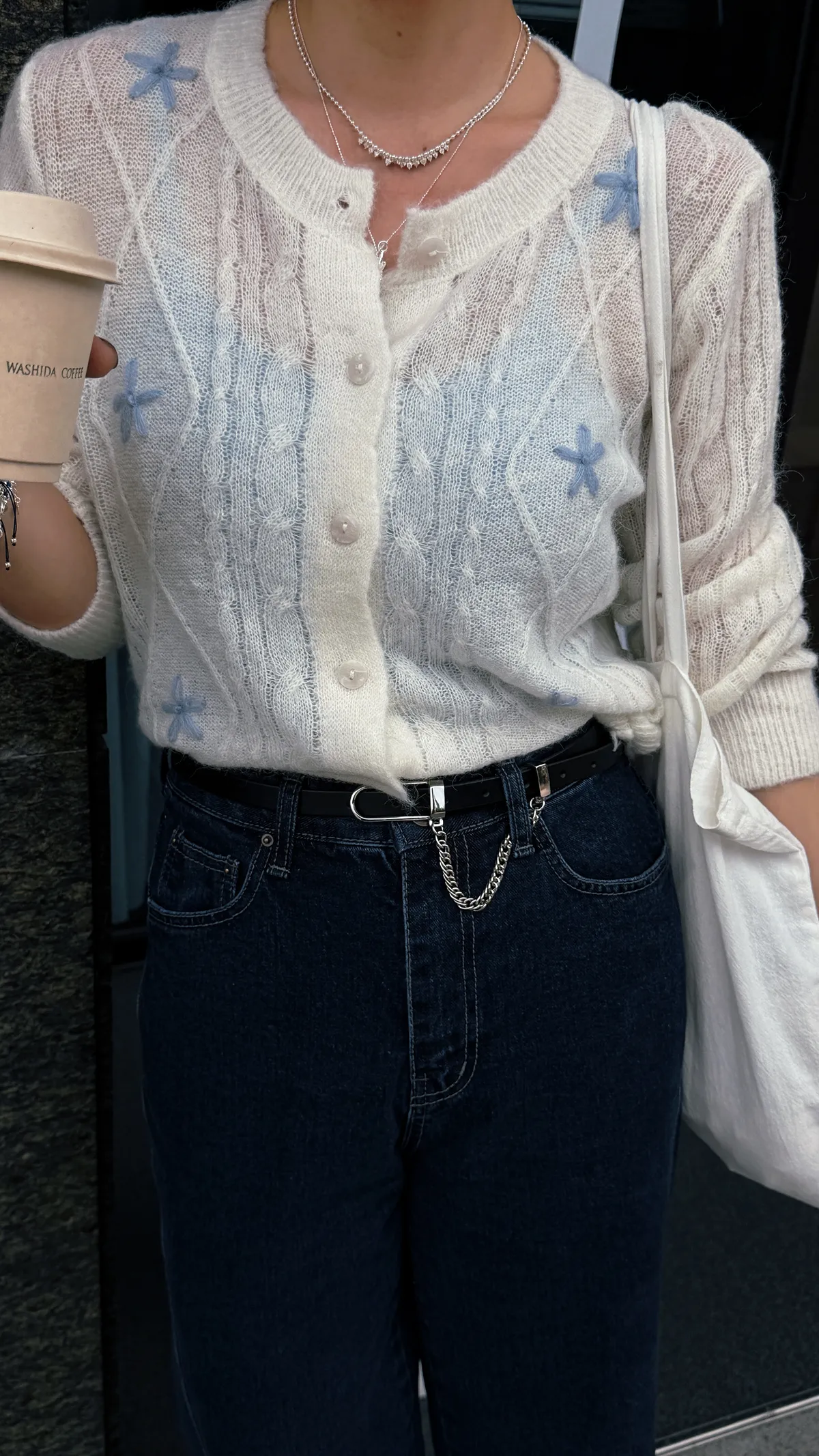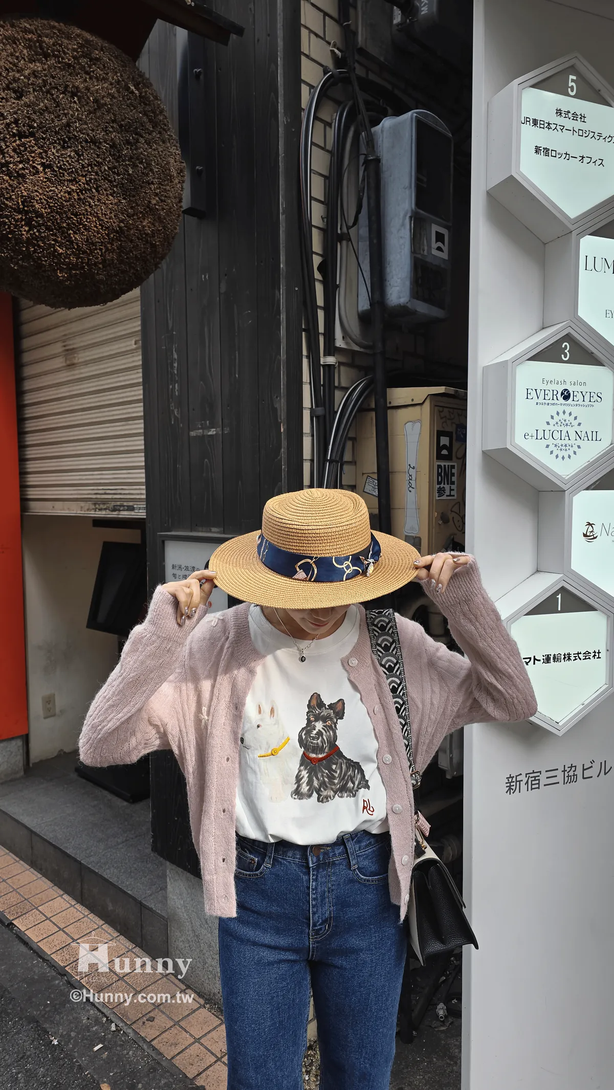 加上這件又是粉色的針織 上面還有幾朵白色小花 🌸