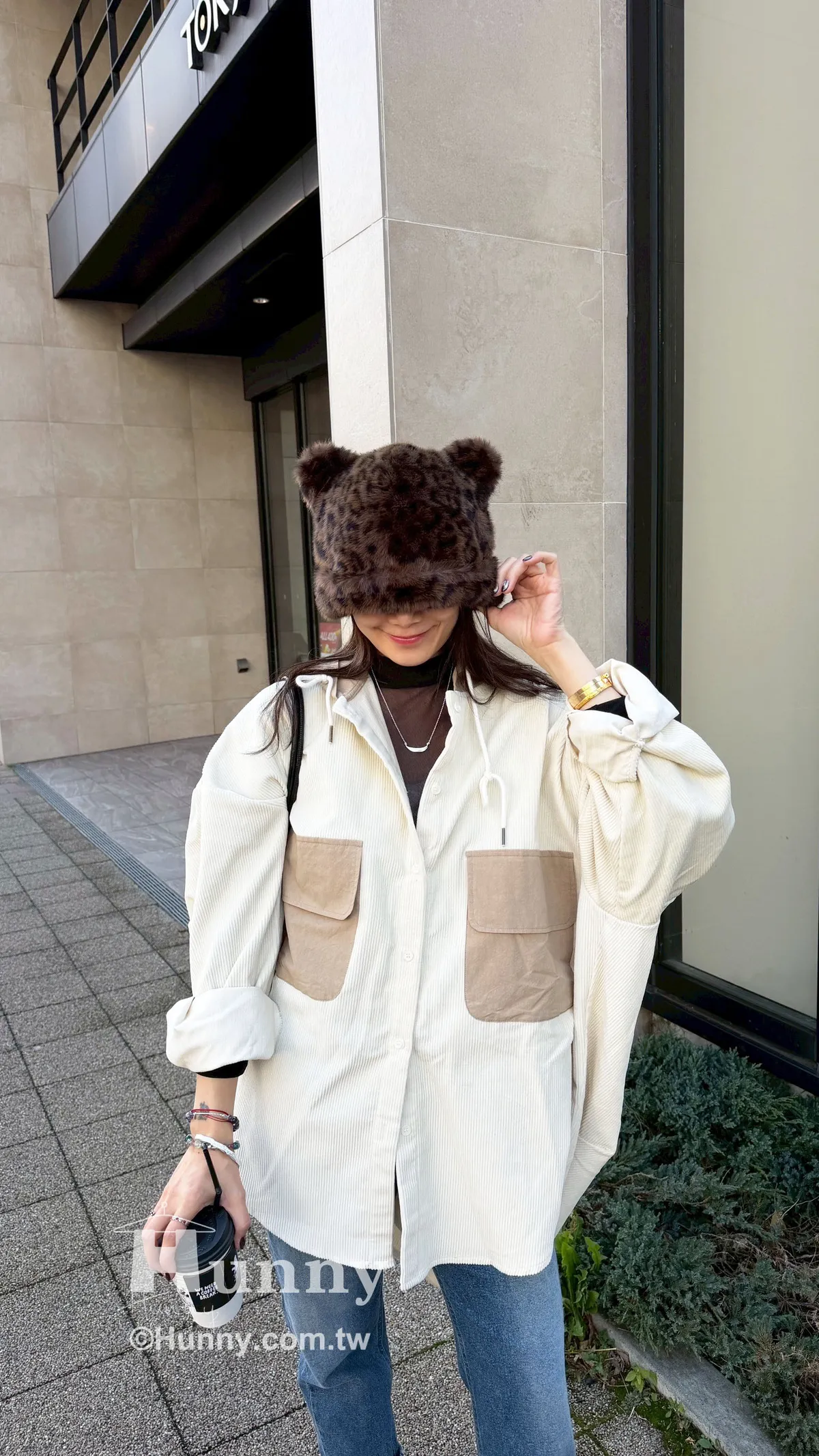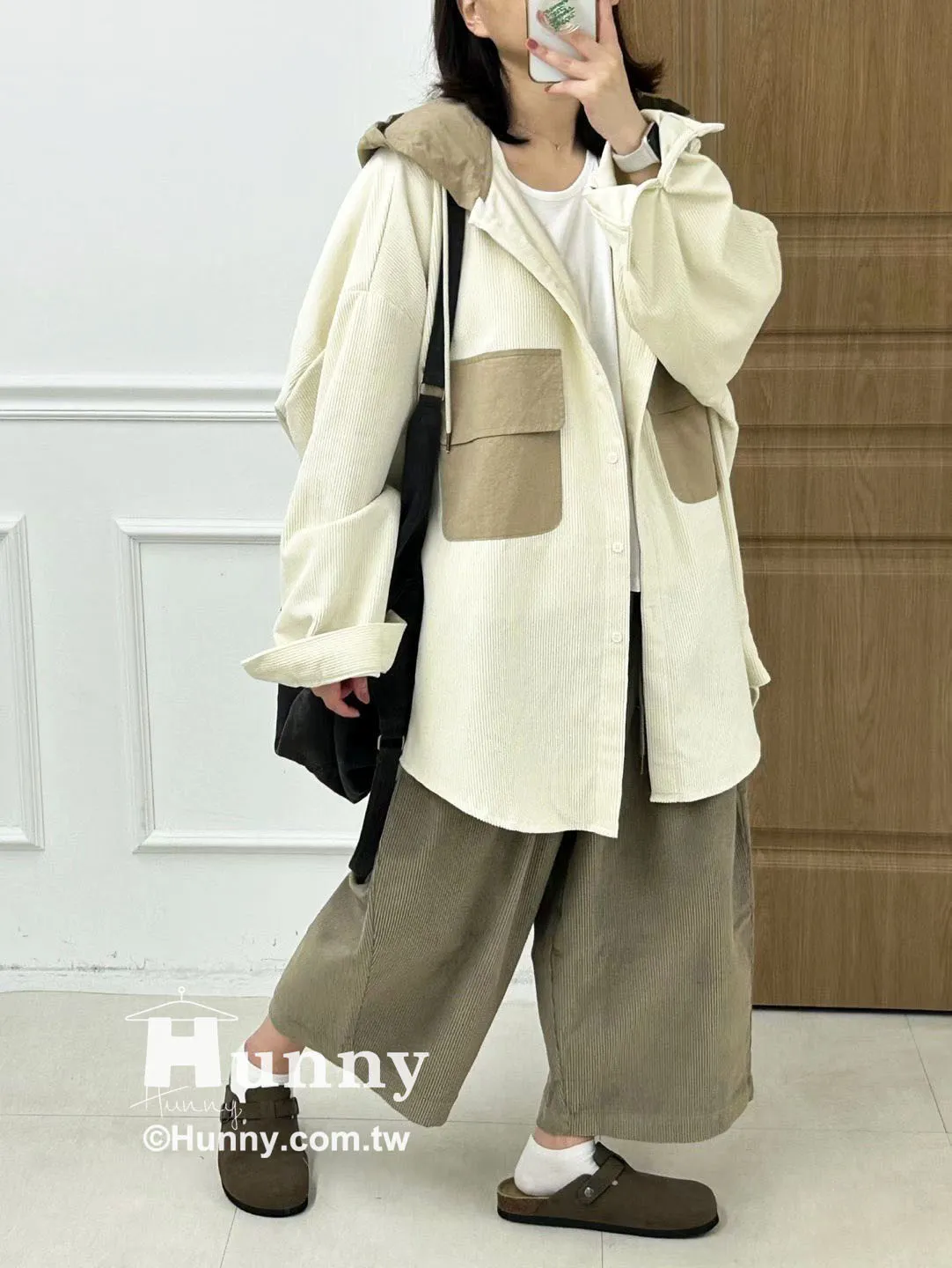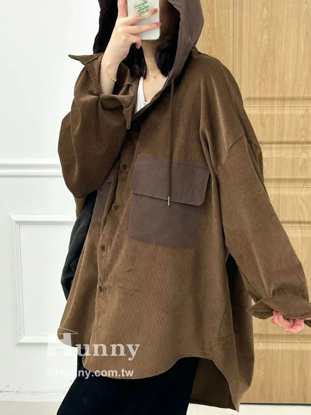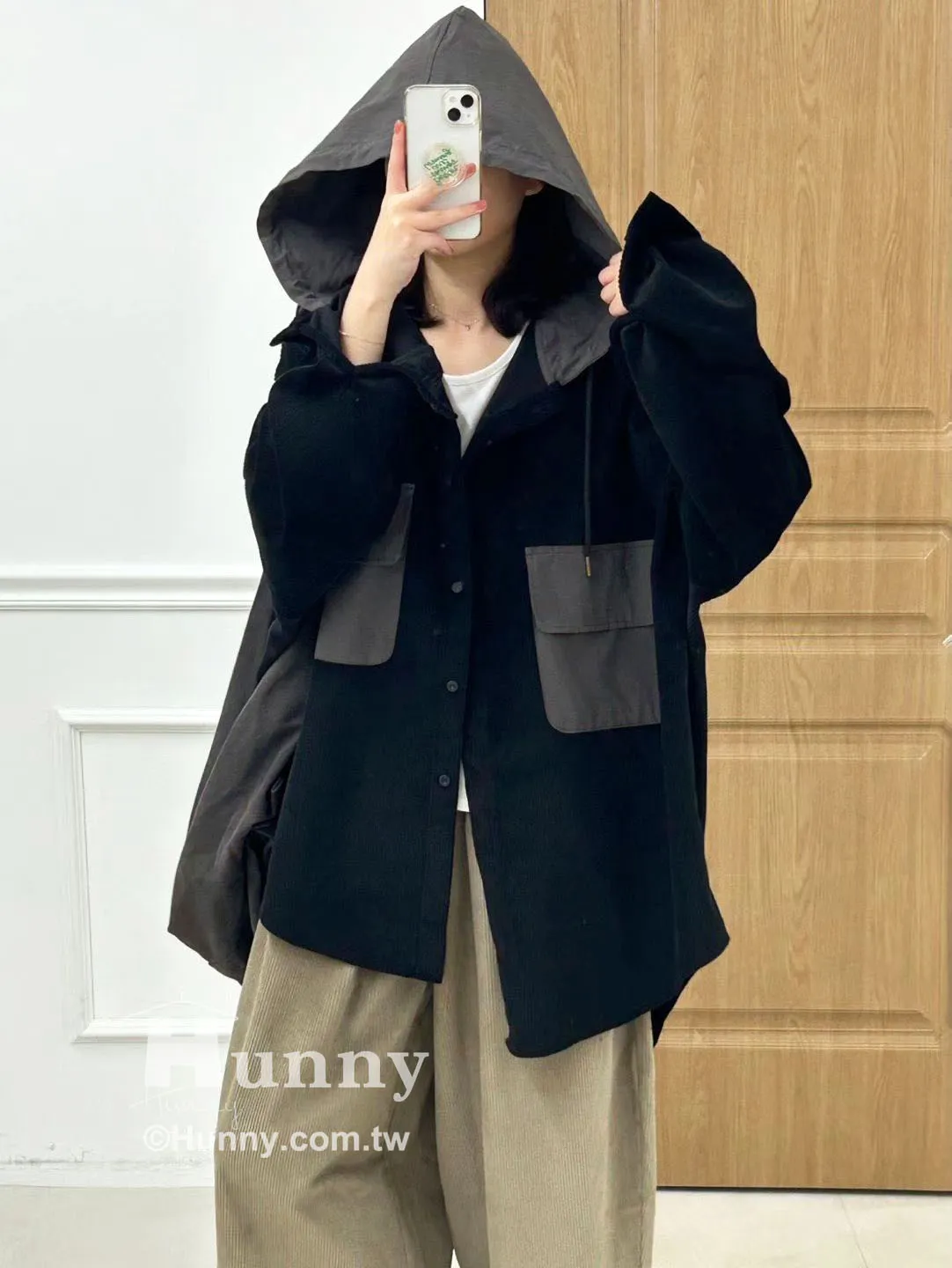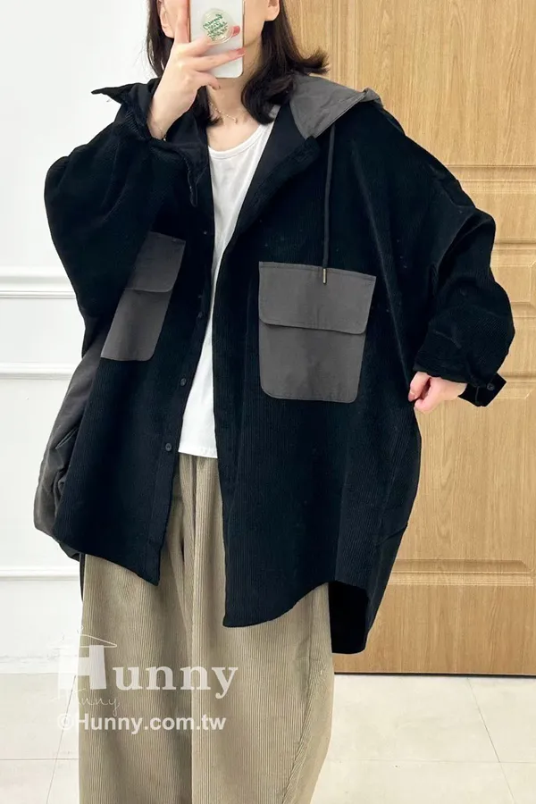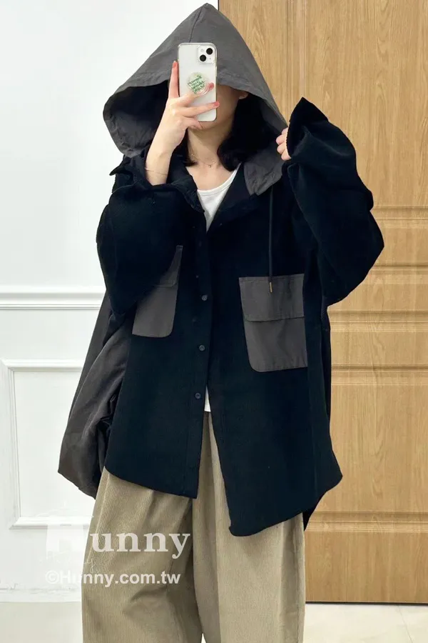 非常推薦這款精品感的異材質拼接絨布連帽襯外🤎