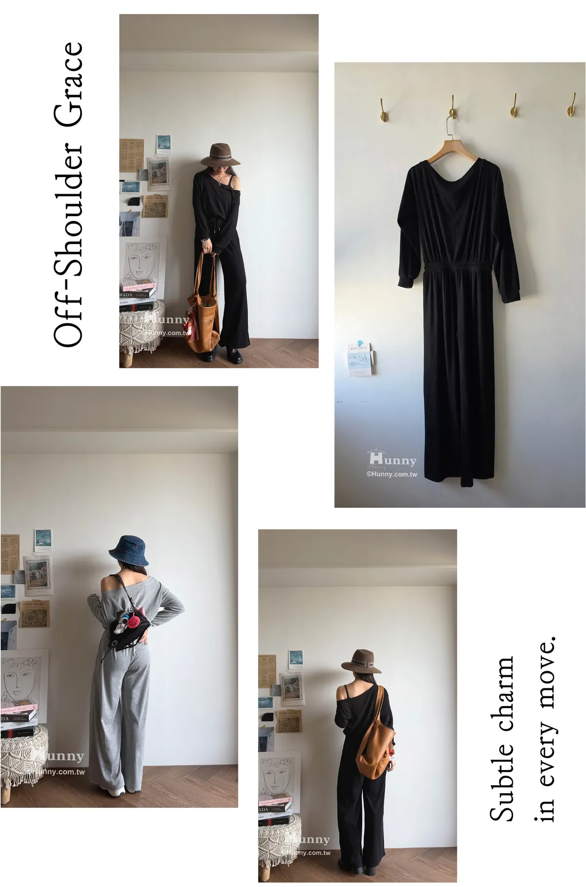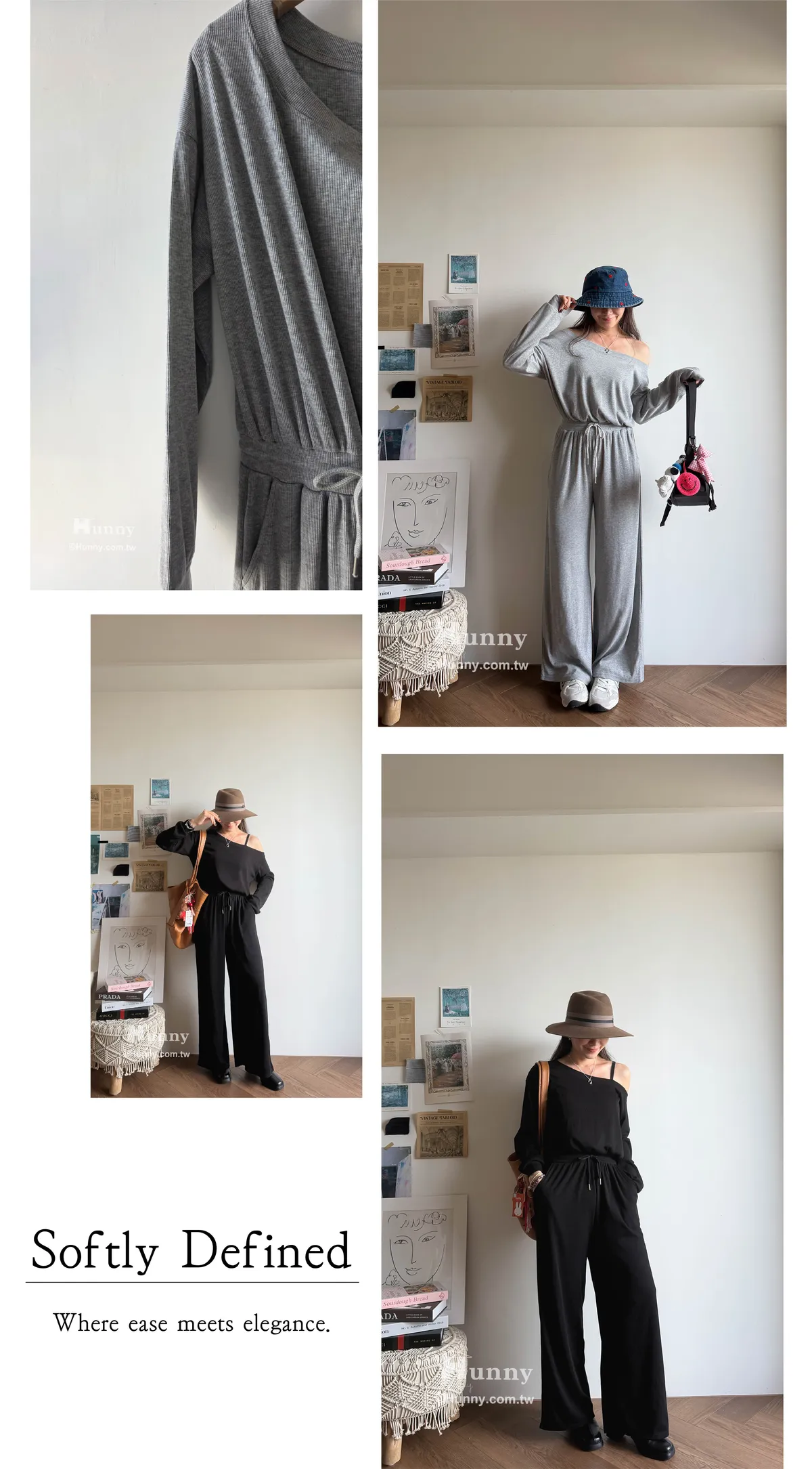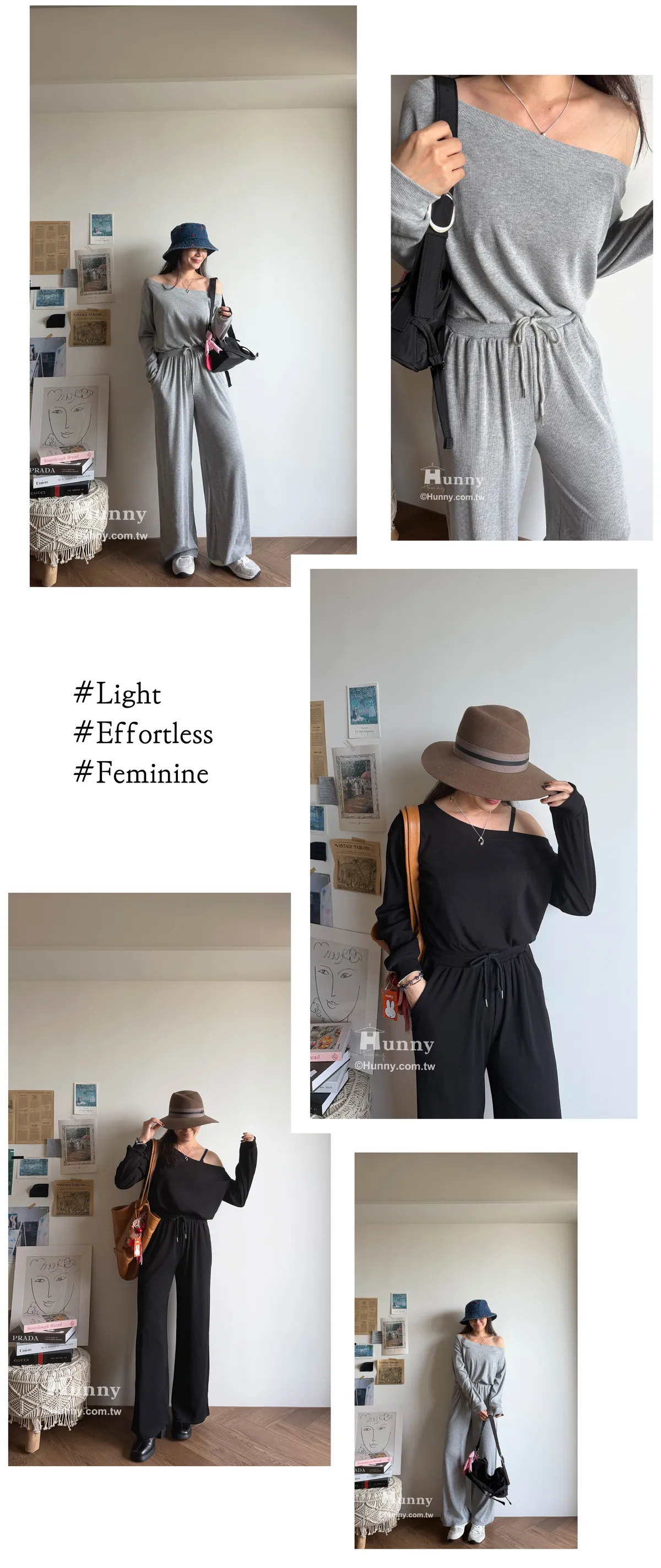 上身是可以兩穿的 看你想要拉成平肩或是斜肩都可以