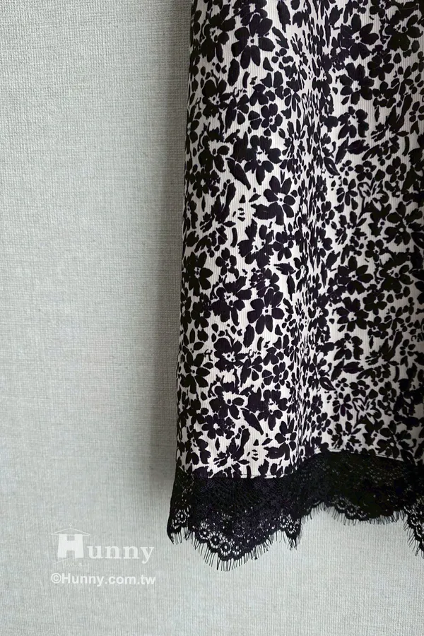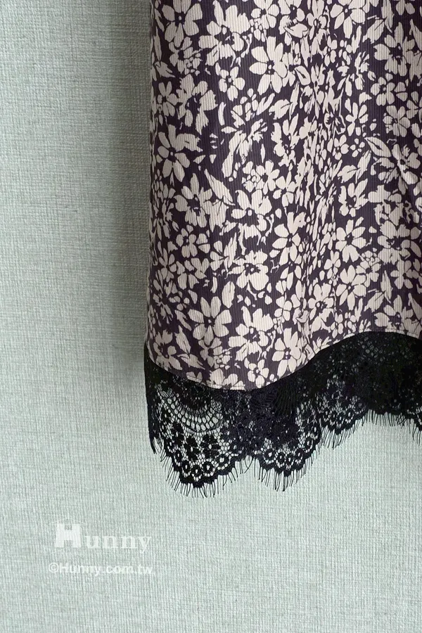 這款是絨布的材質 下擺還有黑色蕾絲的拼接