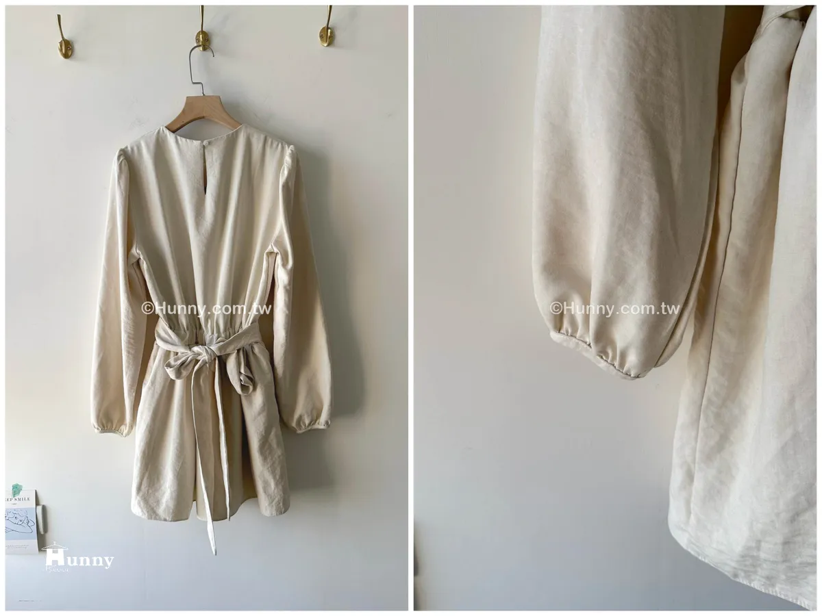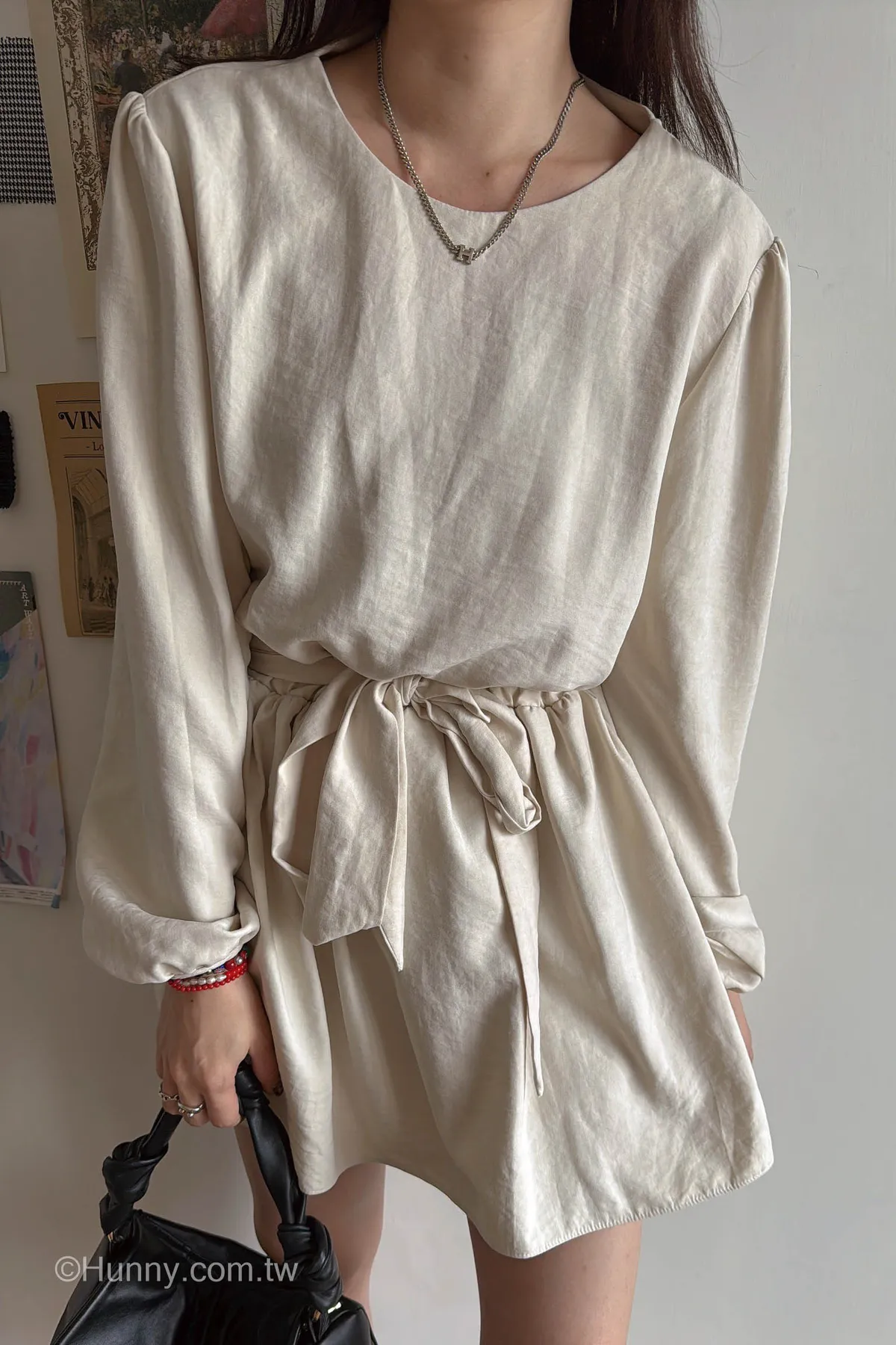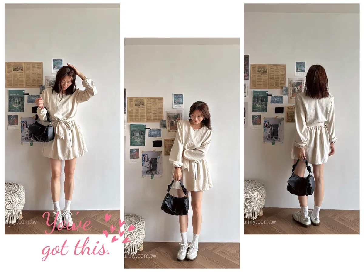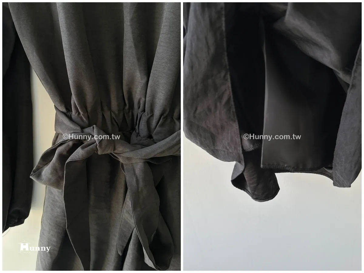 寬的綁帶加上小皺褶的設計會讓腰部看起來有縮腰的感覺