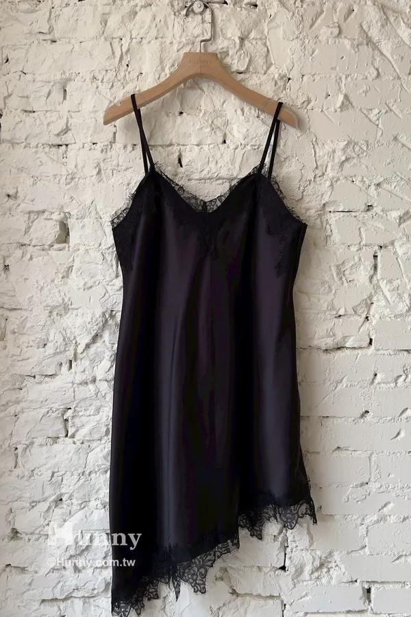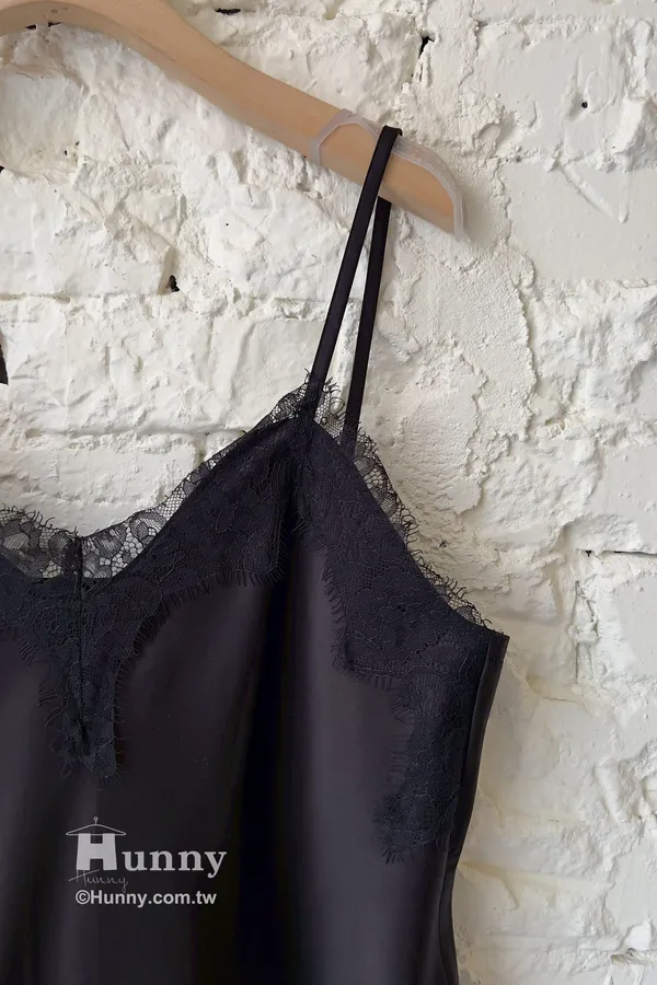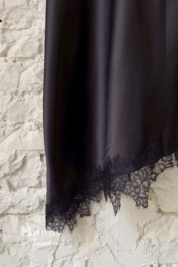 整件是超舒服的緞面材質 領口跟下擺拼接蕾絲