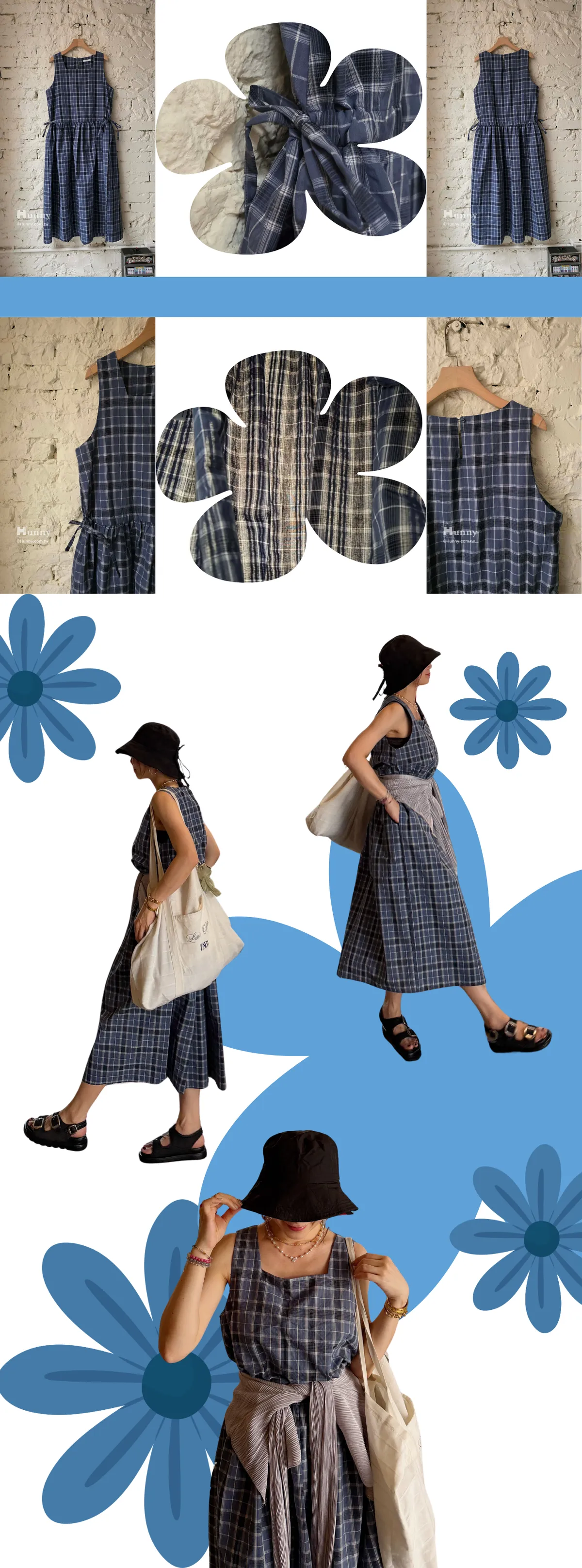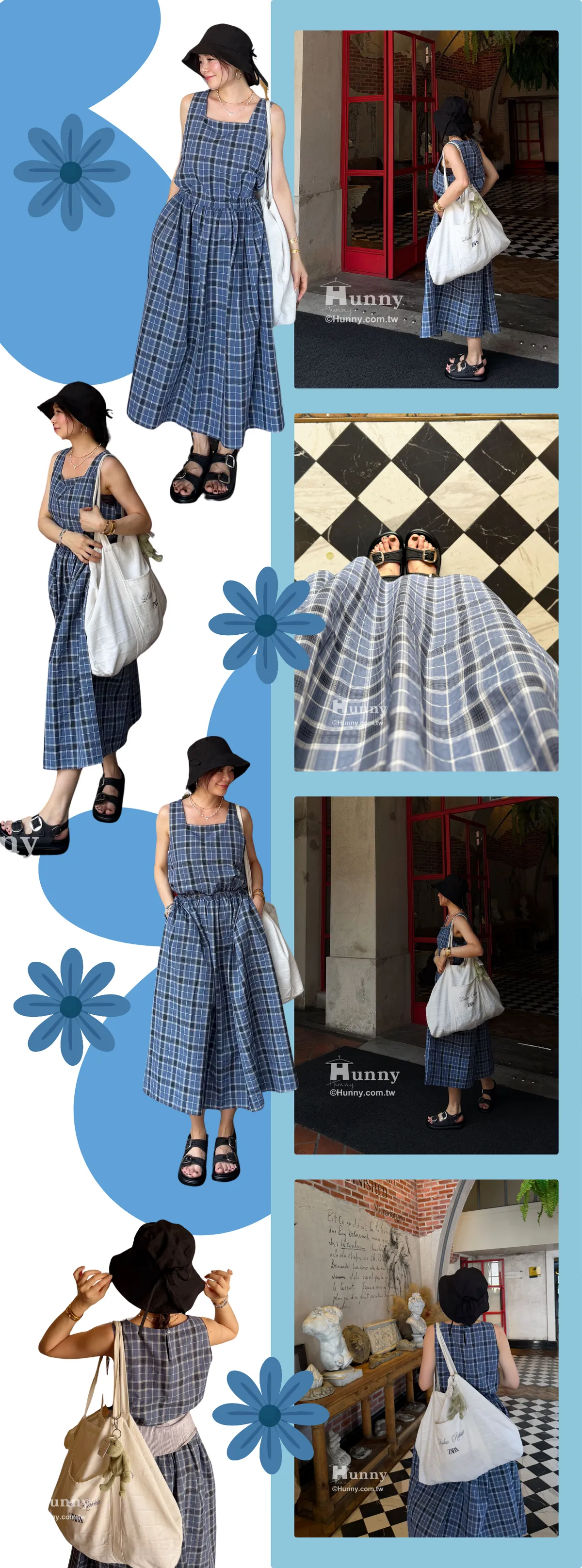 整件的藍色格紋也超好看 很有鄰家女孩感!