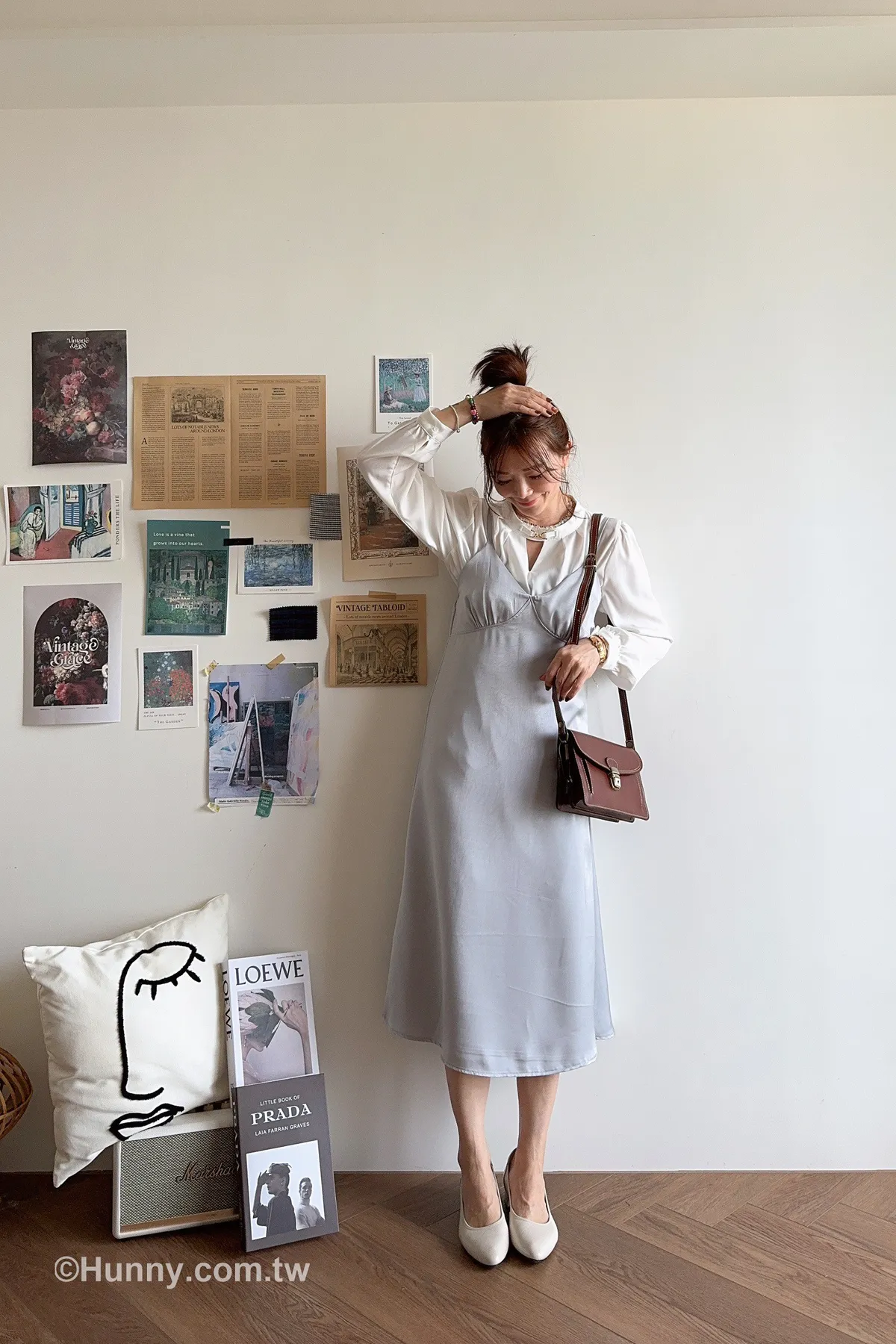 它的下襬是做魚尾波浪感 很喜歡這種下擺飄逸的感覺