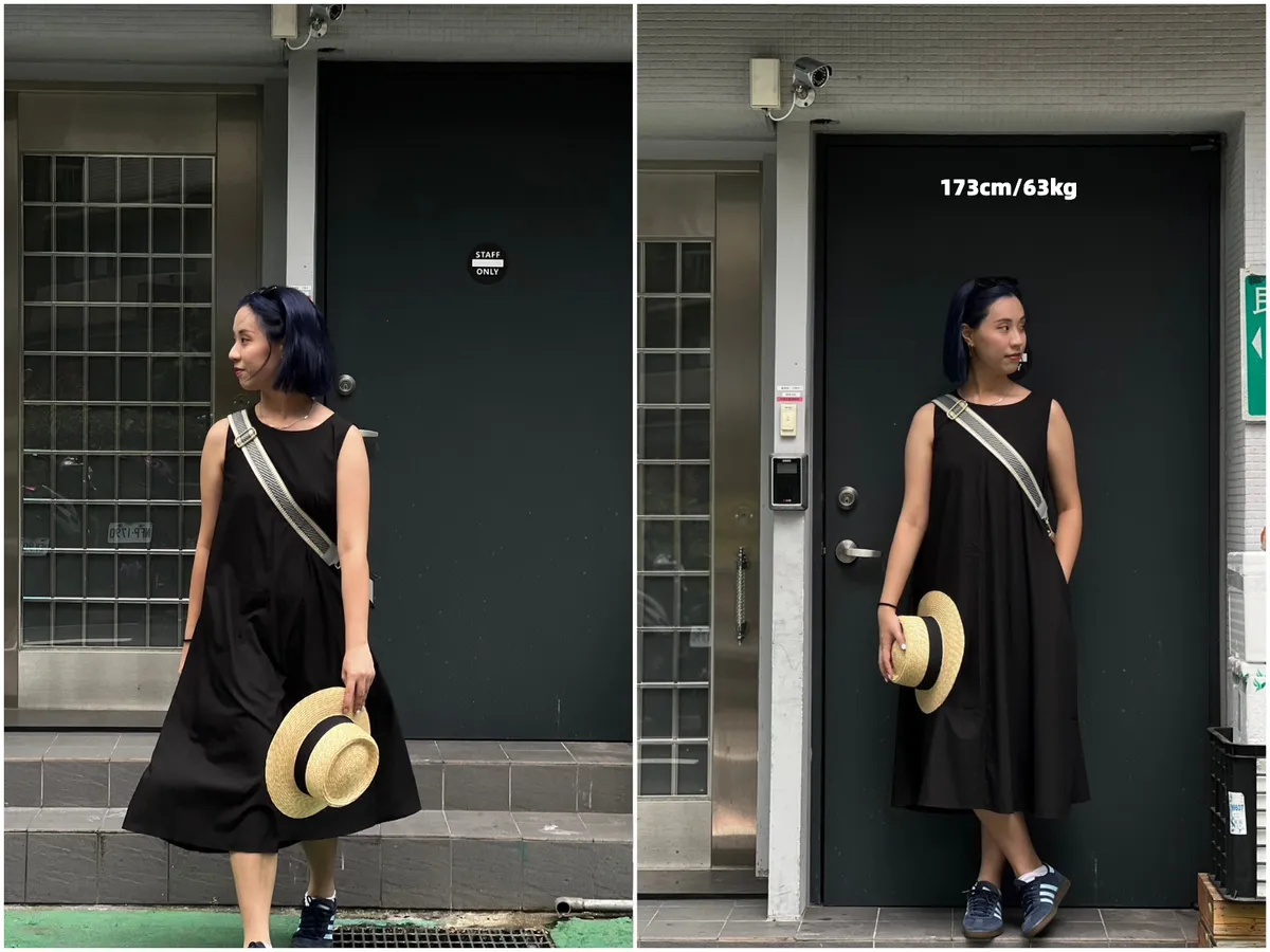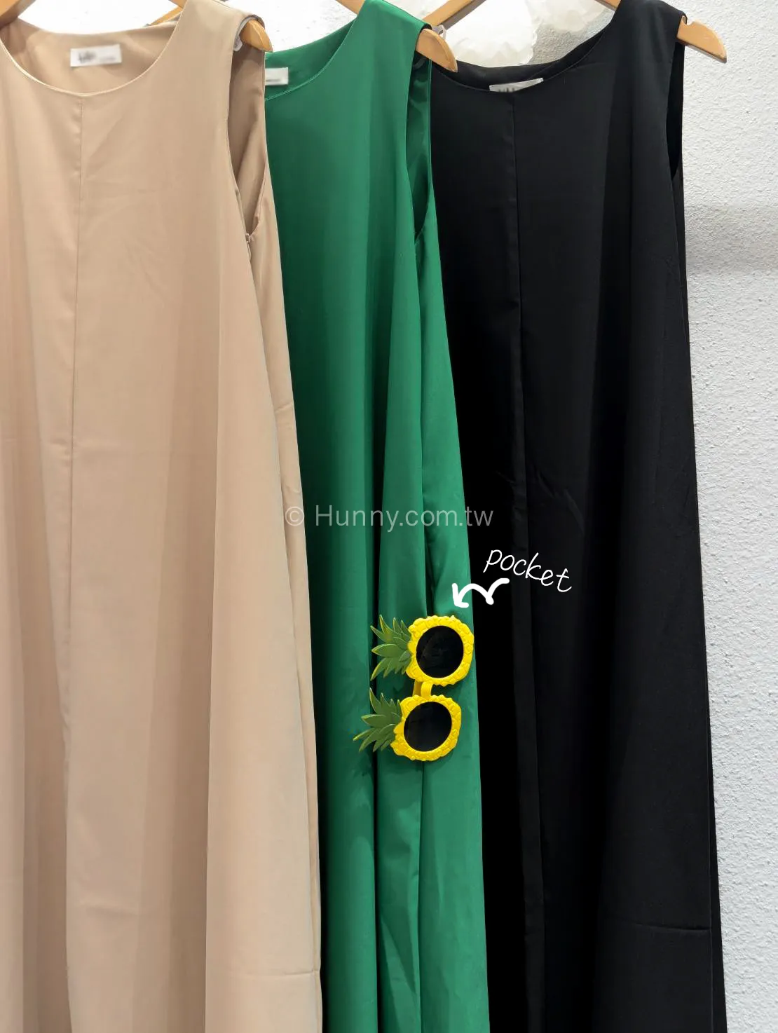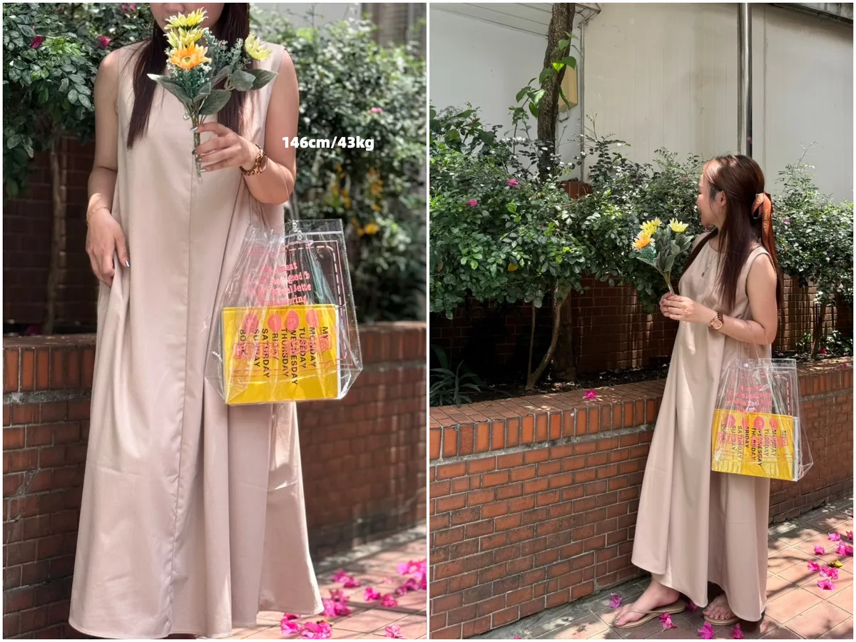 D62102 份量感口袋涼感緞光背心傘洋 黑/杏D 現貨