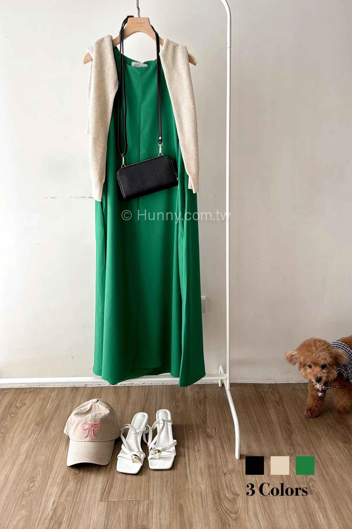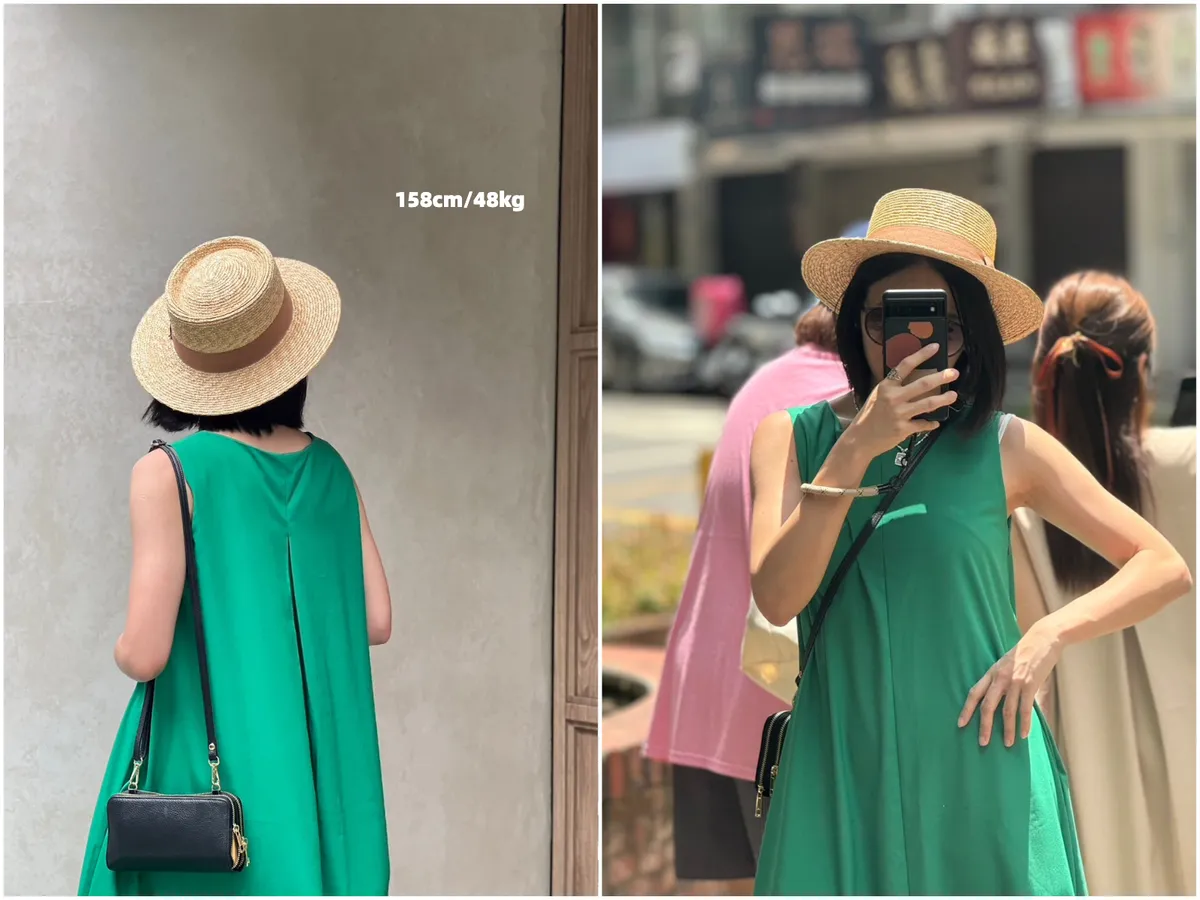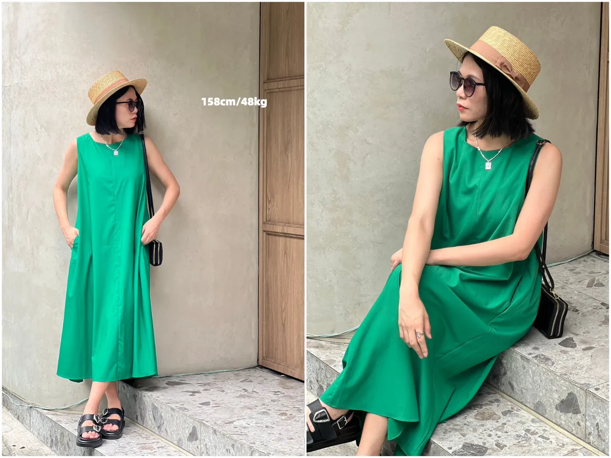 D62102 份量感口袋涼感緞光背心傘洋 黑/杏D 現貨