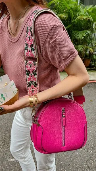 F14-Italy義大利 一見鍾情牛皮拱門雙層包 小桃紅最後現貨(B)