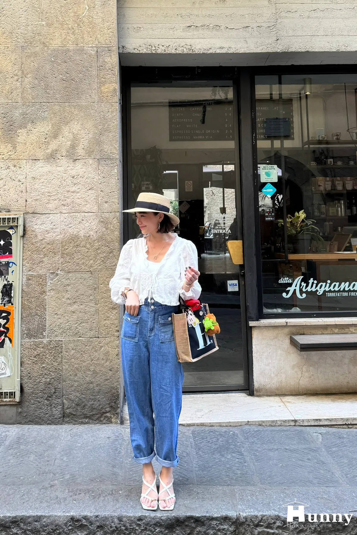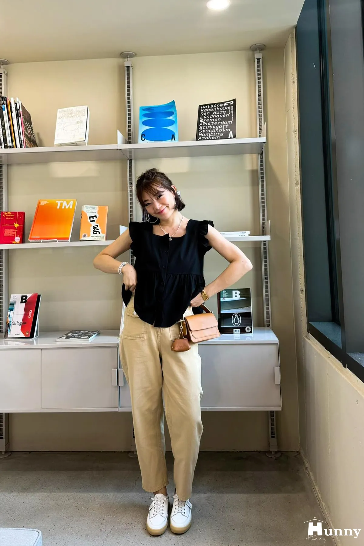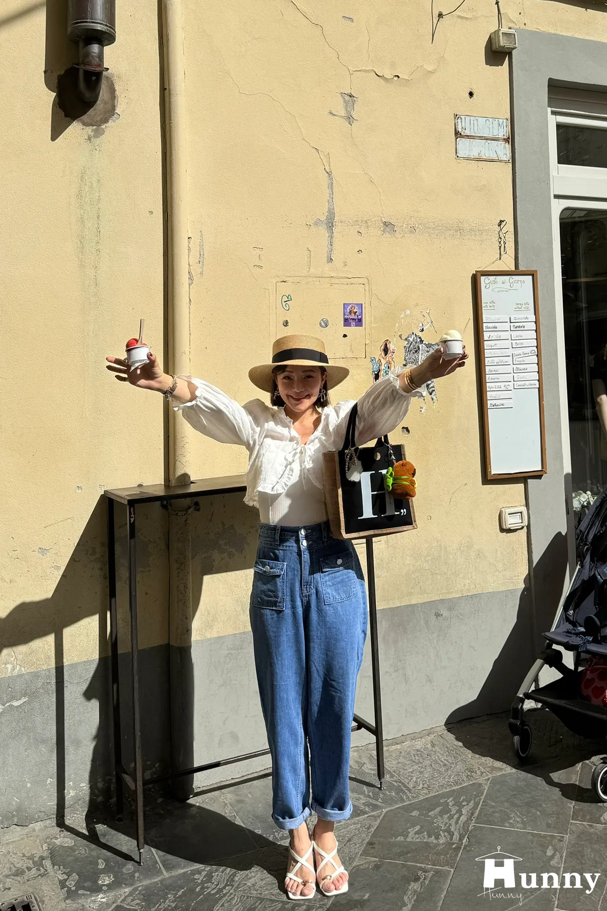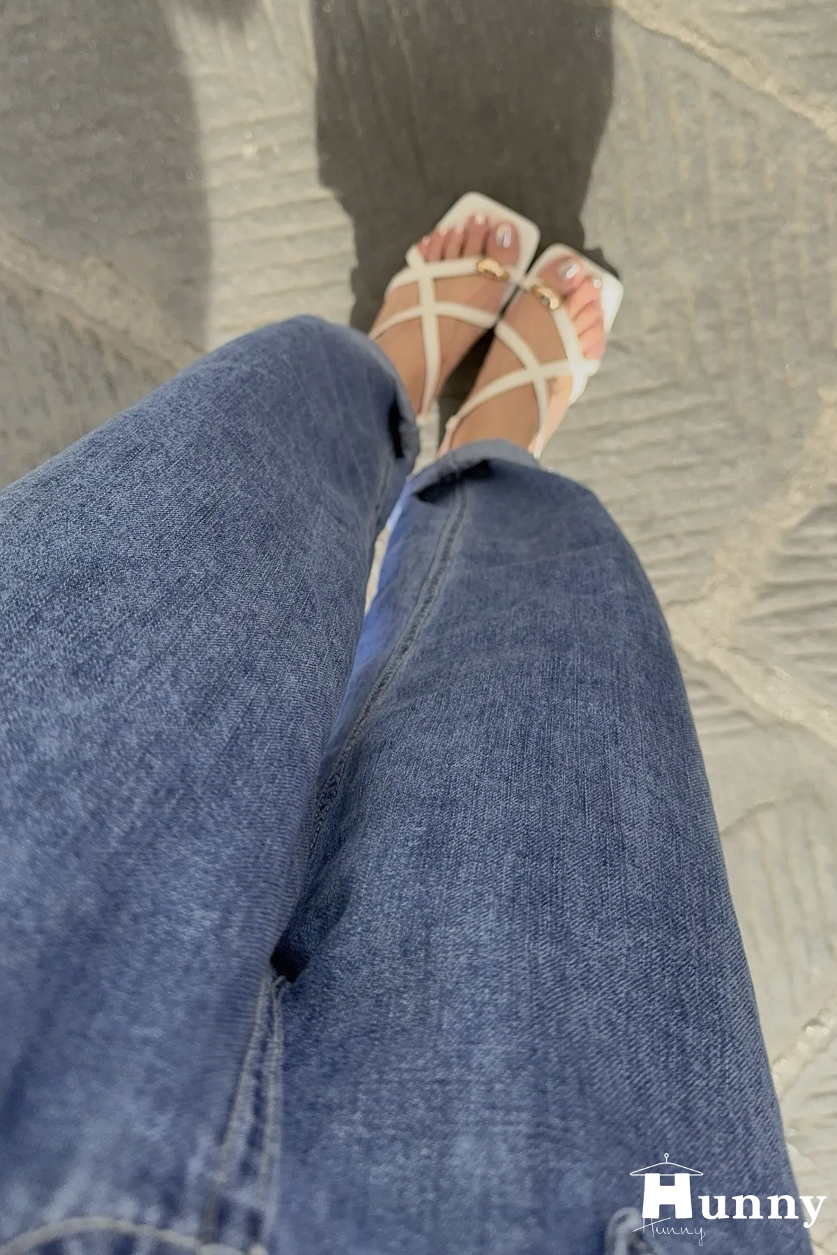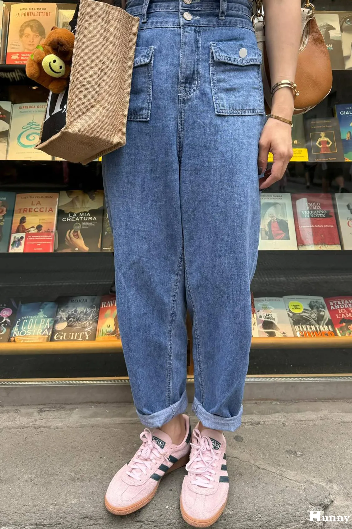 HUNNY359 獨家設計小貴婦雙扣老爺牛仔褲 藍/卡其 現貨(D)