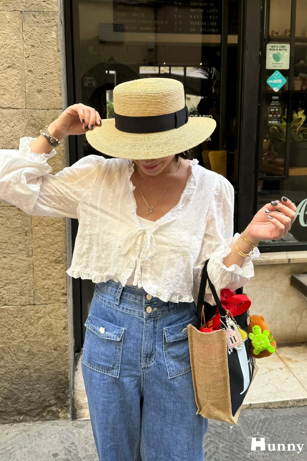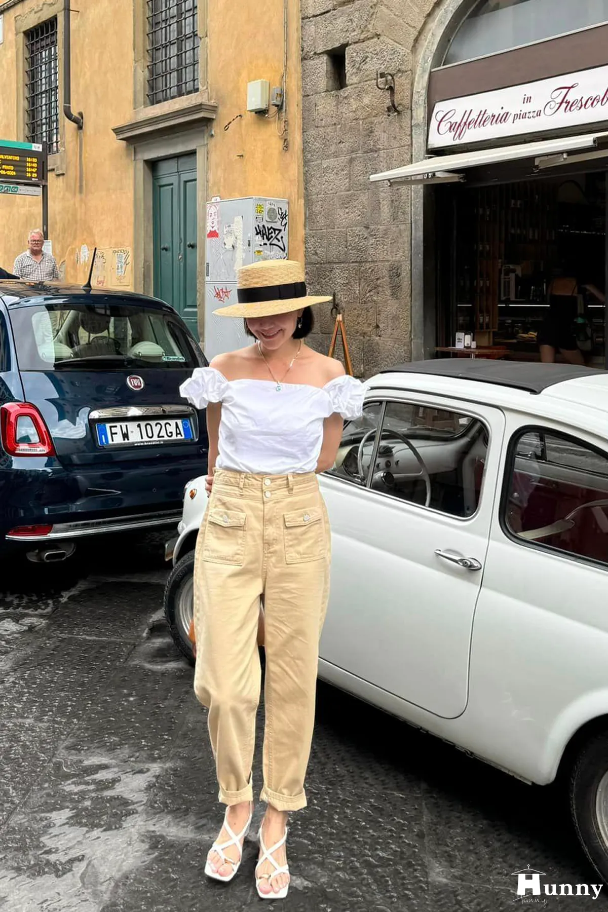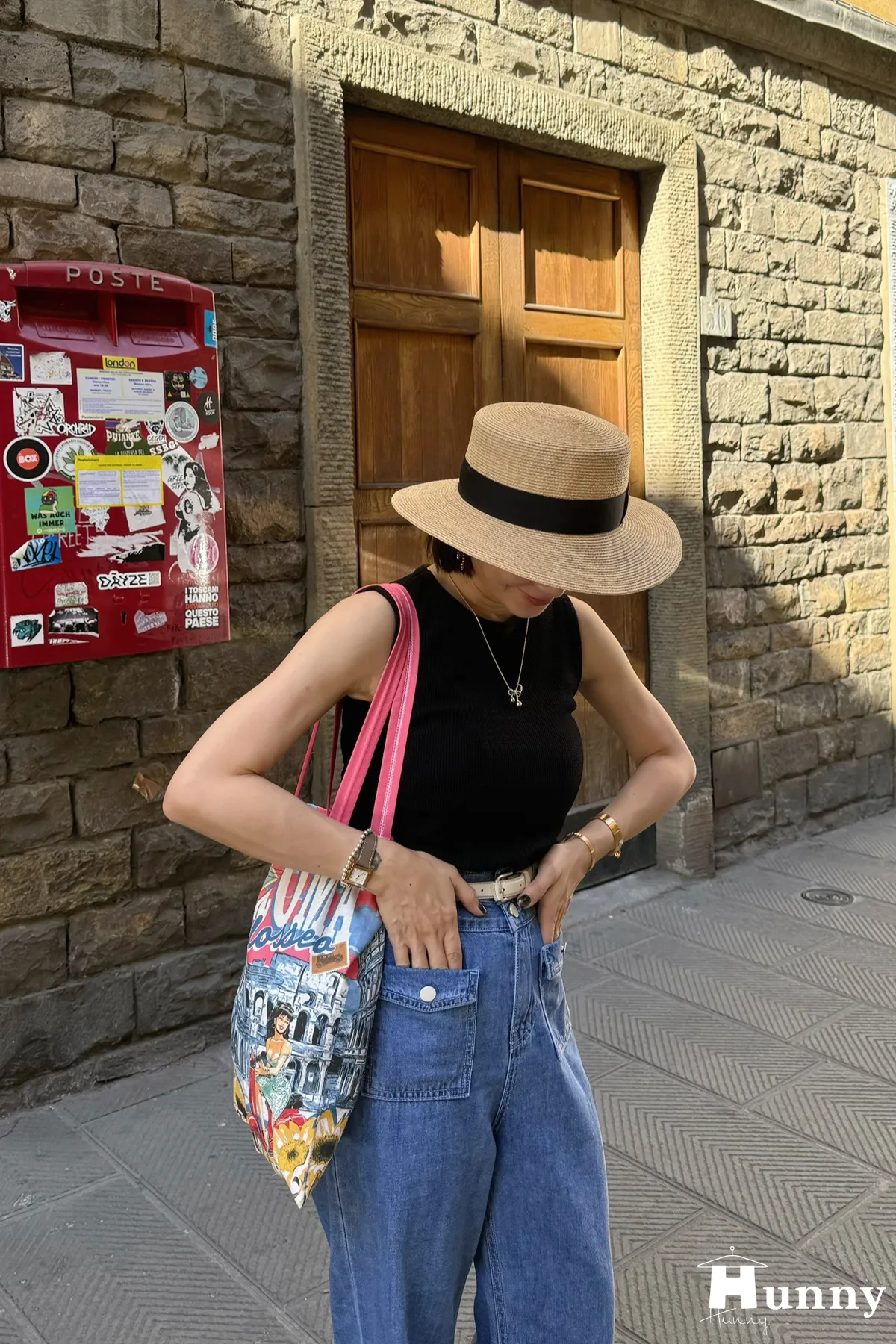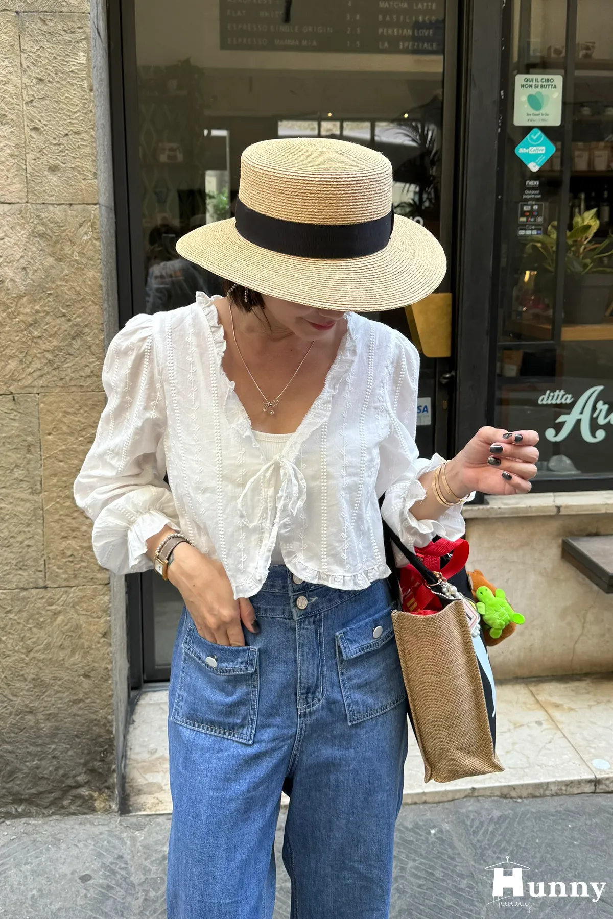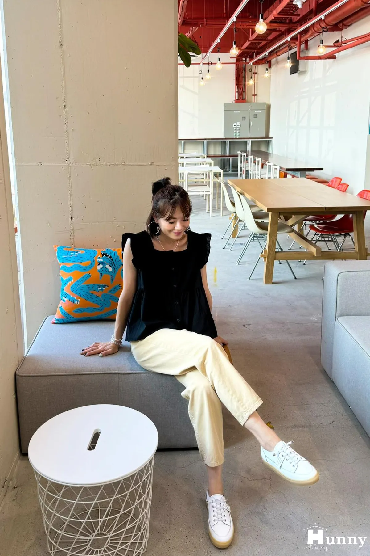HUNNY359 獨家設計小貴婦雙扣老爺牛仔褲 藍/卡其 現貨(D)