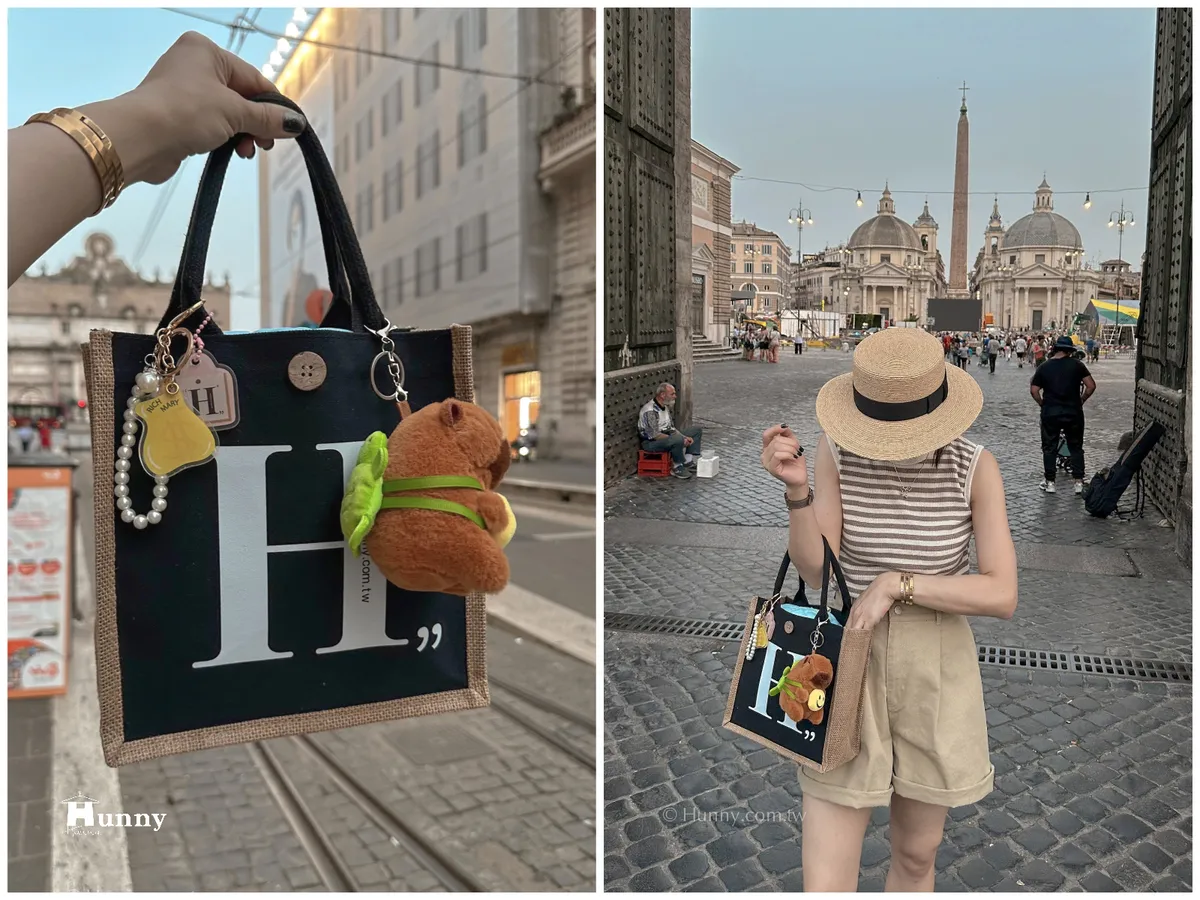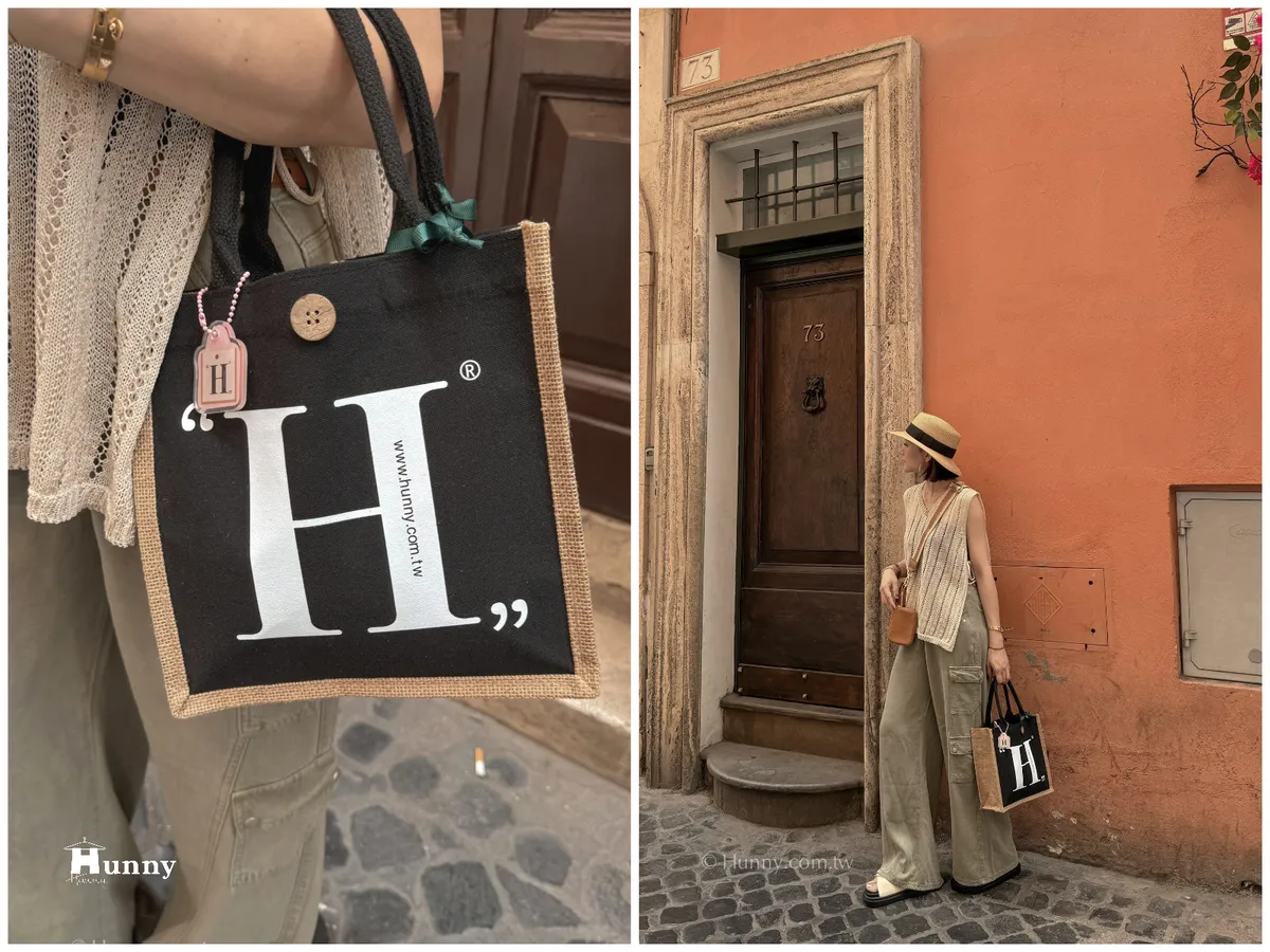 HUNNY372 董事長也愛藤編紐扣防水方包 黑色/吊飾 現貨